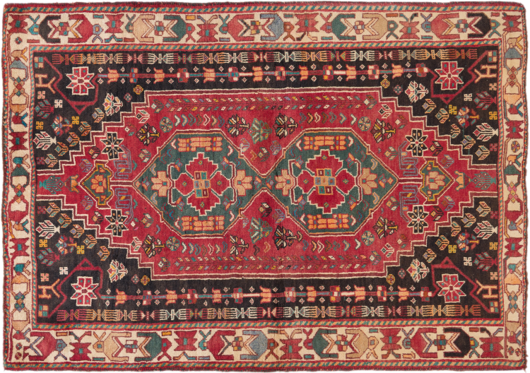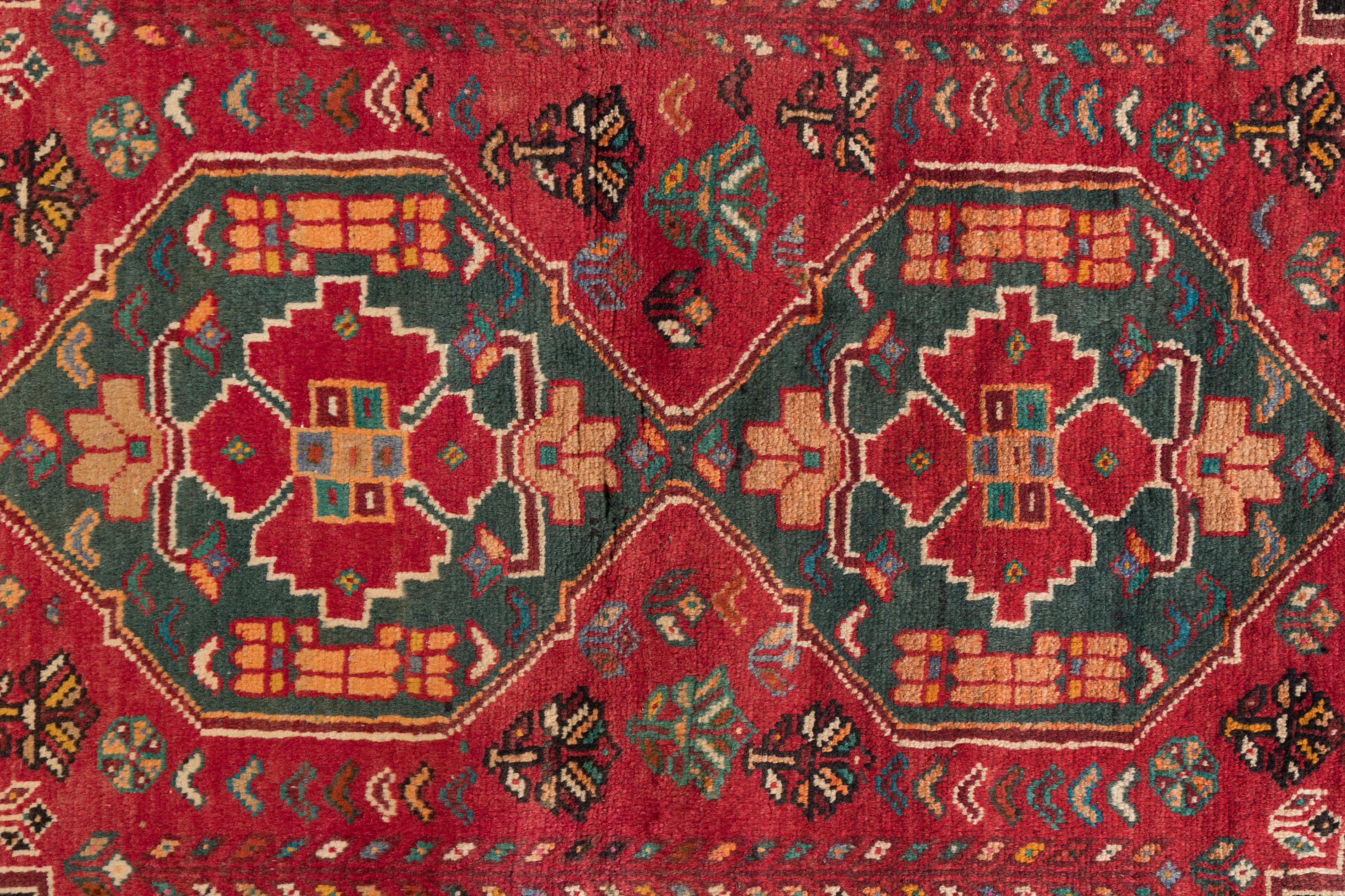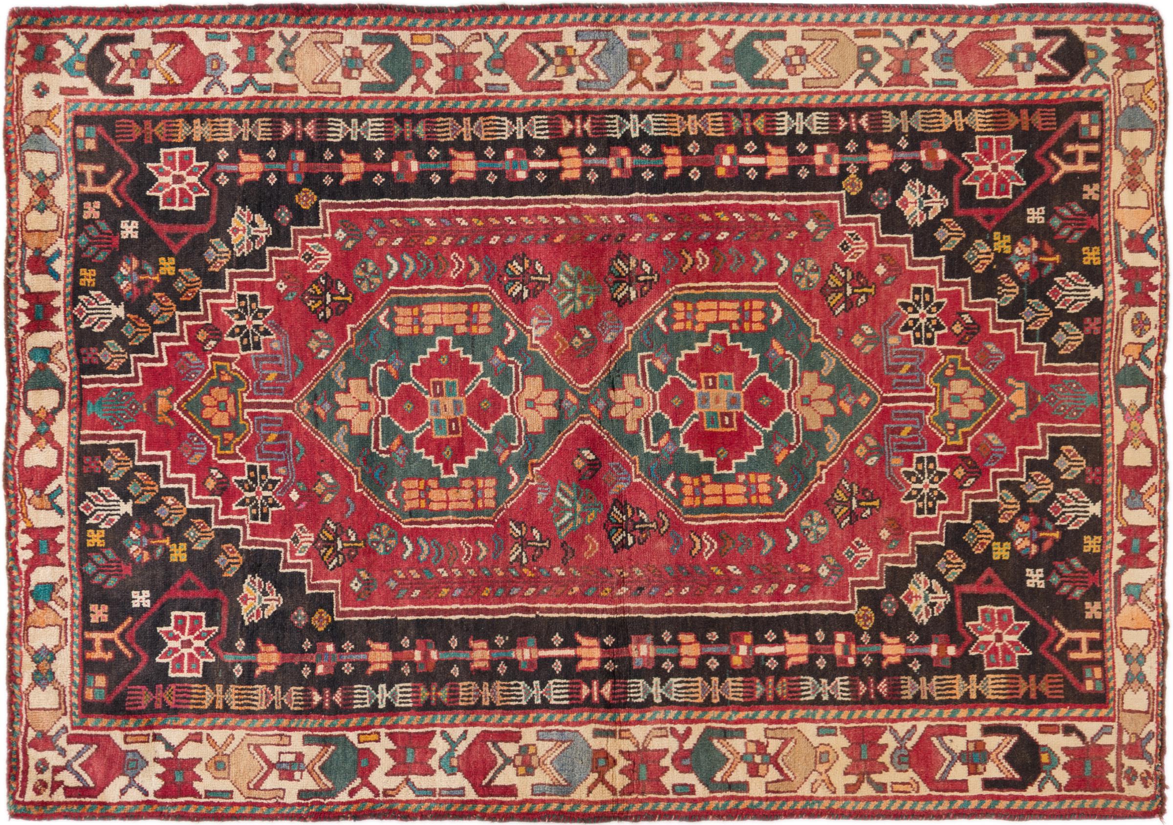 Réf. Article: 298354003071 Taille: 178x113 cm Épaisseur: ap. 15 mm Densité de nouage: 72 000 - 90 000 / m² Fabrication: Noué à la main Velours: Laine filée à la main Chaîne: Laine de mouton Origine: Persie / Iran Âge: Vieux/Semi antique, over 50 ans Poids: ap. 8 kg Également connu sous Gabbe, Ghabbeh Nombre en stock: Unique - Seulement 1 en stock