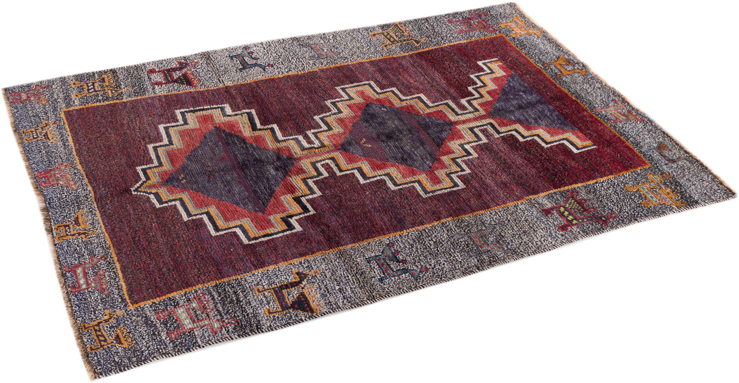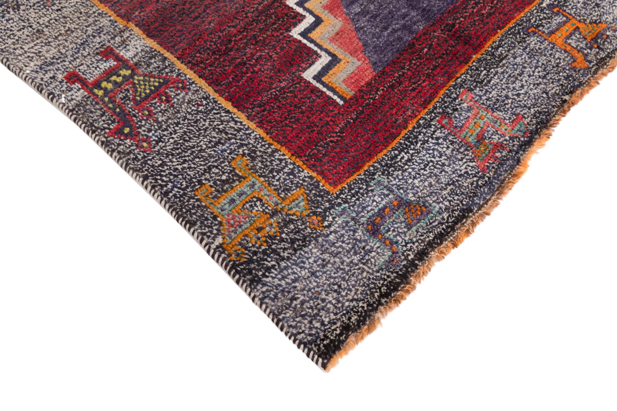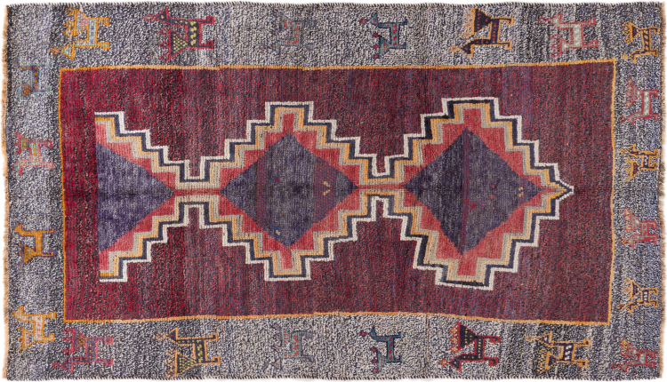 Ce tapis persan gabbeh est capable de séduire immédiatement n’importe qui grâce à sa haute qualité et à son robuste velours. Il a été fabriqué artisanalement par les nomades Ghasghai dans la région de Fars au sud de la Perse, à partir de la meilleure laine de mouton. Ils utilisent seulement des couleurs naturelles pour colorer la laine.