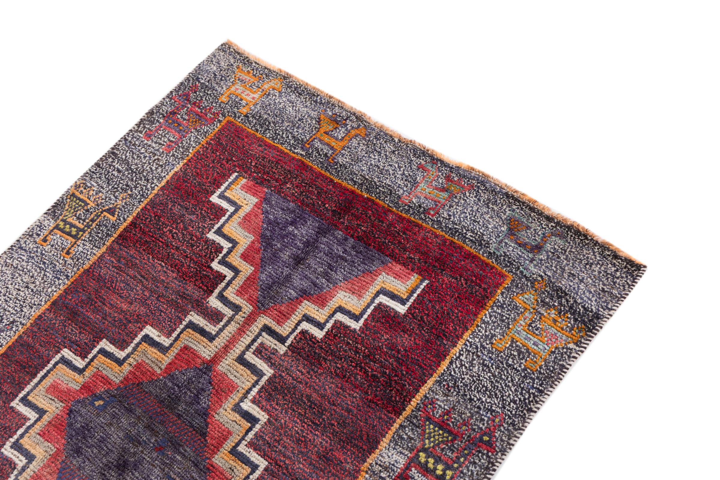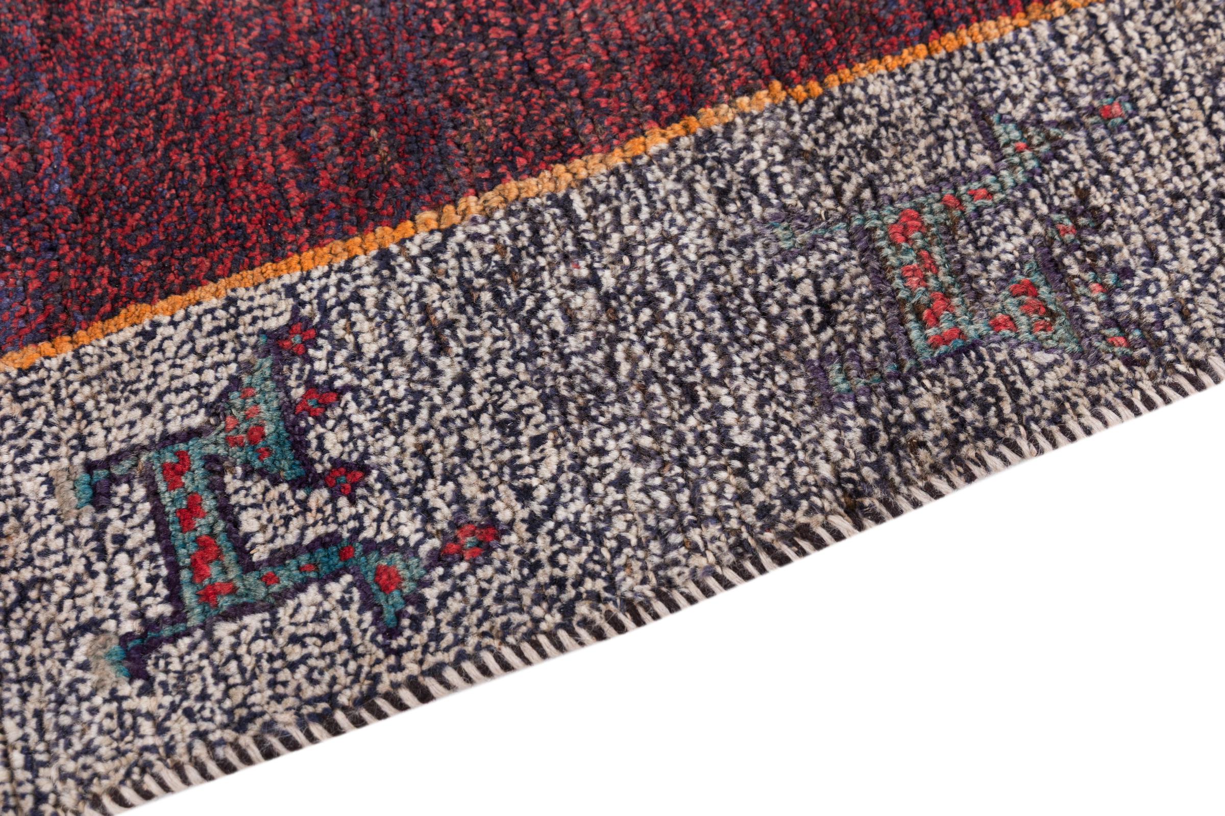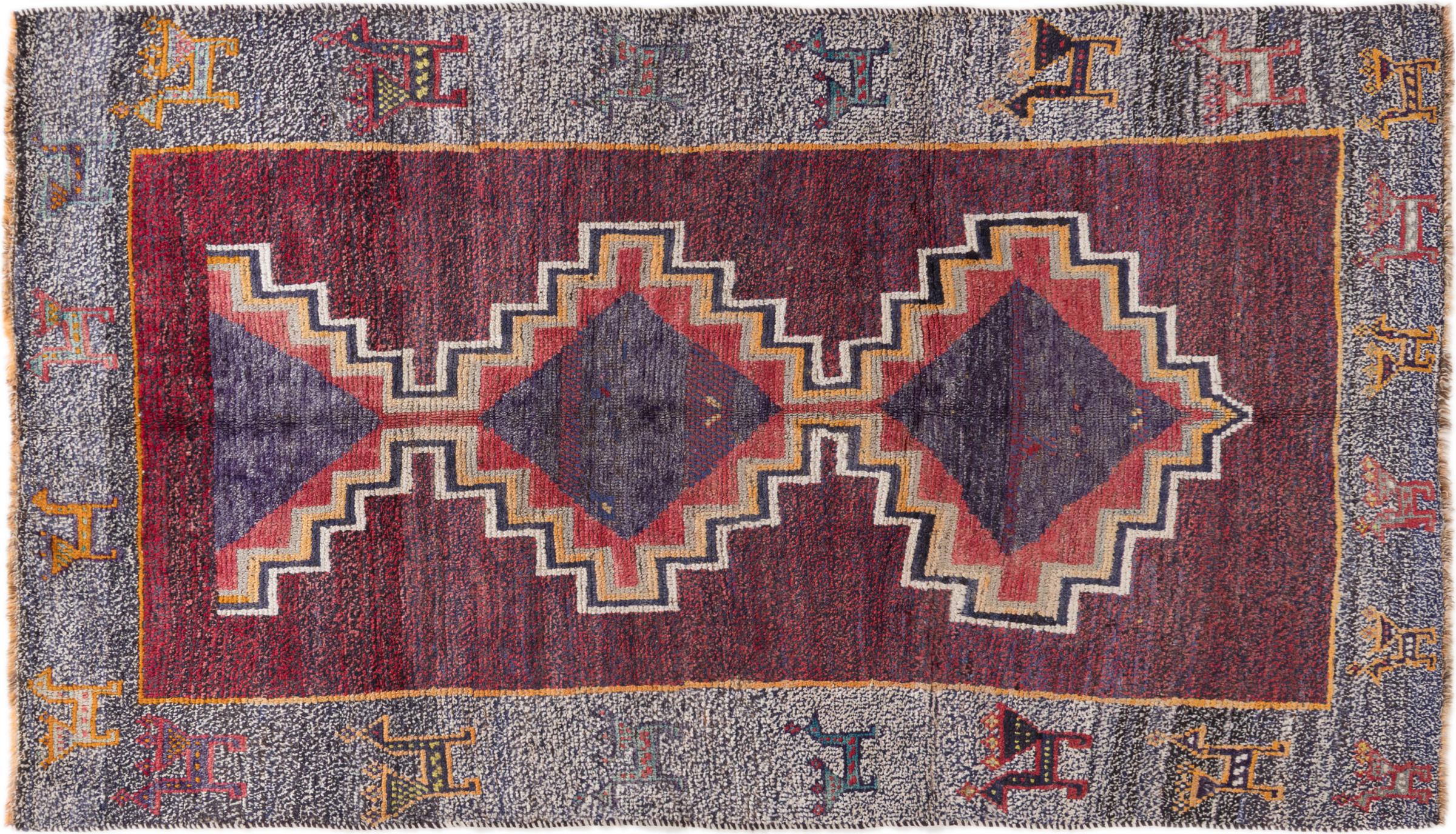 Ce tapis persan gabbeh est capable de séduire immédiatement n’importe qui grâce à sa haute qualité et à son robuste velours. Il a été fabriqué artisanalement par les nomades Ghasghai dans la région de Fars au sud de la Perse, à partir de la meilleure laine de mouton. Ils utilisent seulement des couleurs naturelles pour colorer la laine.