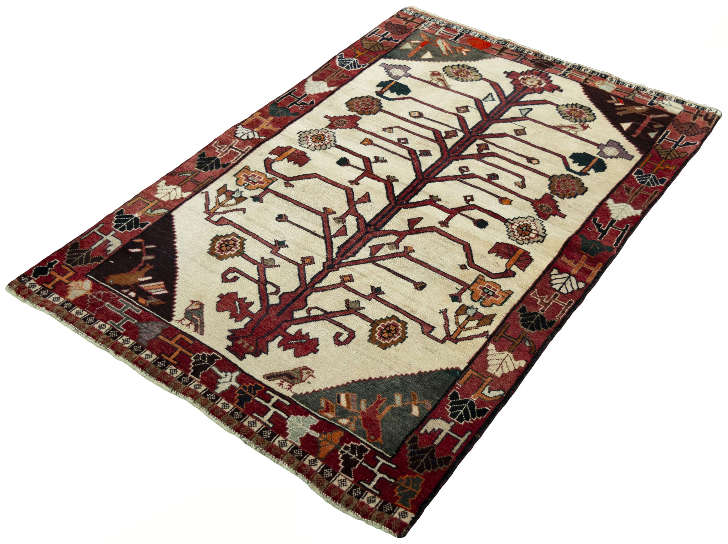 Réf. Article: 285378001246907 Taille: 188x119 cm Épaisseur: ap. 15 mm Densité de nouage: 120 000 - 150 000 / m² Fabrication: Noué à la main Velours: Laine filée à la main Chaîne: Laine de mouton Origine: Persie / Iran Âge: Nouveau Poids: ap. 9 kg Également connu sous Gabbe, Ghabbeh Nombre en stock: Unique - Seulement 1 en stock