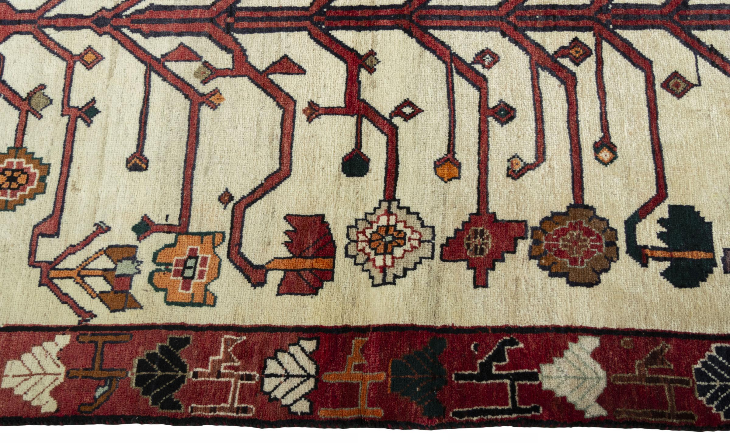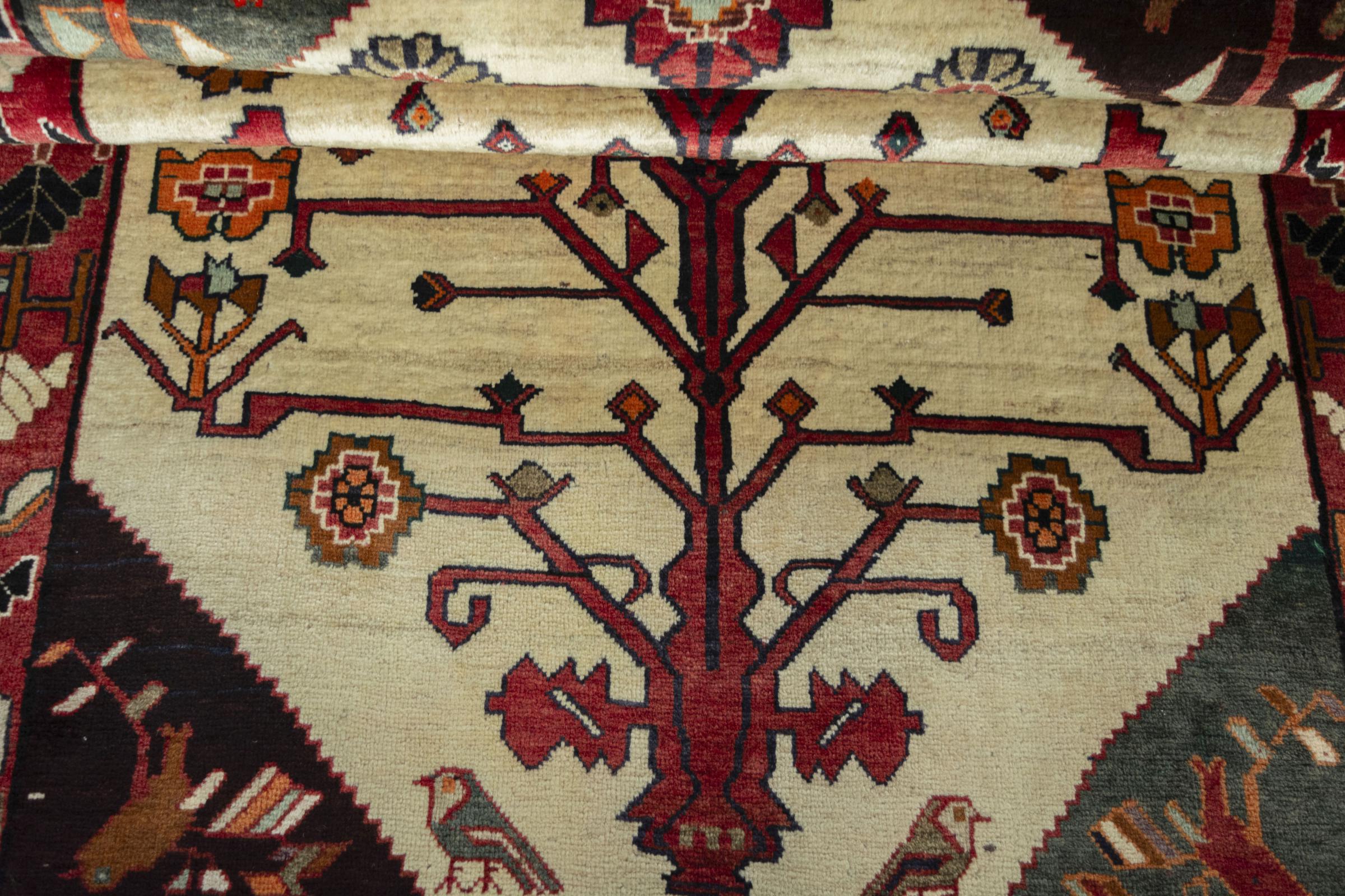 Ce tapis persan gabbeh est capable de séduire immédiatement n’importe qui grâce à sa haute qualité et à son robuste velours. Il a été fabriqué artisanalement par les nomades Ghasghai dans la région de Fars au sud de la Perse, à partir de la meilleure laine de mouton. Ils utilisent seulement des couleurs naturelles pour colorer la laine.