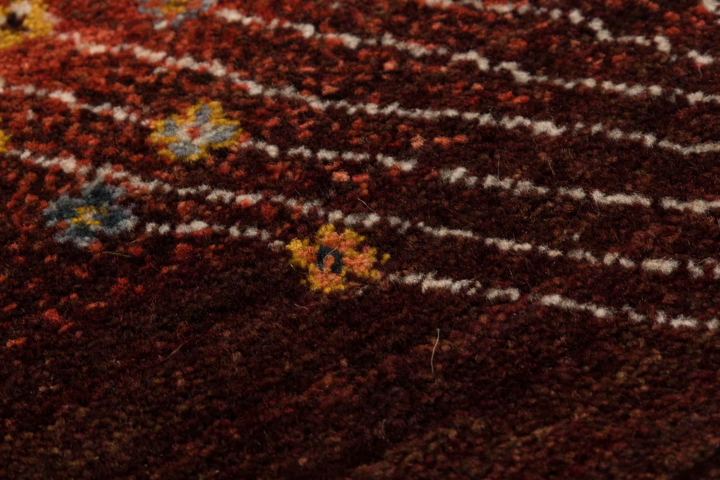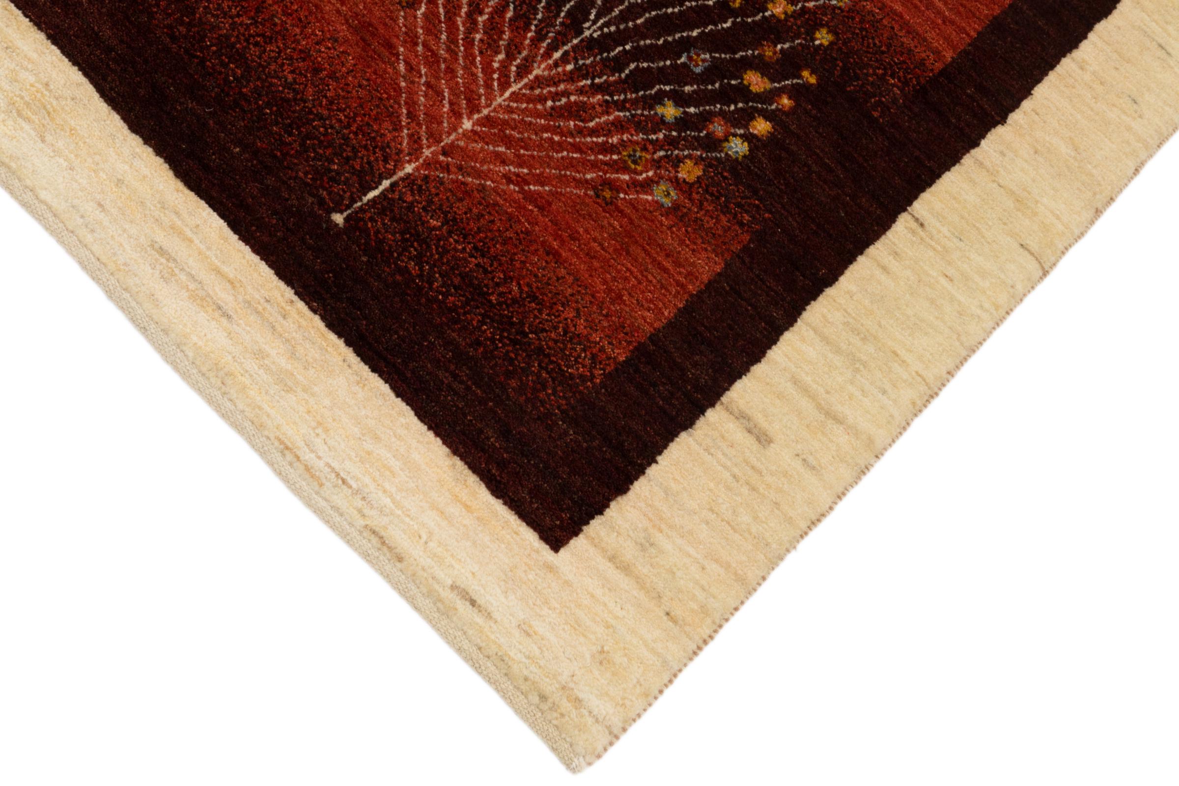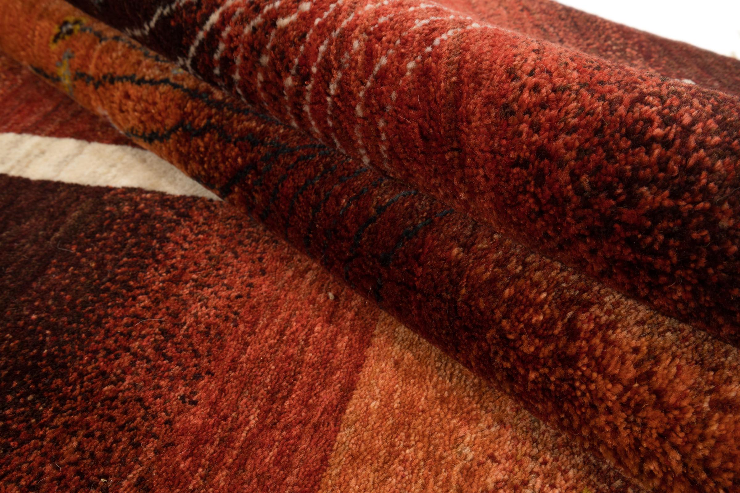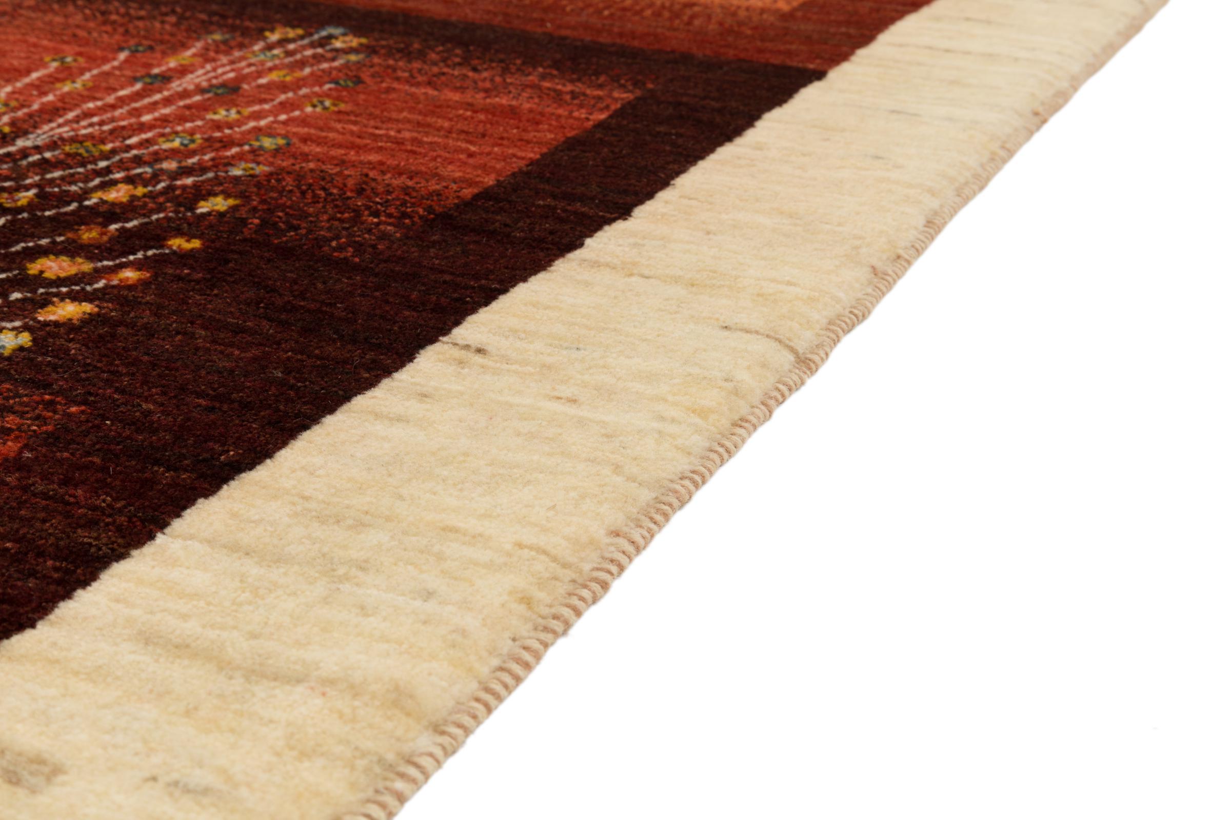 Ce magnifique tapis est un Gabbeh persan et fait donc partie des tapis Gabbeh de la plus haute qualité. Les tapis sont noués par des nomades ou des semi-nomades en Iran selon un savoir-faire traditionnel. Les motifs simples sont pour la plupart inspirés par l'environnement local des nomades. Par exemple, on peut trouver des chameaux, des arbres ou des buissons sur les tapis traditionnels. Les tapis de Gabbeh persan sont faits de laine provenant de troupeaux de moutons élevés localement. La laine est donc encore en grande partie filée à la main. Ainsi, chacun de ces tapis orientaux incarne un caractère unique de culture ancienne.