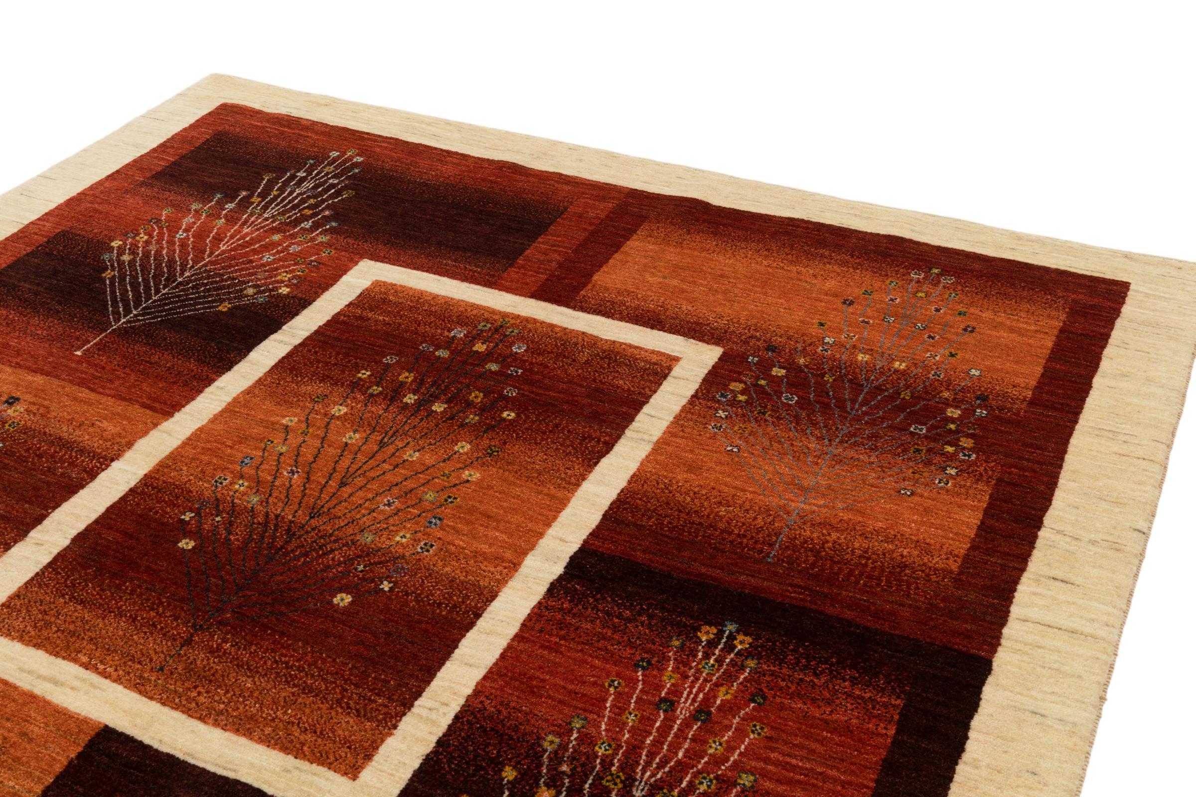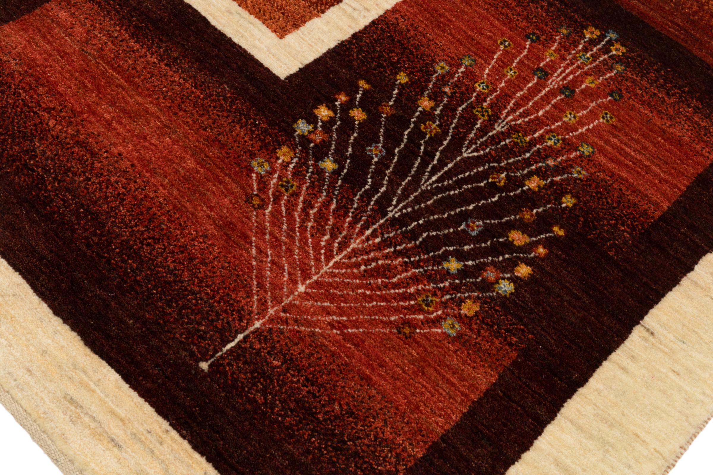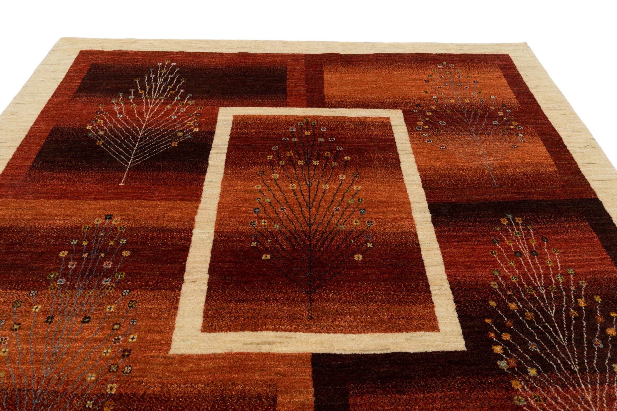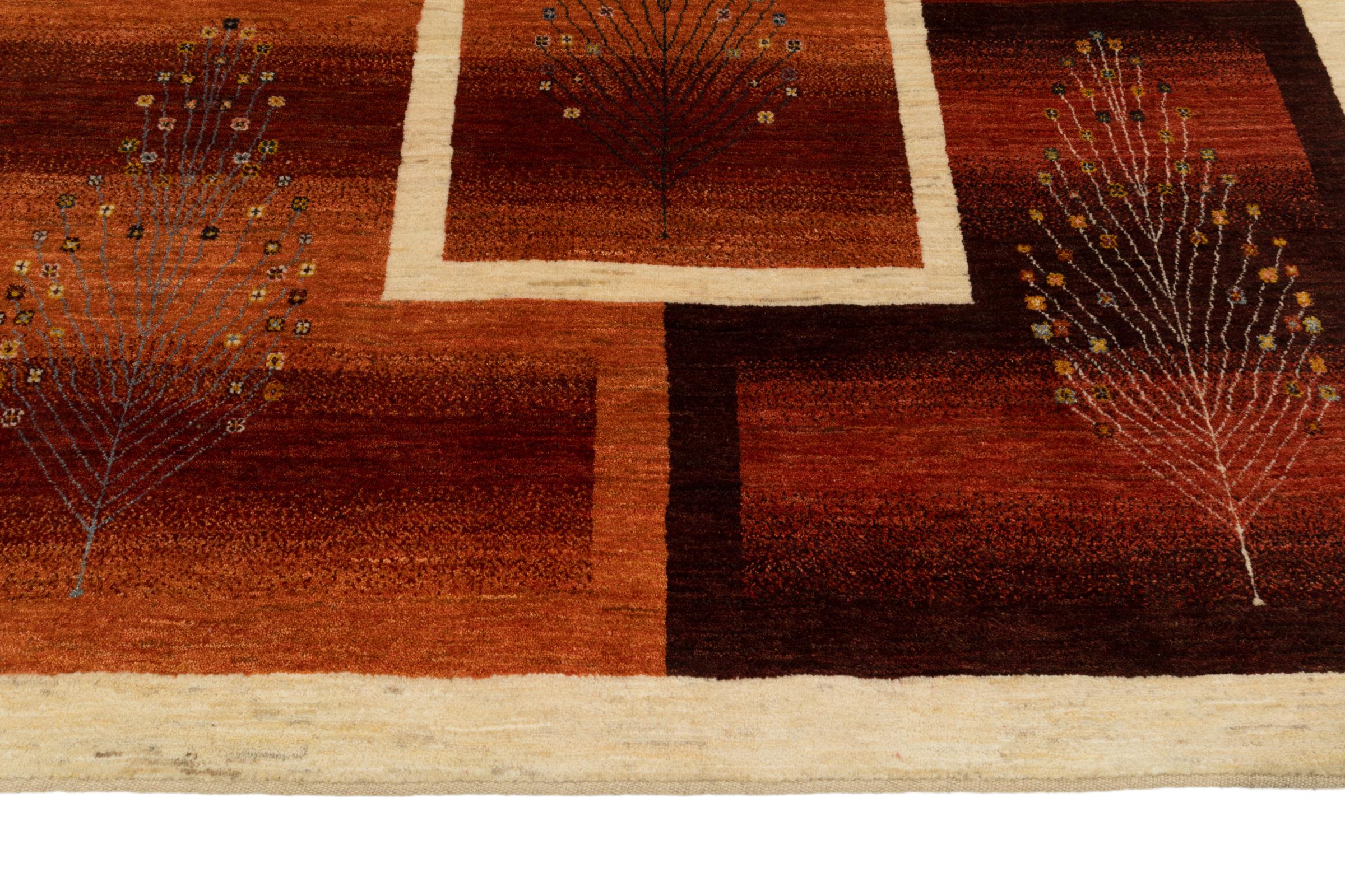Ce magnifique tapis est un Gabbeh persan et fait donc partie des tapis Gabbeh de la plus haute qualité. Les tapis sont noués par des nomades ou des semi-nomades en Iran selon un savoir-faire traditionnel. Les motifs simples sont pour la plupart inspirés par l'environnement local des nomades. Par exemple, on peut trouver des chameaux, des arbres ou des buissons sur les tapis traditionnels. Les tapis de Gabbeh persan sont faits de laine provenant de troupeaux de moutons élevés localement. La laine est donc encore en grande partie filée à la main. Ainsi, chacun de ces tapis orientaux incarne un caractère unique de culture ancienne.