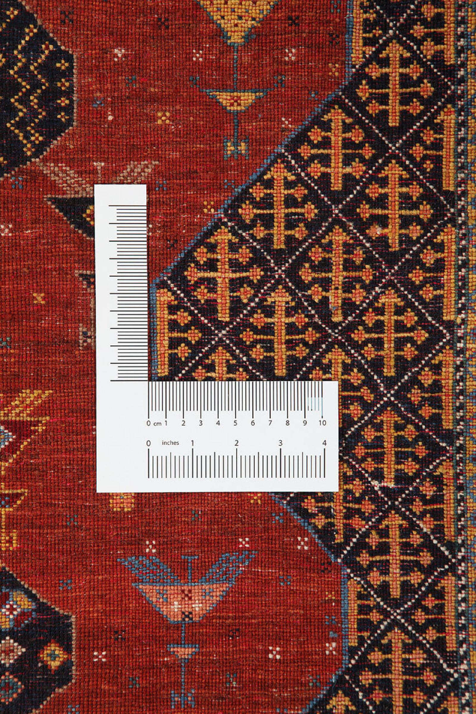 Ce tapis est fait de laine de mouton filée à la main de la plus haute qualité. En Iran (ancienne Perse), en Afghanistan et au Pakistan notamment, la laine est encore filée à la main avant que ne commence le nouage proprement dit du tapis. La laine a fait ses preuves en tant que matière naturelle et extrêmement résistante au fil des siècles. Il a notamment des propriétés antisalissures et d'isolation thermique. En même temps, la laine est incomparablement douce et a un éclat naturel.