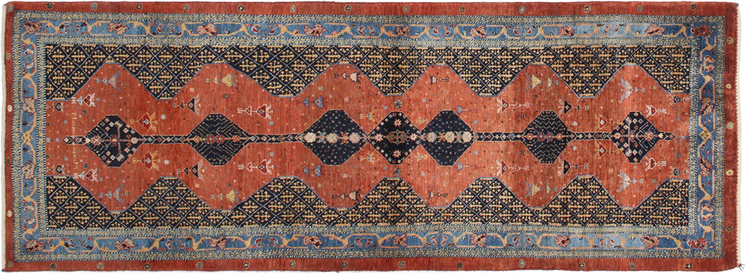 Réf. Article: 26408200317015 Taille: 268x99 cm Épaisseur: ap. 15 mm Densité de nouage: 160 000 - 200 000 / m² Fabrication: Noué à la main Velours: Laine filée à la main Chaîne: Laine de mouton Origine: Persie / Iran Âge: Nouveau Poids: ap. 11 kg Également connu sous Gabbe, Kashkuli Nombre en stock: Unique - Seulement 1 en stock