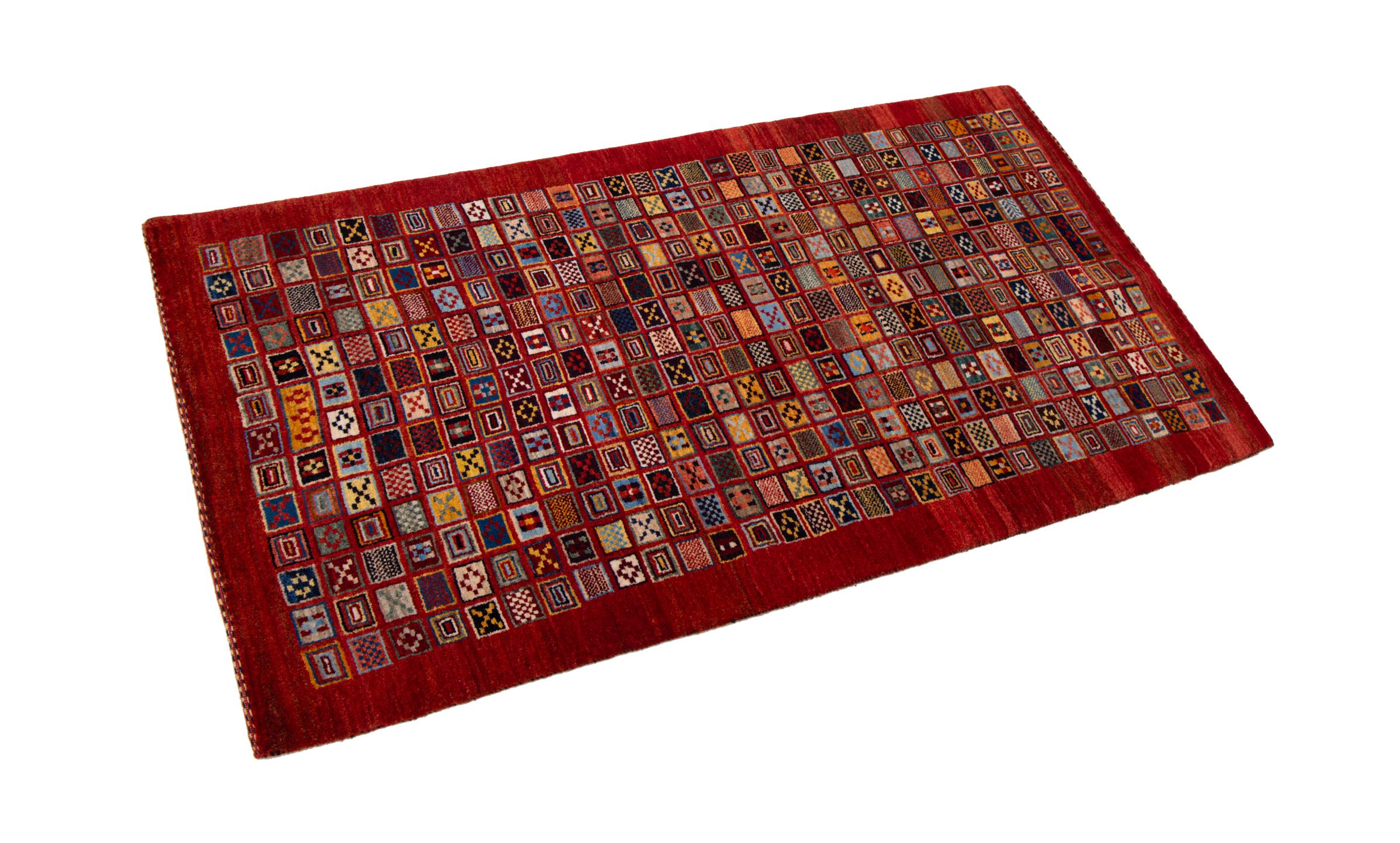 Réf. Article: 293344001258049 Taille: 199x101 cm Épaisseur: ap. 15 mm Densité de nouage: 72 000 - 90 000 / m² Fabrication: Noué à la main Velours: Laine filée à la main Chaîne: Laine de mouton Origine: Persie / Iran Âge: Nouveau Poids: ap. 8 kg Également connu sous Gabbe, Kashkuli Nombre en stock: Unique - Seulement 1 en stock