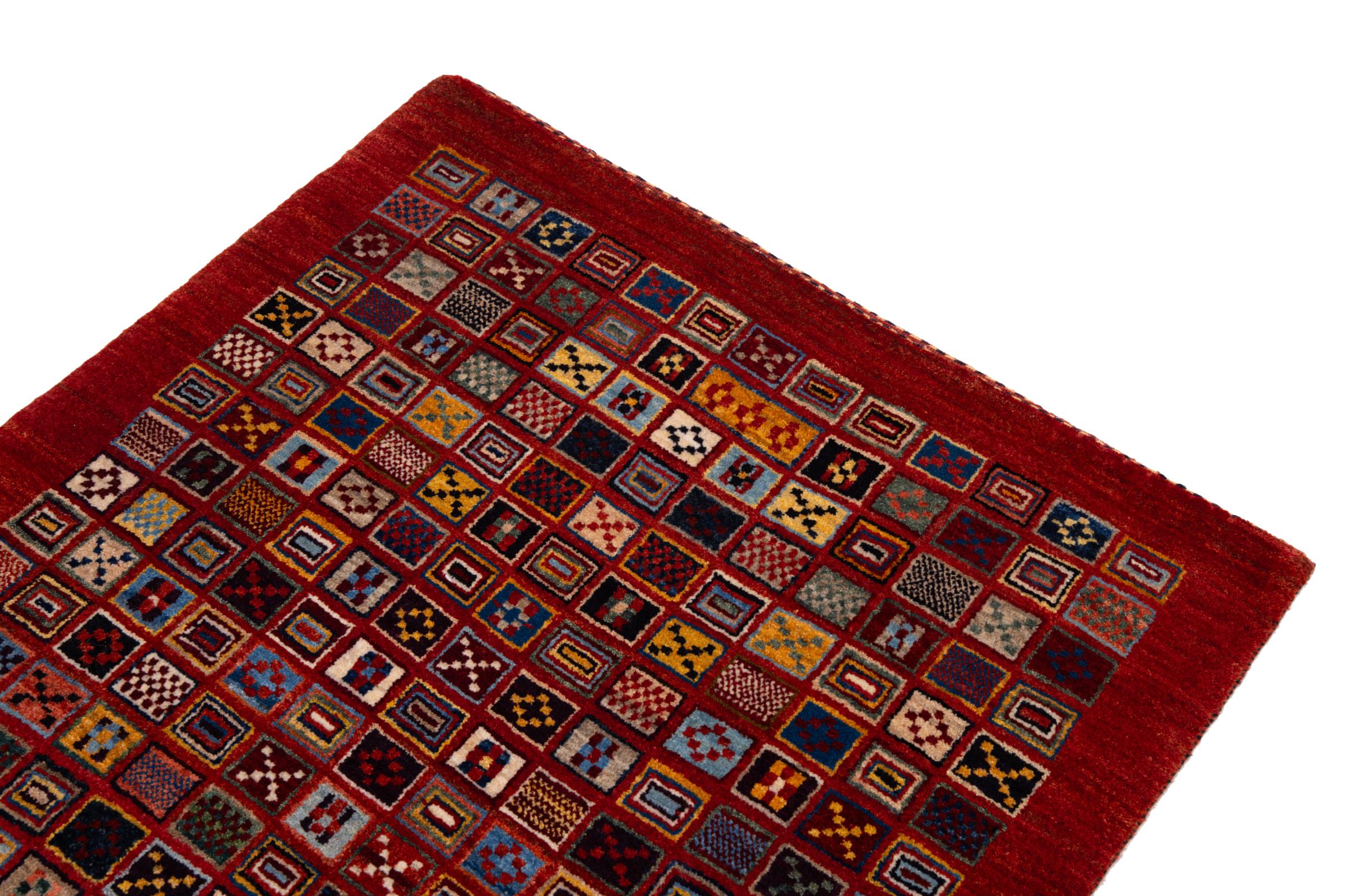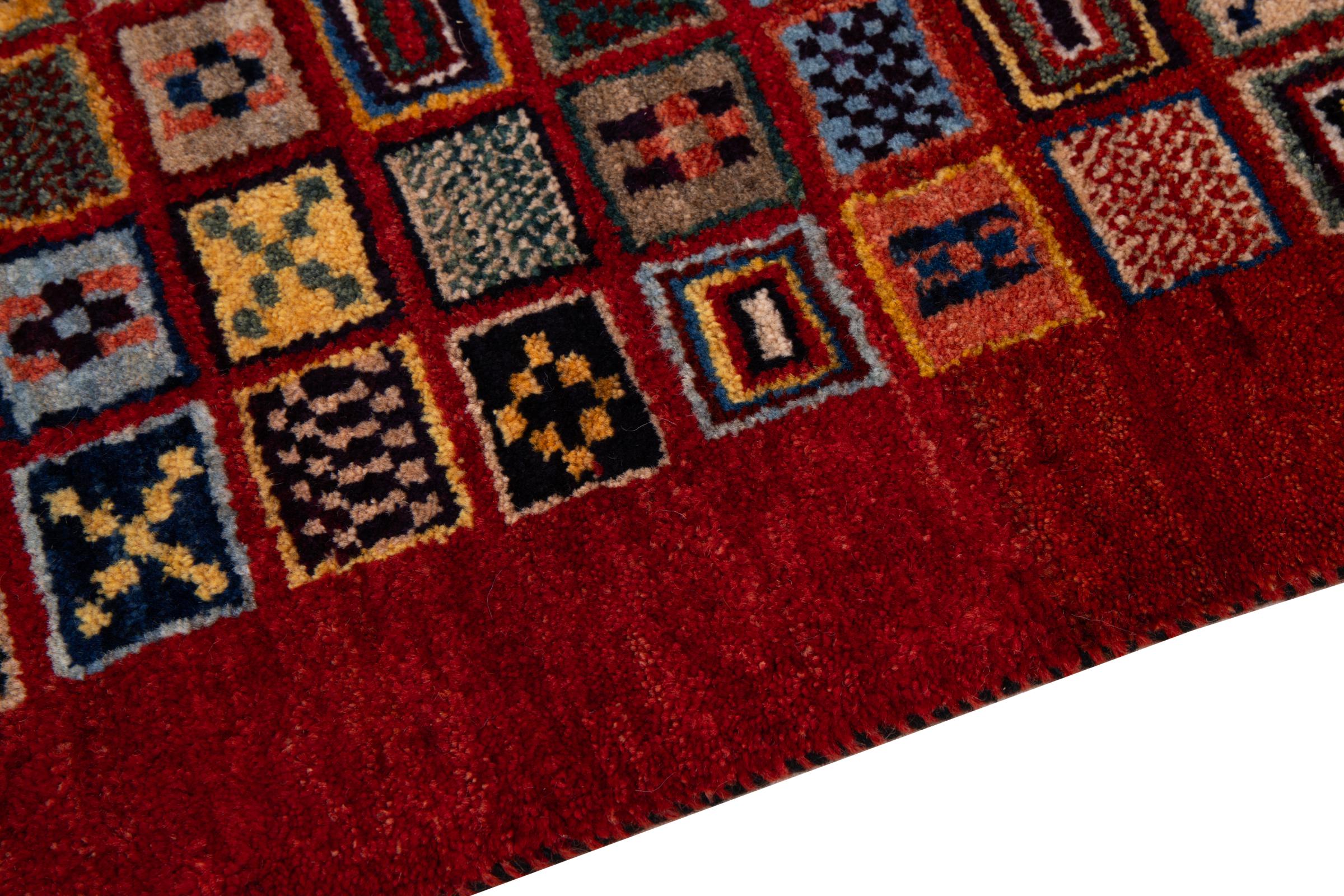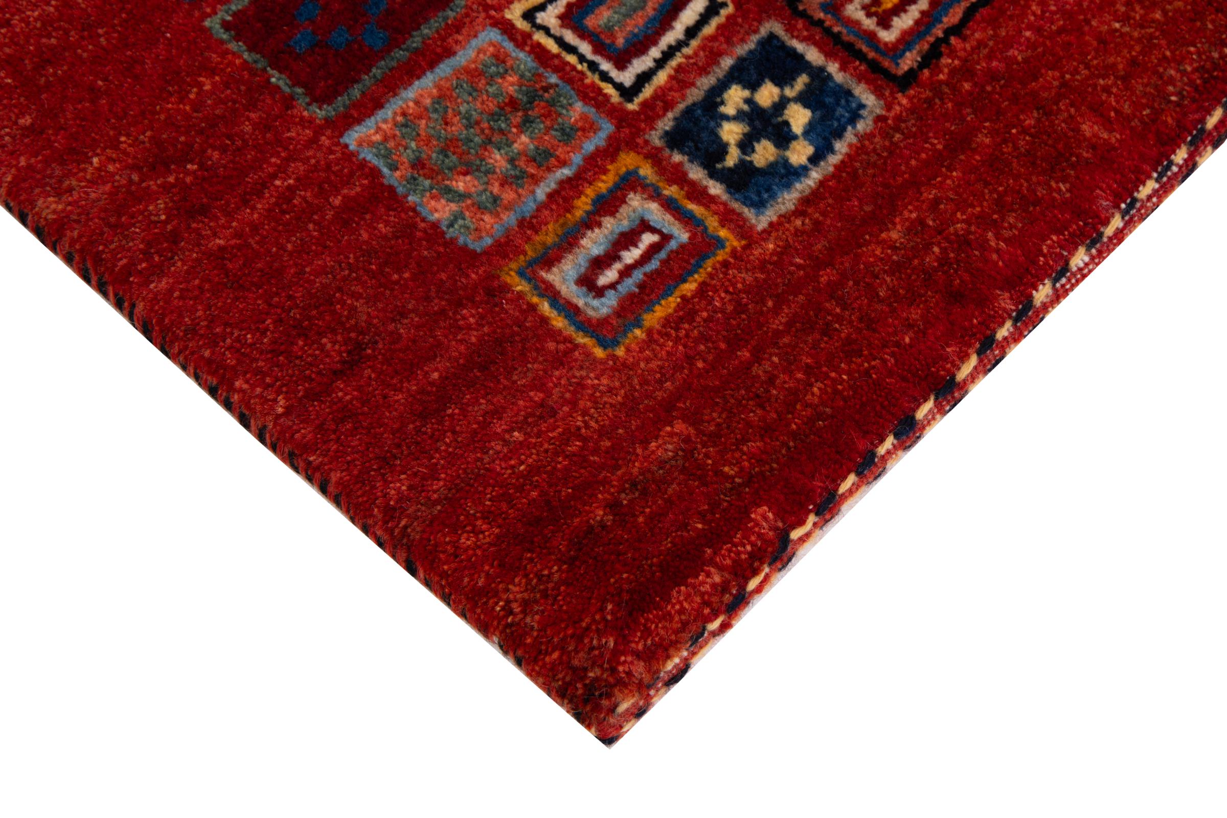 Ce magnifique tapis est un Gabbeh persan et fait donc partie des tapis Gabbeh de la plus haute qualité. Les tapis sont noués par des nomades ou des semi-nomades en Iran selon un savoir-faire traditionnel. Les motifs simples sont pour la plupart inspirés par l'environnement local des nomades. Par exemple, on peut trouver des chameaux, des arbres ou des buissons sur les tapis traditionnels. Les tapis de Gabbeh persan sont faits de laine provenant de troupeaux de moutons élevés localement. La laine est donc encore en grande partie filée à la main. Ainsi, chacun de ces tapis orientaux incarne un caractère unique de culture ancienne.
