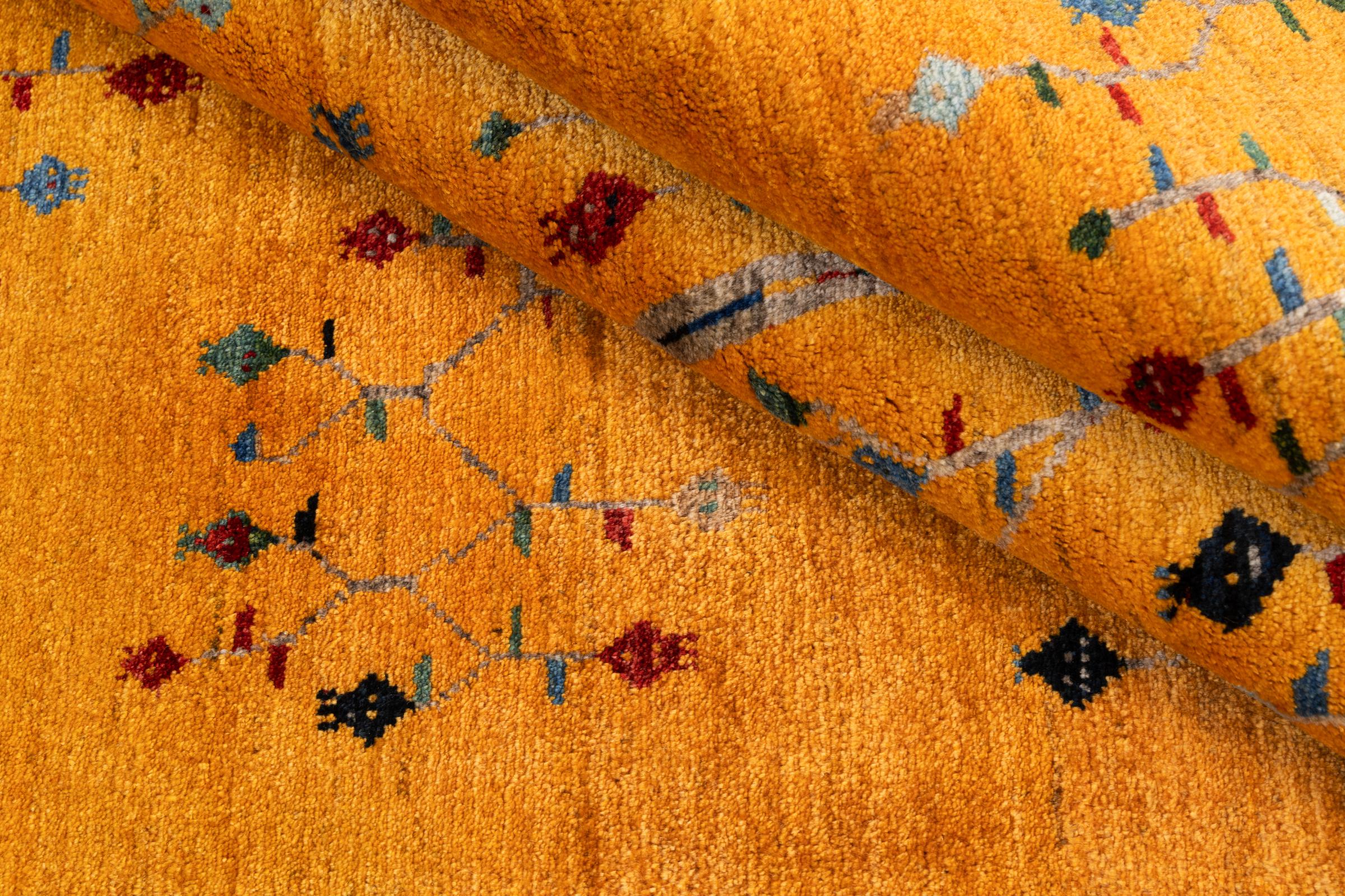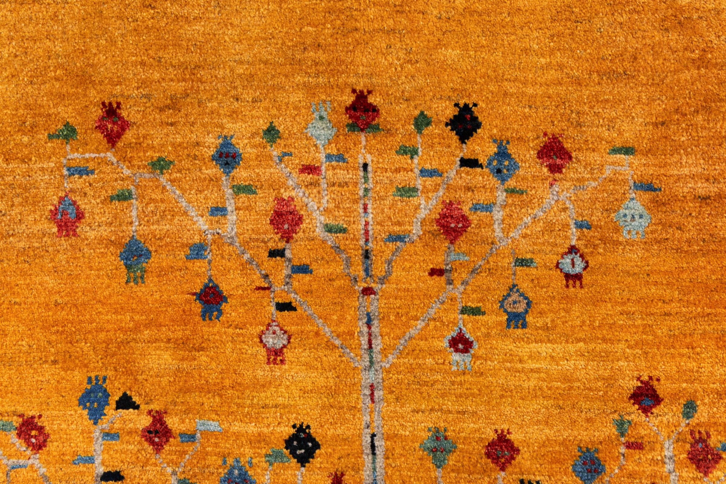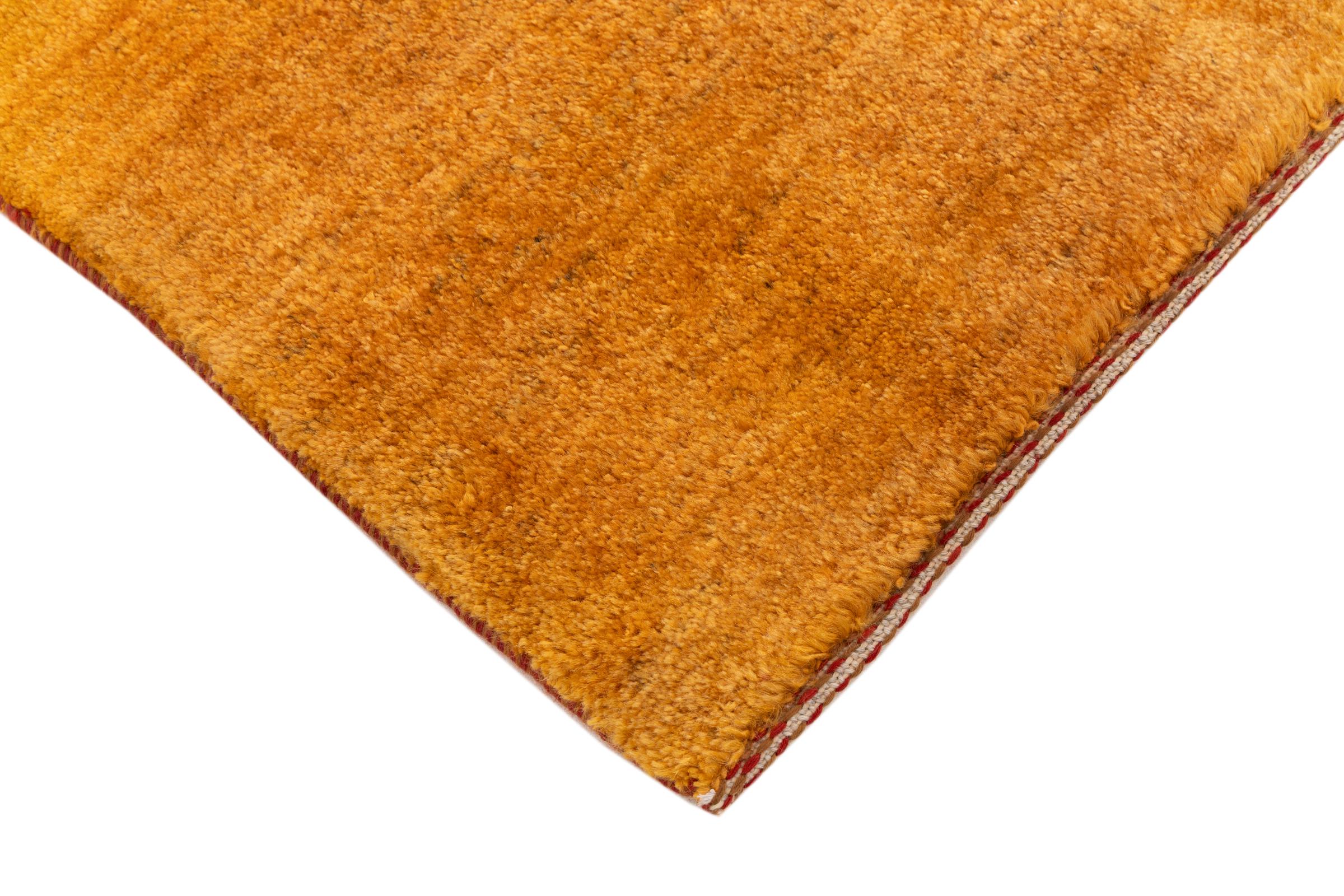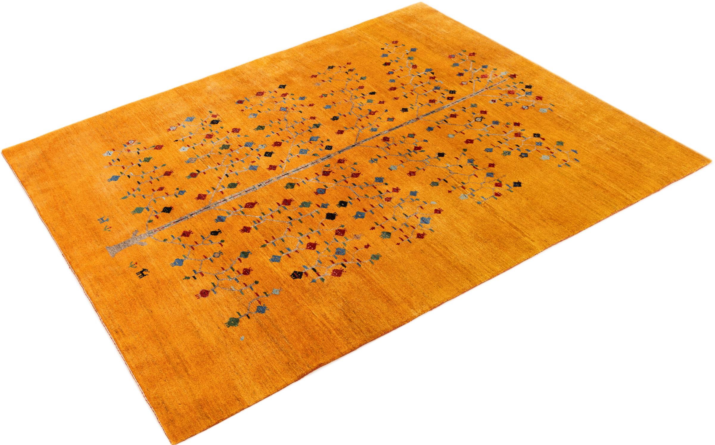 Ce magnifique tapis est un Gabbeh persan et fait donc partie des tapis Gabbeh de la plus haute qualité. Les tapis sont noués par des nomades ou des semi-nomades en Iran selon un savoir-faire traditionnel. Les motifs simples sont pour la plupart inspirés par l'environnement local des nomades. Par exemple, on peut trouver des chameaux, des arbres ou des buissons sur les tapis traditionnels. Les tapis de Gabbeh persan sont faits de laine provenant de troupeaux de moutons élevés localement. La laine est donc encore en grande partie filée à la main. Ainsi, chacun de ces tapis orientaux incarne un caractère unique de culture ancienne.