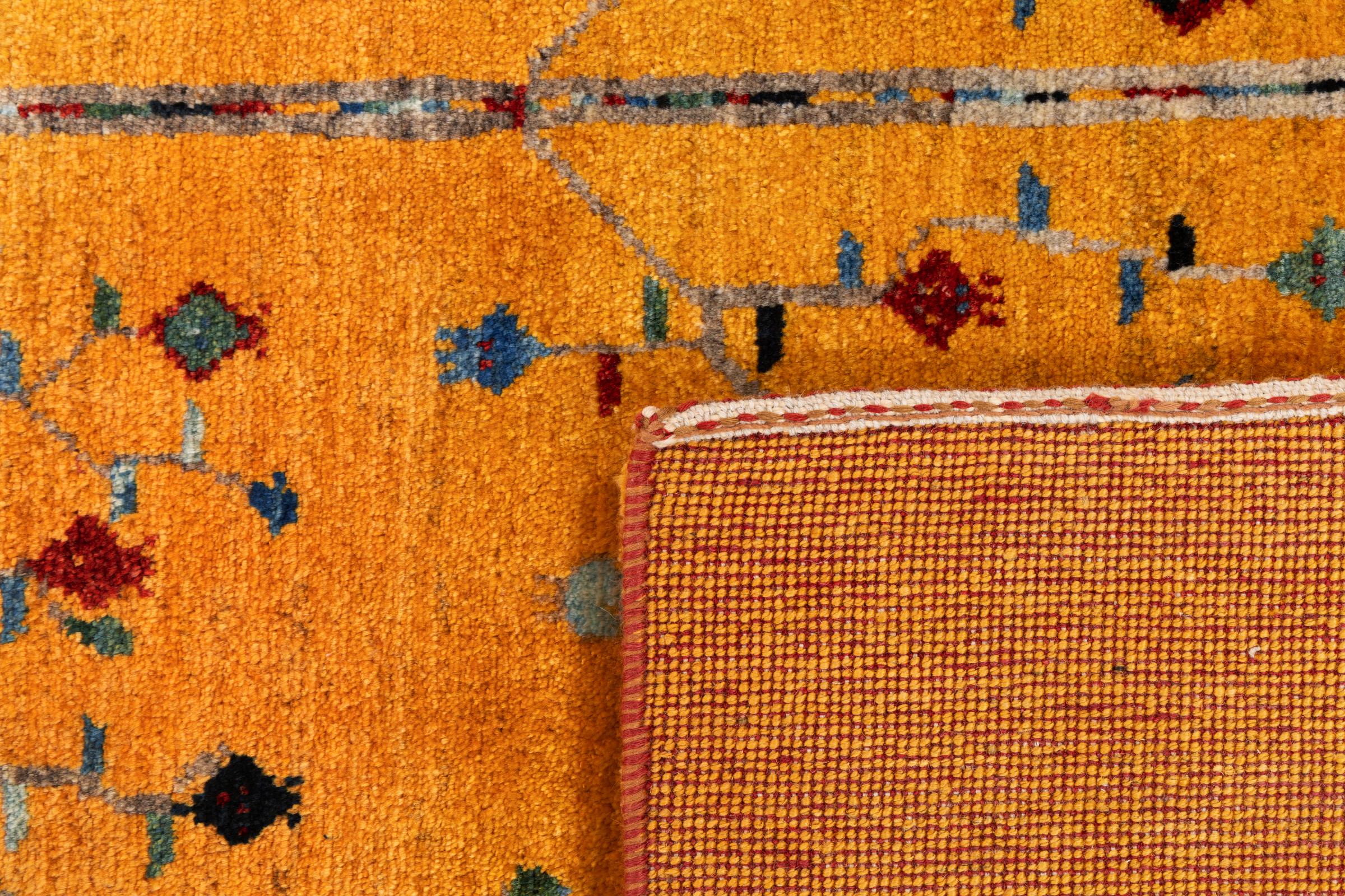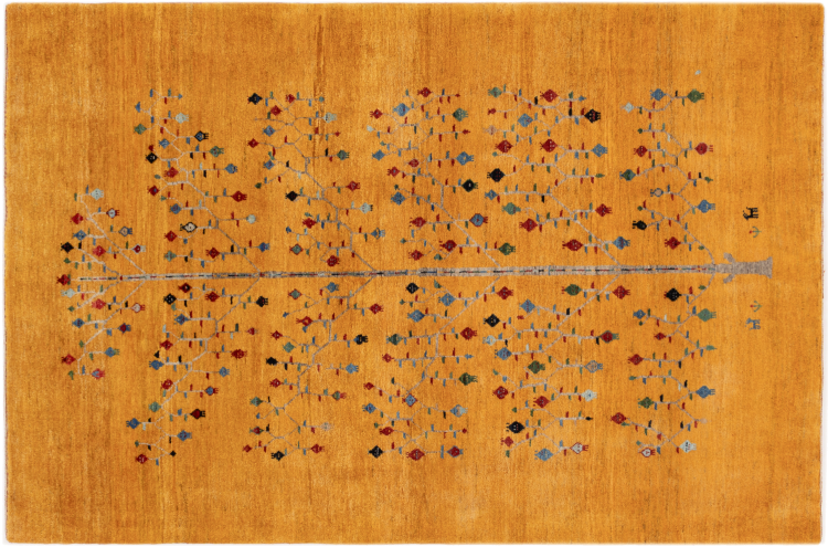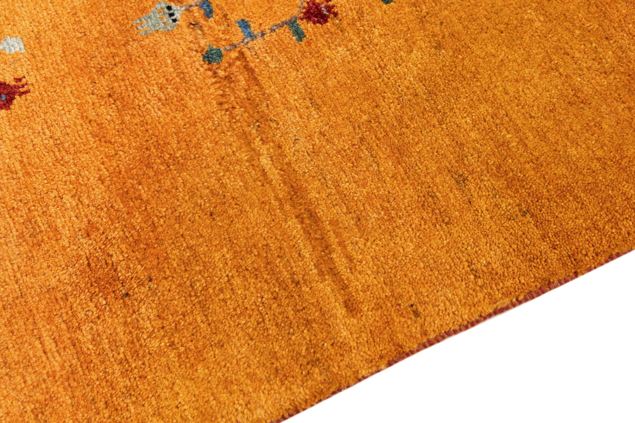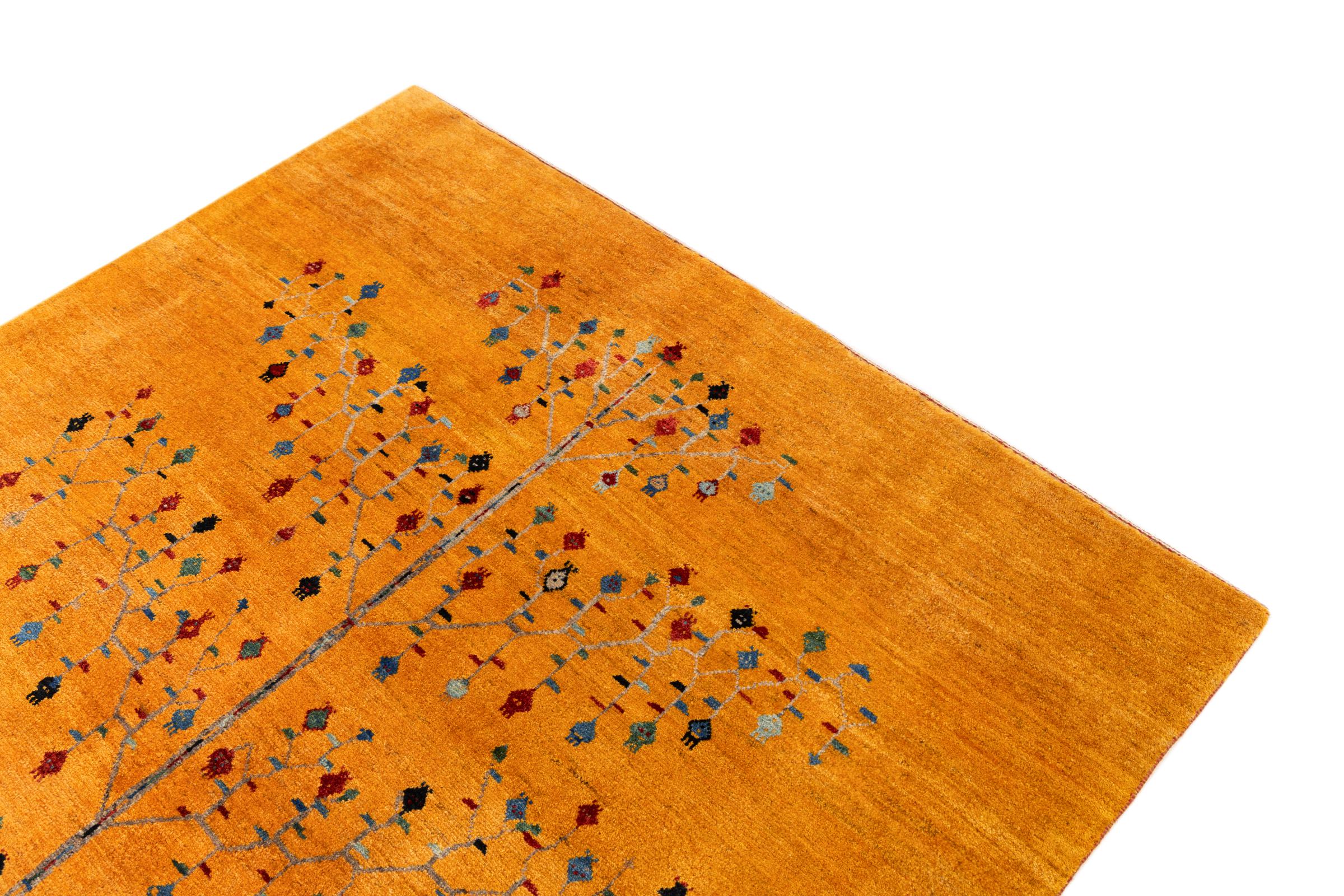 Ce magnifique tapis est un Gabbeh persan et fait donc partie des tapis Gabbeh de la plus haute qualité. Les tapis sont noués par des nomades ou des semi-nomades en Iran selon un savoir-faire traditionnel. Les motifs simples sont pour la plupart inspirés par l'environnement local des nomades. Par exemple, on peut trouver des chameaux, des arbres ou des buissons sur les tapis traditionnels. Les tapis de Gabbeh persan sont faits de laine provenant de troupeaux de moutons élevés localement. La laine est donc encore en grande partie filée à la main. Ainsi, chacun de ces tapis orientaux incarne un caractère unique de culture ancienne.