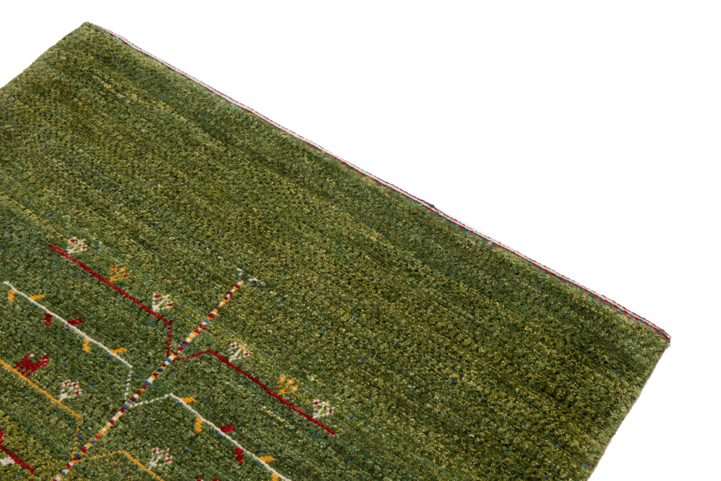 Ce tapis appartient aux tapis de village et de nomade d'Iran, anciennement la Perse. Ce type de tapis est noué à la main dans les petites villes et les villages selon l'ancienne tradition. Même les nomades nouent encore des tapis persans en plein air. Les tapis sont noués sans schéma et entièrement à partir de la tête. Ils se caractérisent par des ornements classiques, qui sont disposés en motifs droits et géométriques. Grâce à leur origine culturelle et traditionnelle, ces tapis ont un caractère unique qui incarne la Perse ancienne.