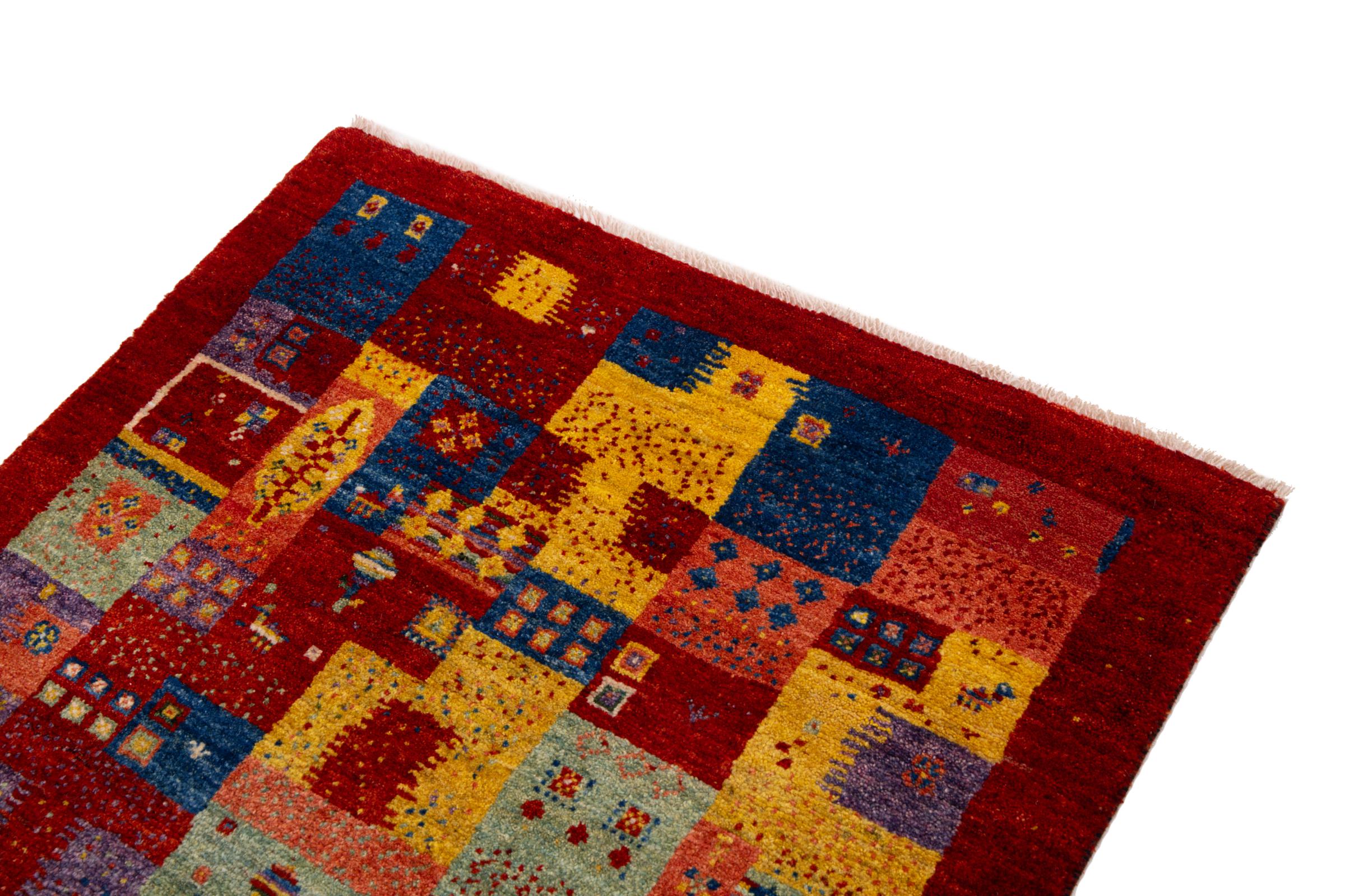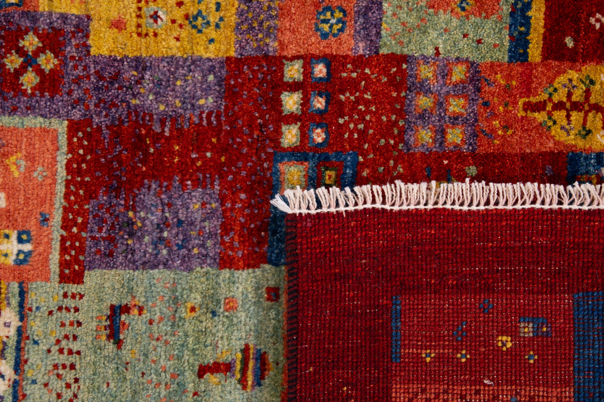 Ce tapis Qashqai attire immédiatement l’attention. Ces couleurs et motifs reflètent la vie des nomades Qashqai d’Iran, qui vivent près de la ville de Shiraz. Laissez une pièce de la culture Iranienne entrer chez vous.