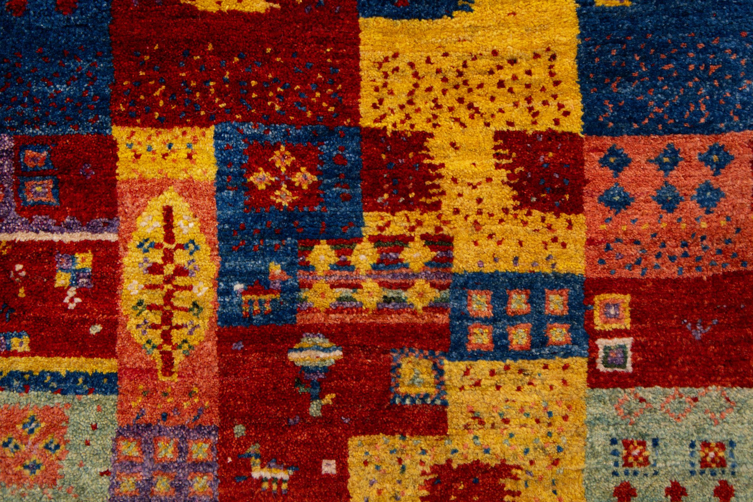 Ce tapis appartient aux tapis de village et de nomade d'Iran, anciennement la Perse. Ce type de tapis est noué à la main dans les petites villes et les villages selon l'ancienne tradition. Même les nomades nouent encore des tapis persans en plein air. Les tapis sont noués sans schéma et entièrement à partir de la tête. Ils se caractérisent par des ornements classiques, qui sont disposés en motifs droits et géométriques. Grâce à leur origine culturelle et traditionnelle, ces tapis ont un caractère unique qui incarne la Perse ancienne.