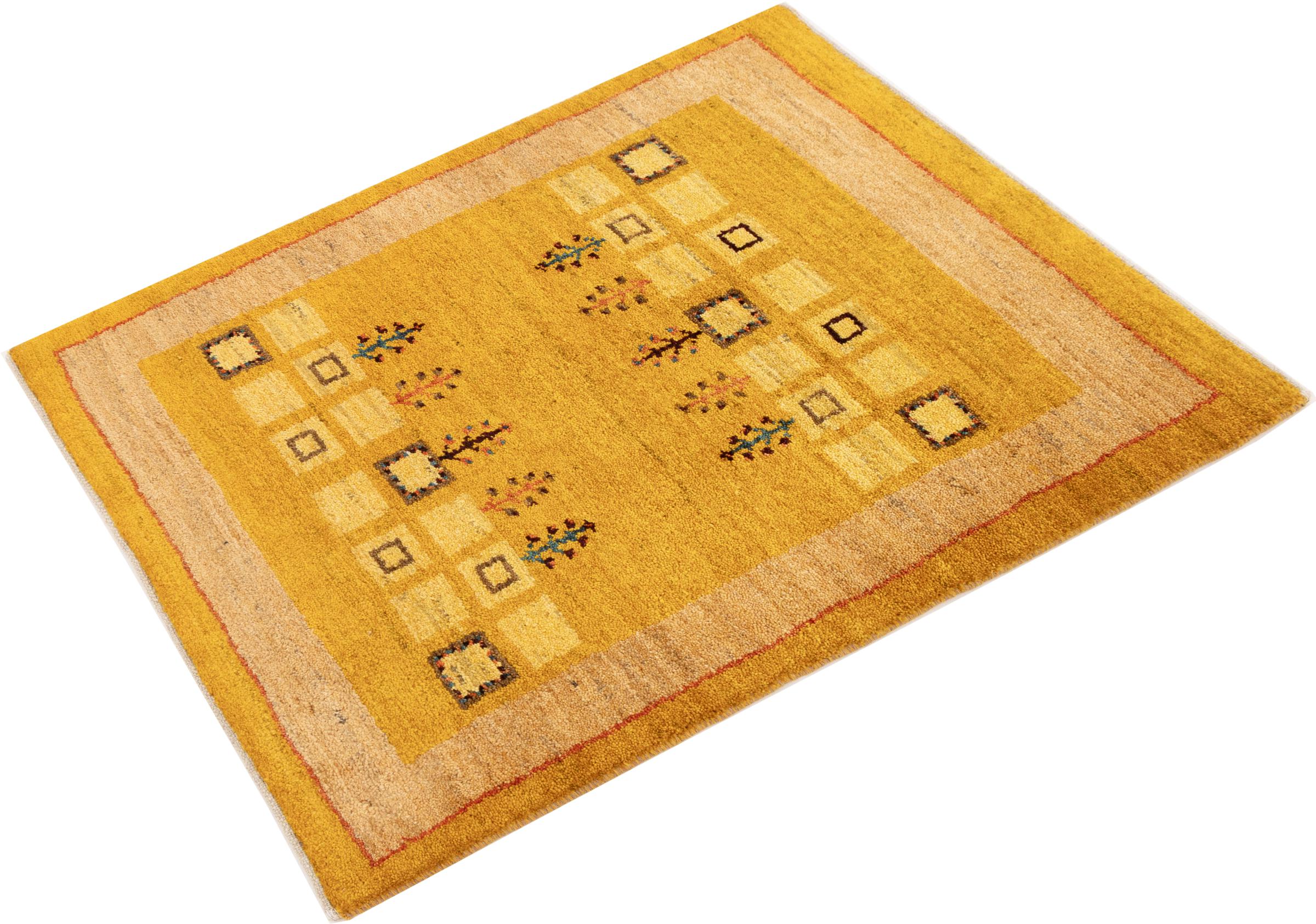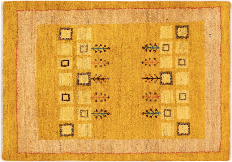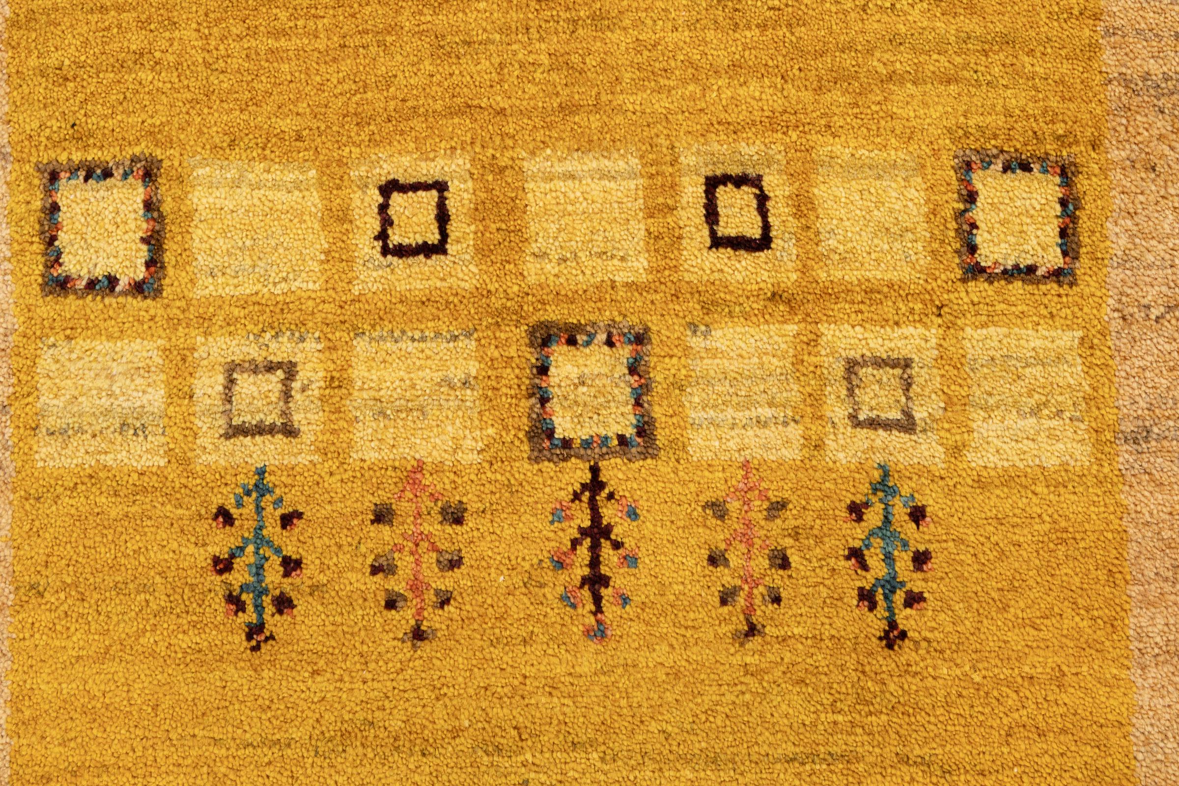 Ce tapis persan gabbeh est capable de séduire immédiatement n’importe qui grâce à sa haute qualité et à son robuste velours. Il a été fabriqué artisanalement par les nomades Ghasghai dans la région de Fars au sud de la Perse, à partir de la meilleure laine de mouton. Ils utilisent seulement des couleurs naturelles pour colorer la laine.