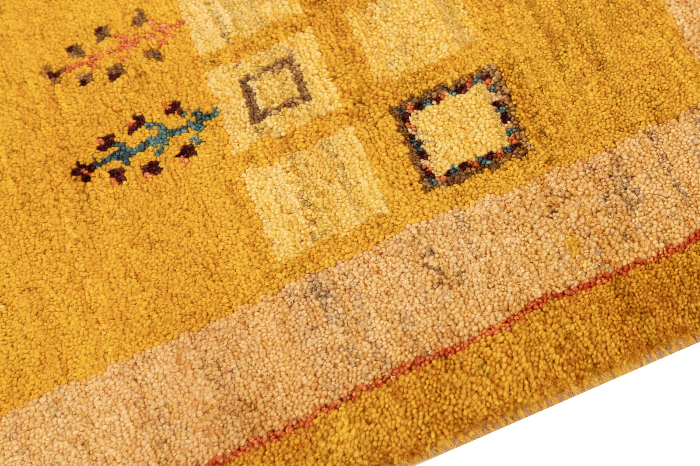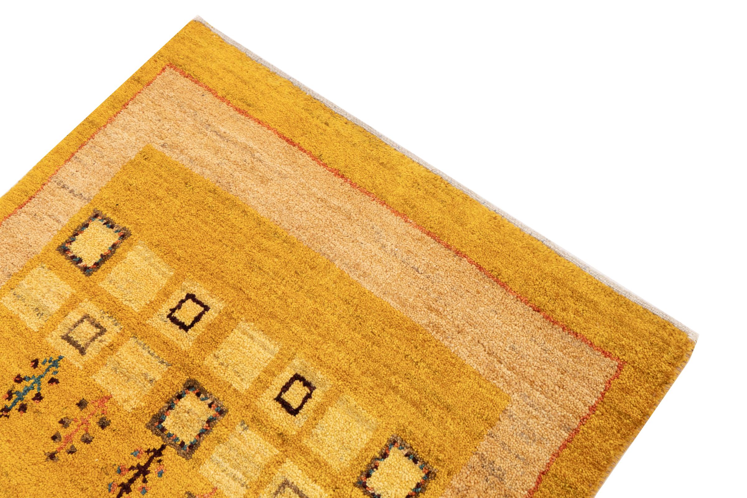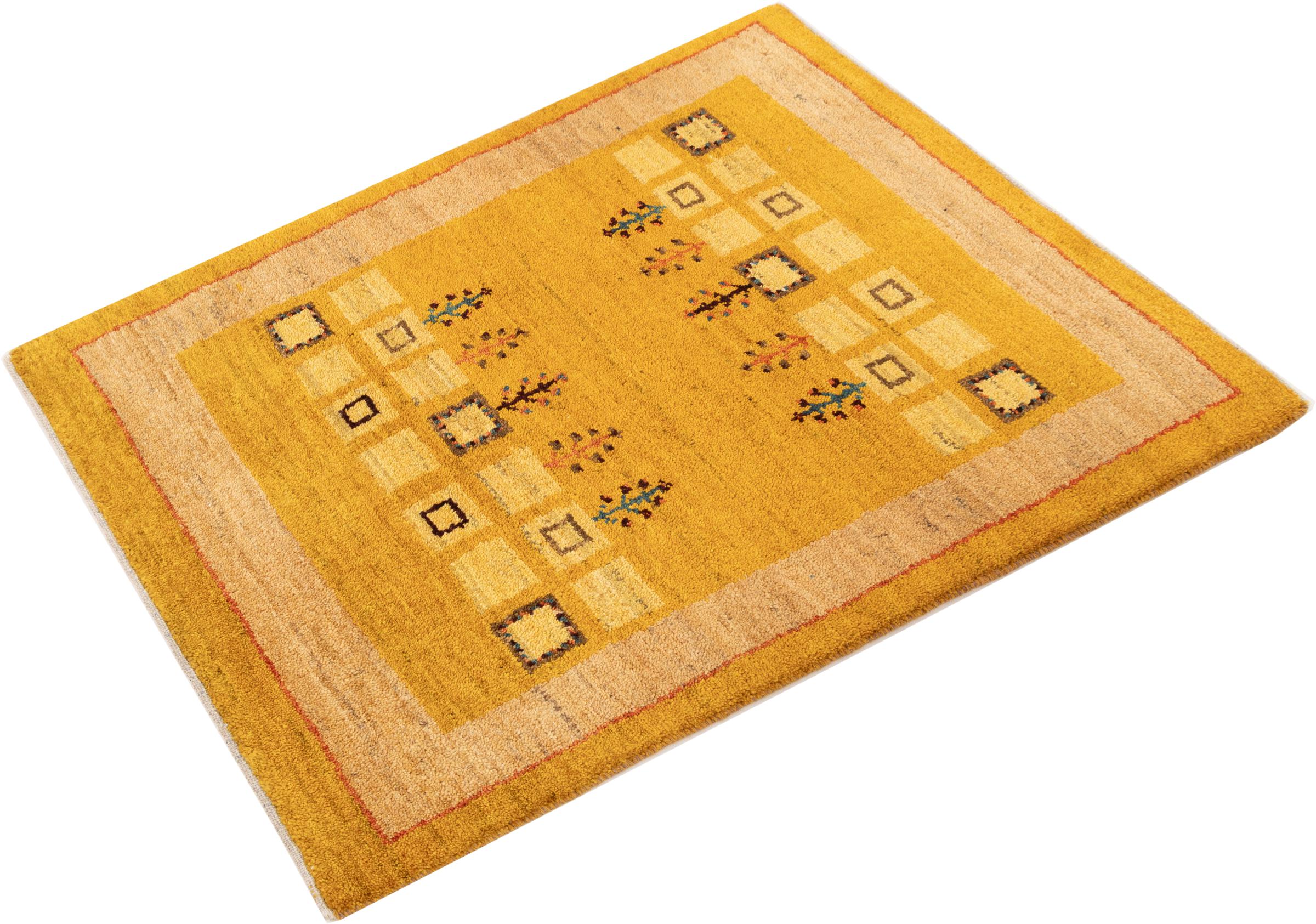 Ce tapis persan gabbeh est capable de séduire immédiatement n’importe qui grâce à sa haute qualité et à son robuste velours. Il a été fabriqué artisanalement par les nomades Ghasghai dans la région de Fars au sud de la Perse, à partir de la meilleure laine de mouton. Ils utilisent seulement des couleurs naturelles pour colorer la laine.