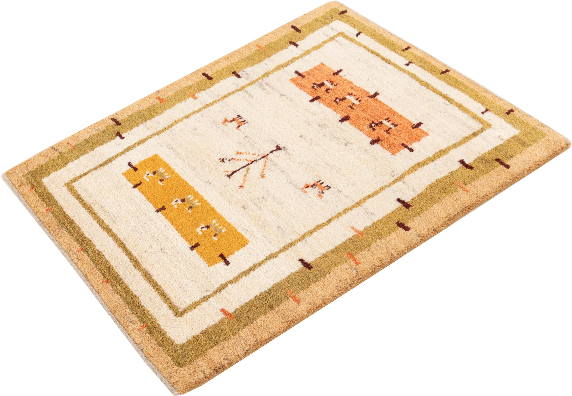 Réf. Article: 302535008598577 Taille: 119x83 cm Épaisseur: ap. 18 mm Densité de nouage: 72 000 - 90 000 / m² Fabrication: Noué à la main Velours: Laine filée à la main Chaîne: Laine de mouton Origine: Persie / Iran Âge: Nouveau Poids: ap. 5 kg Également connu sous Gabbe, Ghabbeh Nombre en stock: Unique - Seulement 1 en stock