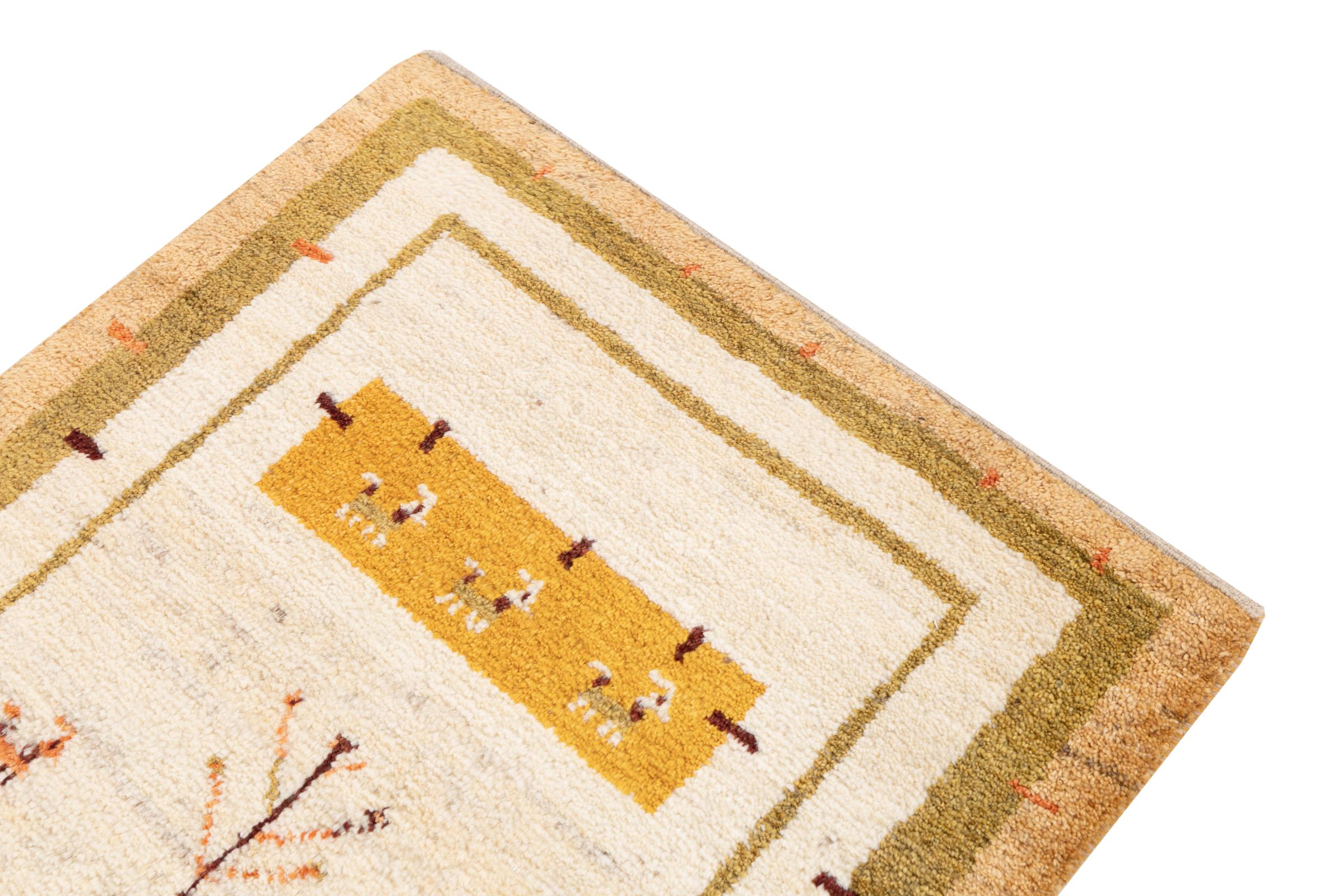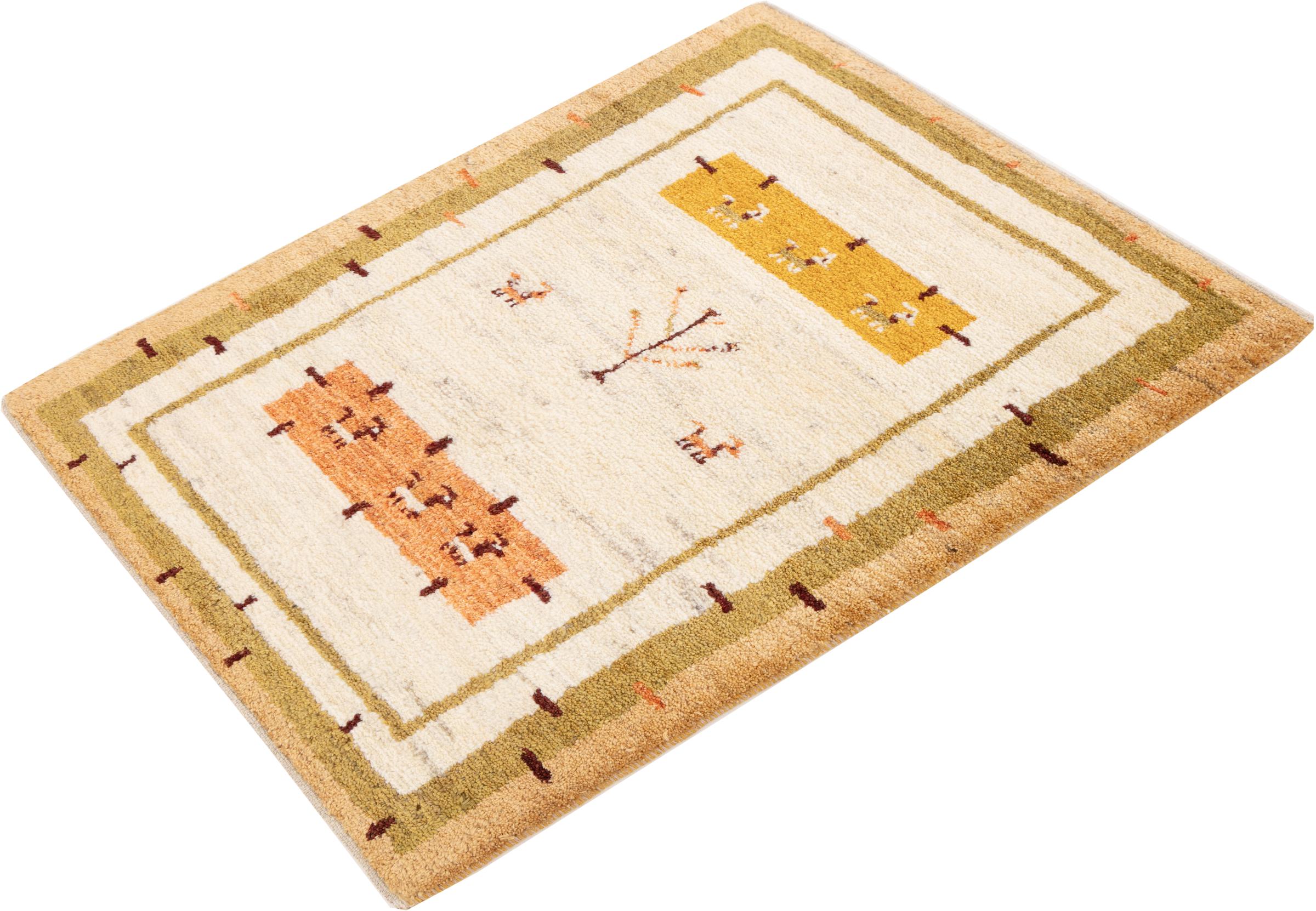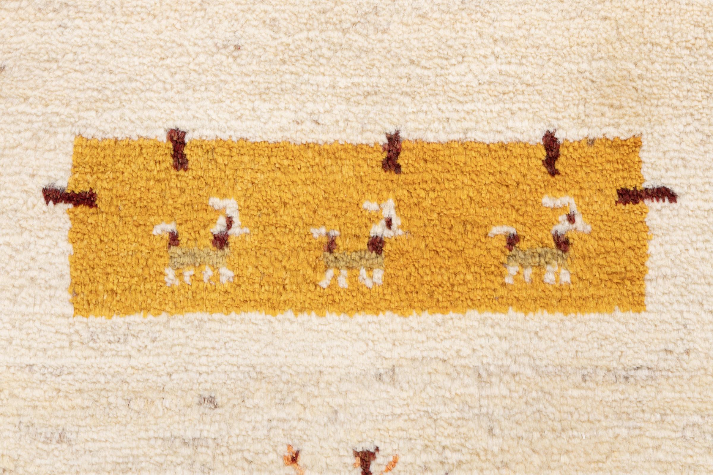 Ce tapis persan gabbeh est capable de séduire immédiatement n’importe qui grâce à sa haute qualité et à son robuste velours. Il a été fabriqué artisanalement par les nomades Ghasghai dans la région de Fars au sud de la Perse, à partir de la meilleure laine de mouton. Ils utilisent seulement des couleurs naturelles pour colorer la laine.