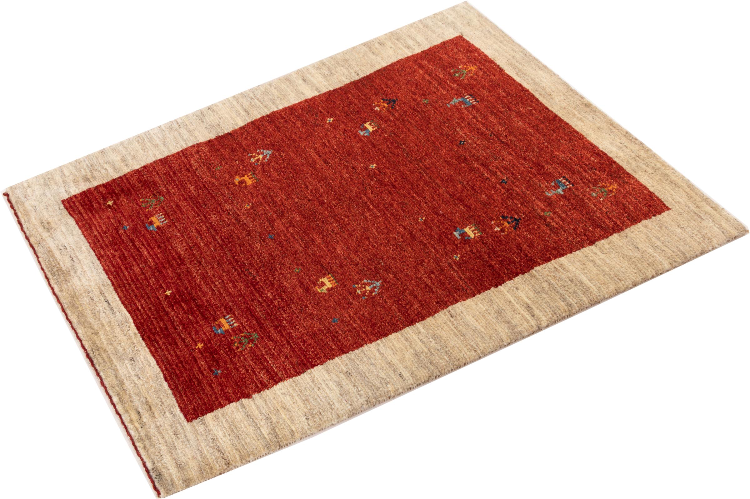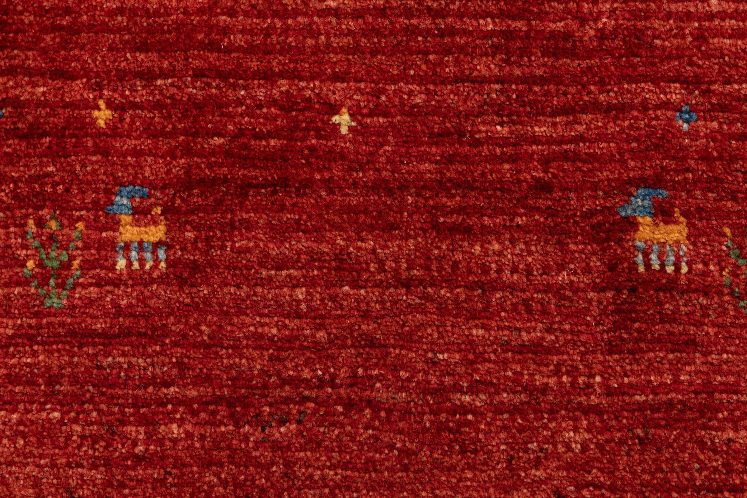 Ce magnifique tapis est un Gabbeh persan et fait donc partie des tapis Gabbeh de la plus haute qualité. Les tapis sont noués par des nomades ou des semi-nomades en Iran selon un savoir-faire traditionnel. Les motifs simples sont pour la plupart inspirés par l'environnement local des nomades. Par exemple, on peut trouver des chameaux, des arbres ou des buissons sur les tapis traditionnels. Les tapis de Gabbeh persan sont faits de laine provenant de troupeaux de moutons élevés localement. La laine est donc encore en grande partie filée à la main. Ainsi, chacun de ces tapis orientaux incarne un caractère unique de culture ancienne.