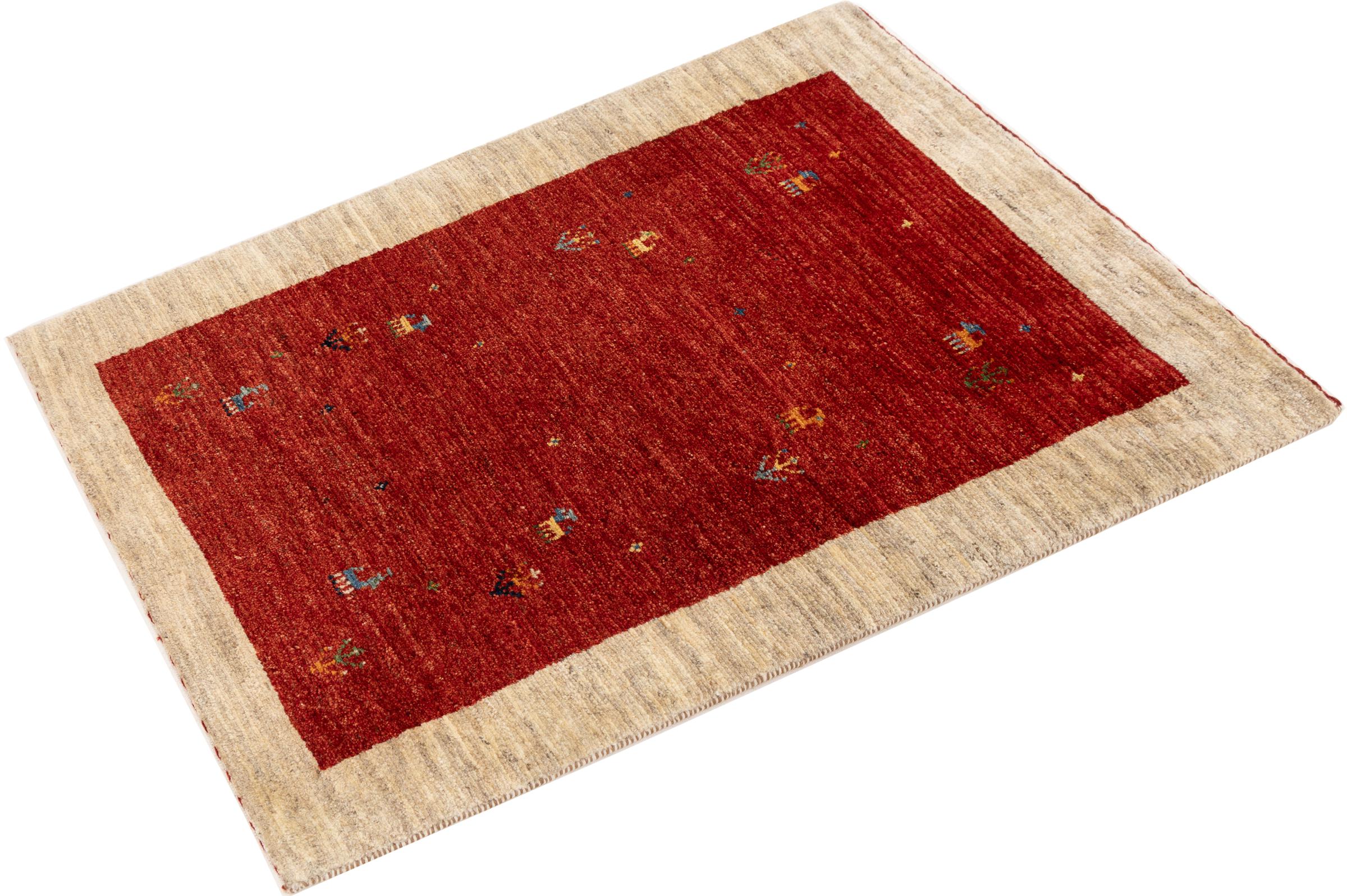 Réf. Article: 302545007378761 Taille: 121x86 cm Épaisseur: ap. 18 mm Densité de nouage: 72 000 - 90 000 / m² Fabrication: Noué à la main Velours: Laine filée à la main Chaîne: Laine de mouton Origine: Persie / Iran Âge: Nouveau Poids: ap. 5 kg Également connu sous Gabbe, Ghabbeh Nombre en stock: Unique - Seulement 1 en stock