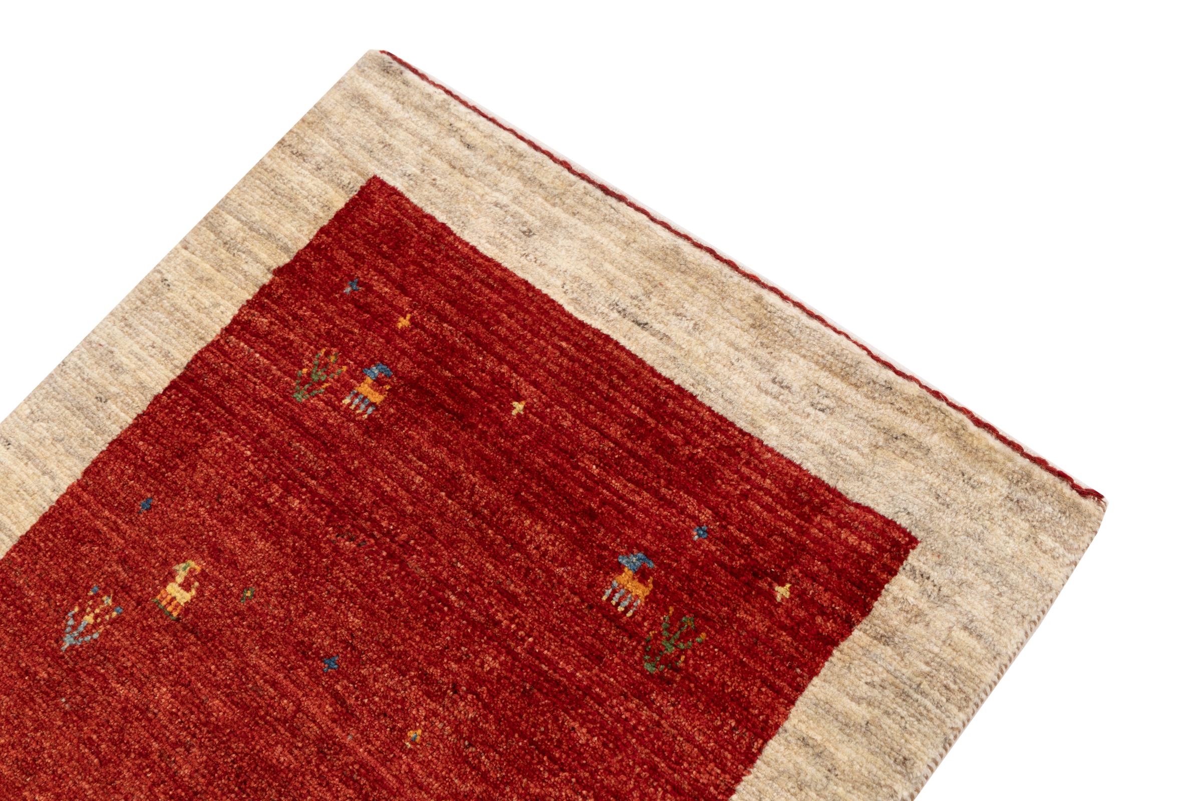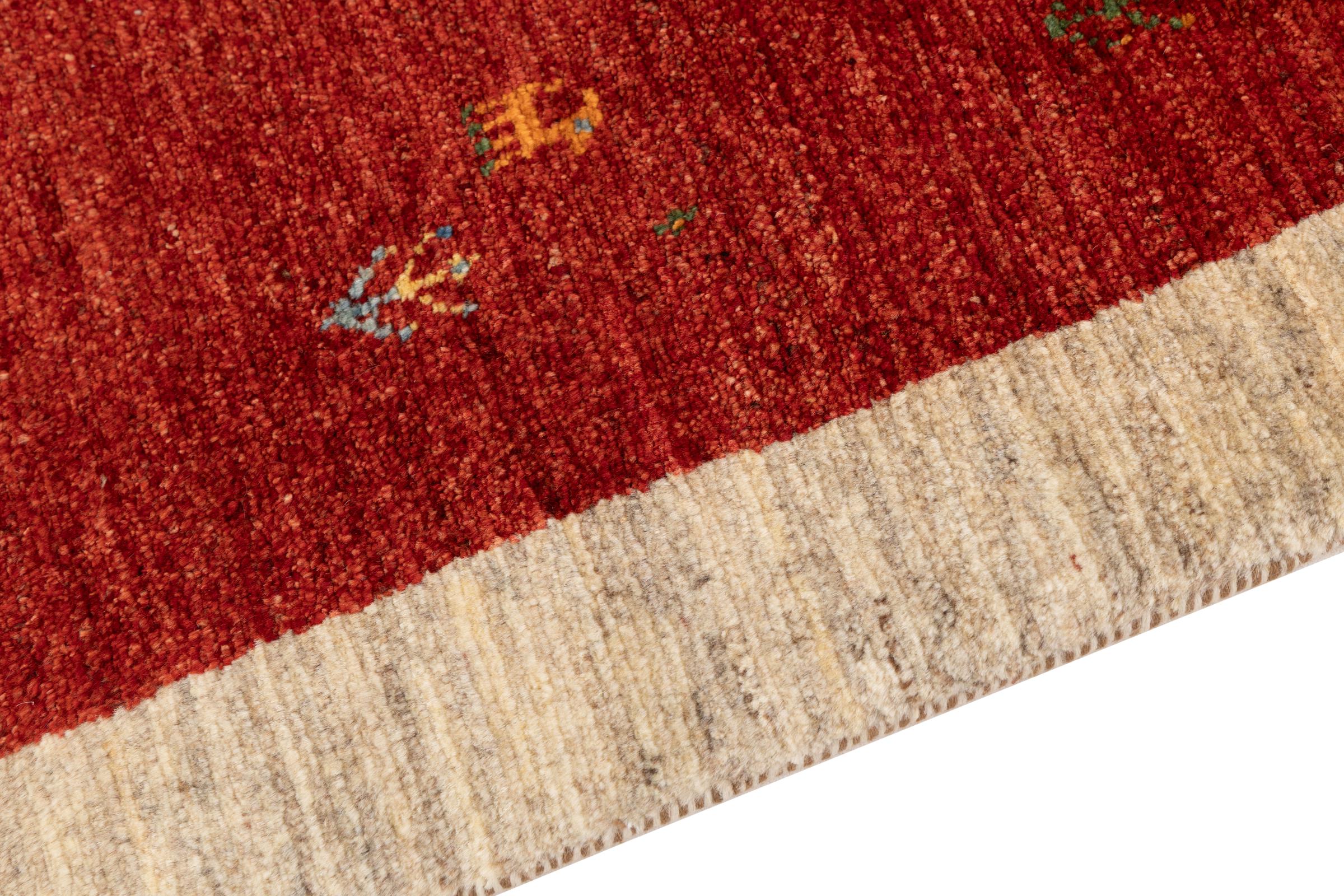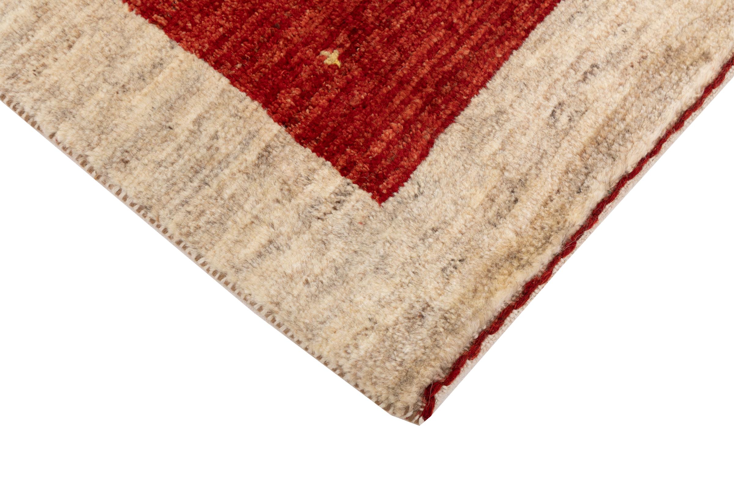 Ce tapis persan gabbeh est capable de séduire immédiatement n’importe qui grâce à sa haute qualité et à son robuste velours. Il a été fabriqué artisanalement par les nomades Ghasghai dans la région de Fars au sud de la Perse, à partir de la meilleure laine de mouton. Ils utilisent seulement des couleurs naturelles pour colorer la laine.