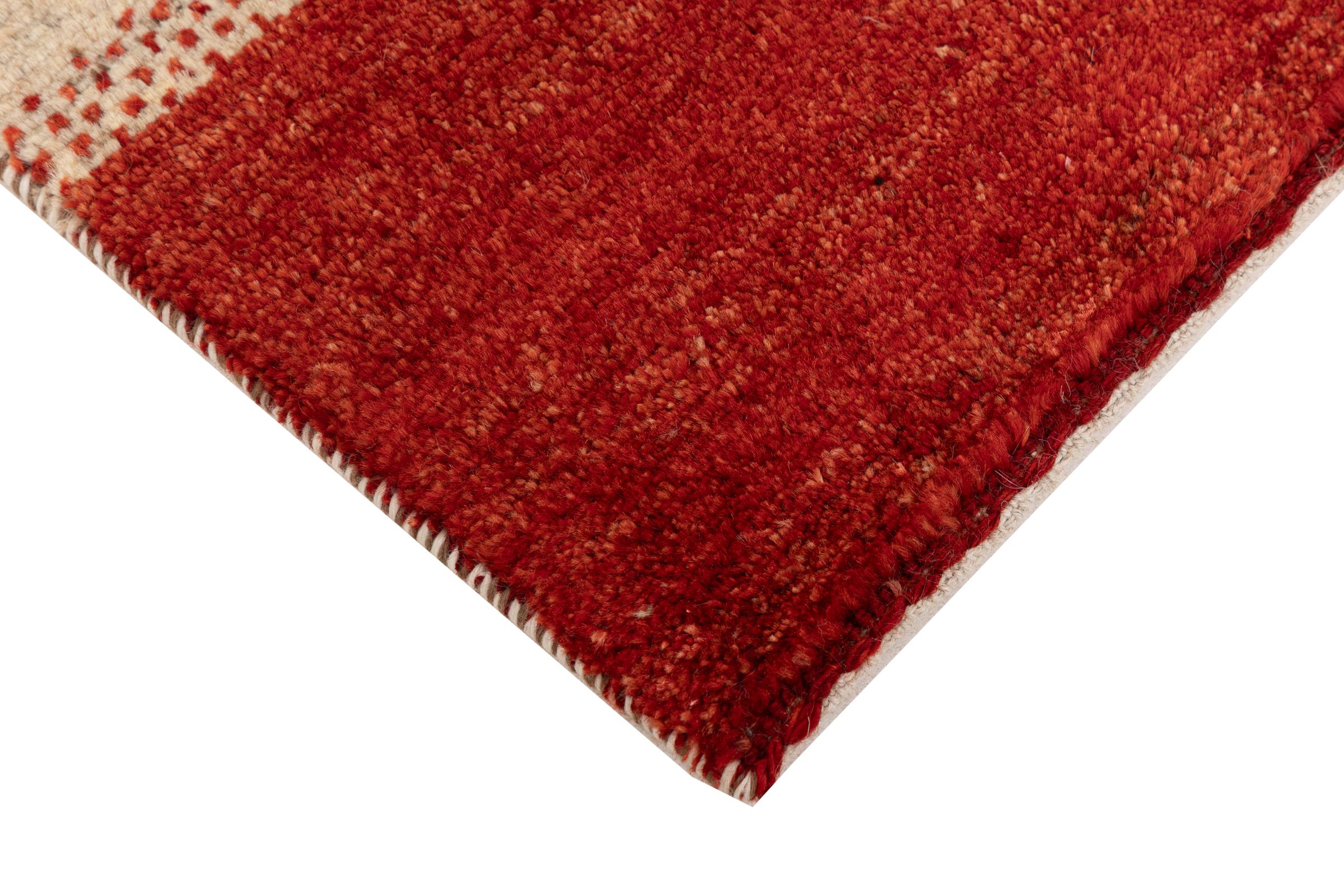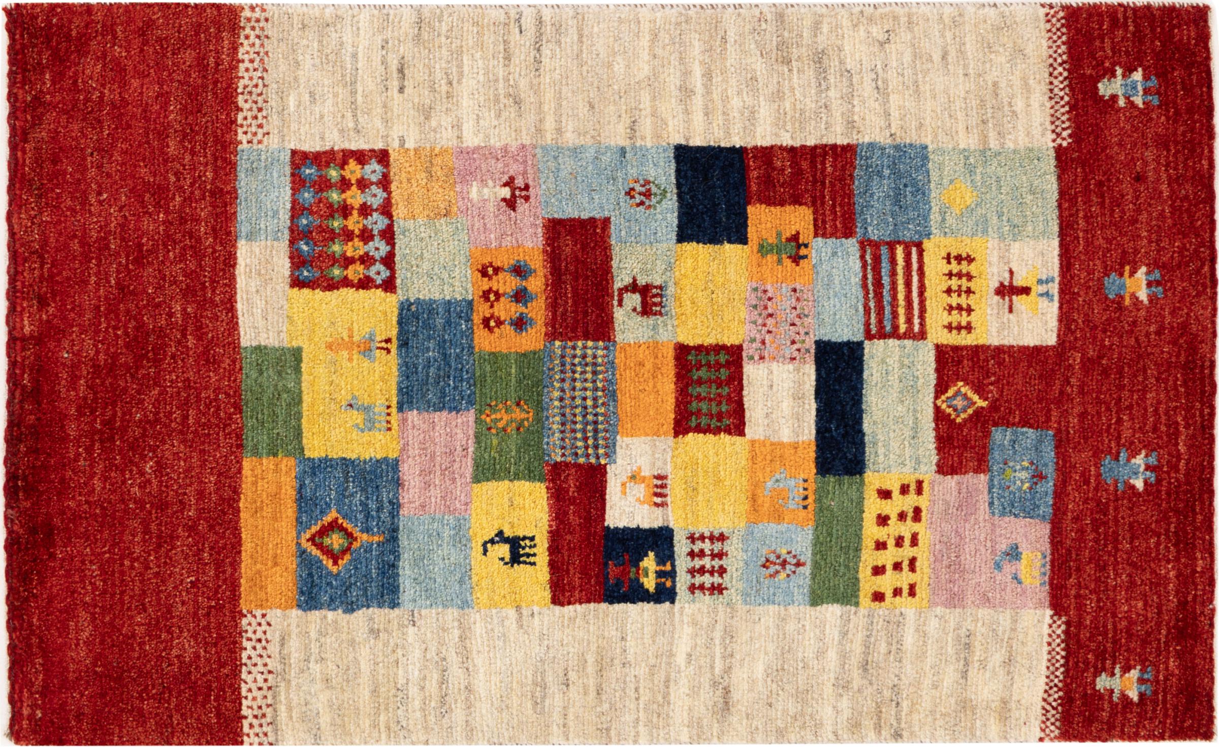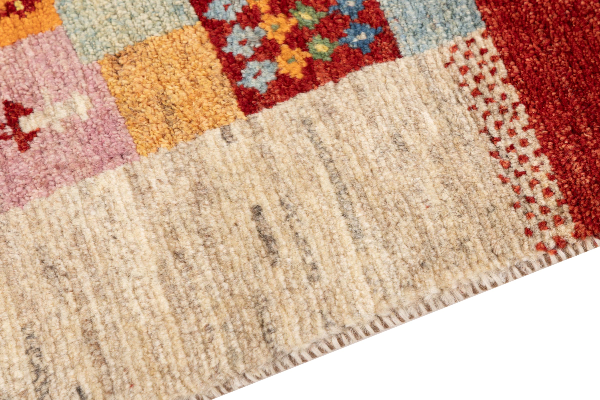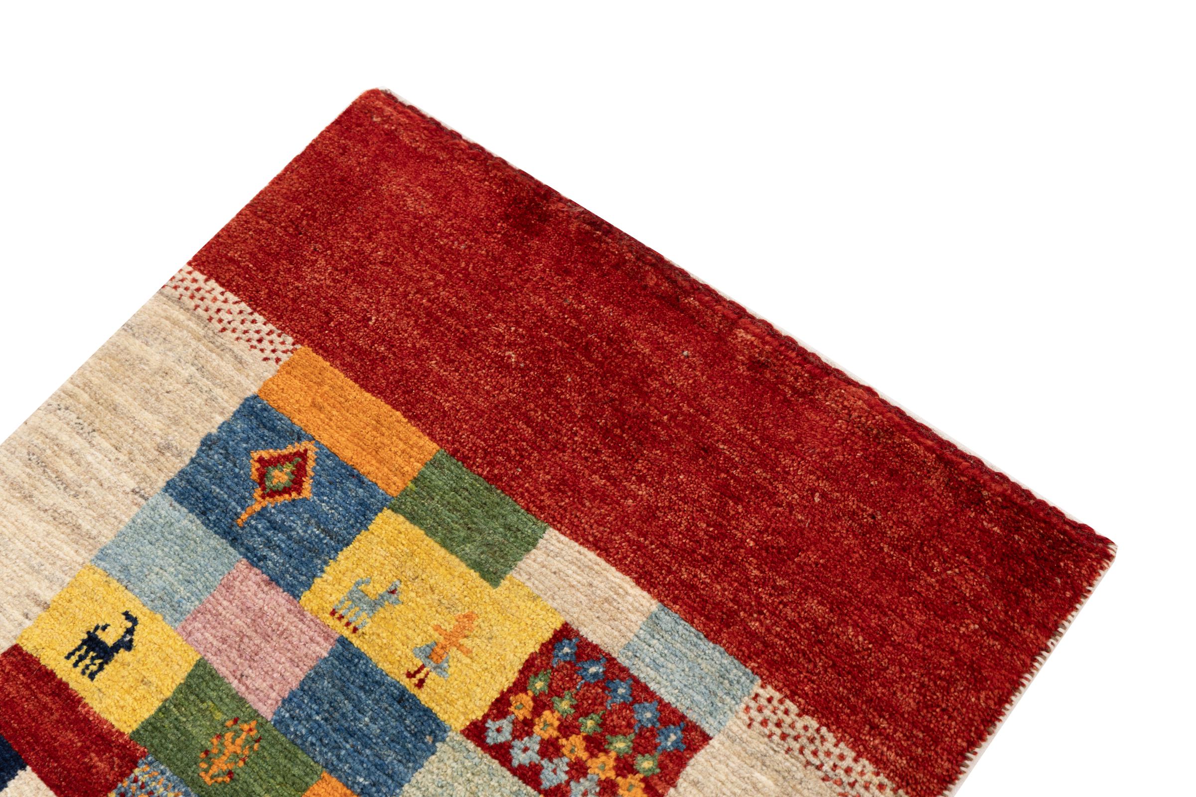 Ce tapis persan gabbeh est capable de séduire immédiatement n’importe qui grâce à sa haute qualité et à son robuste velours. Il a été fabriqué artisanalement par les nomades Ghasghai dans la région de Fars au sud de la Perse, à partir de la meilleure laine de mouton. Ils utilisent seulement des couleurs naturelles pour colorer la laine.