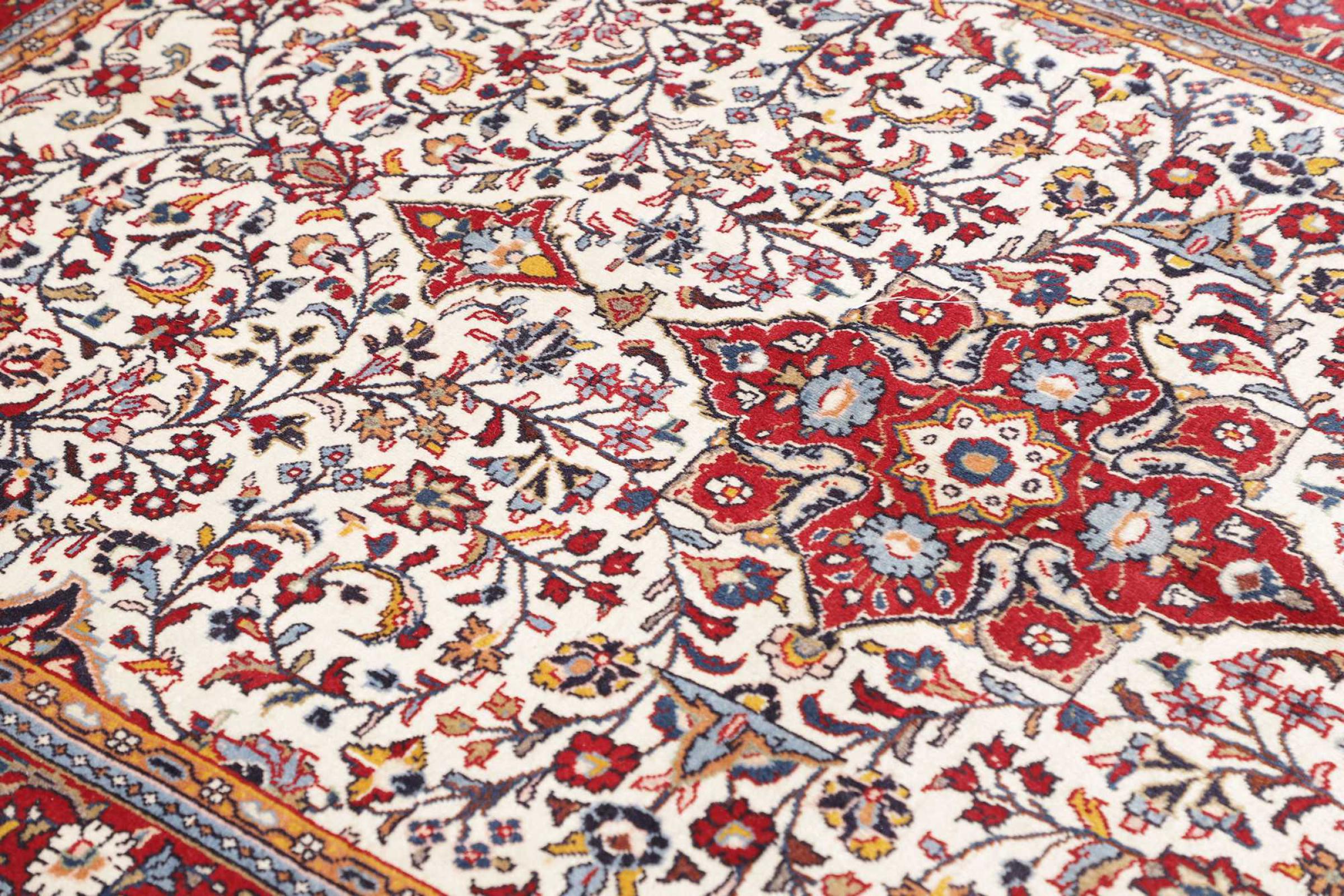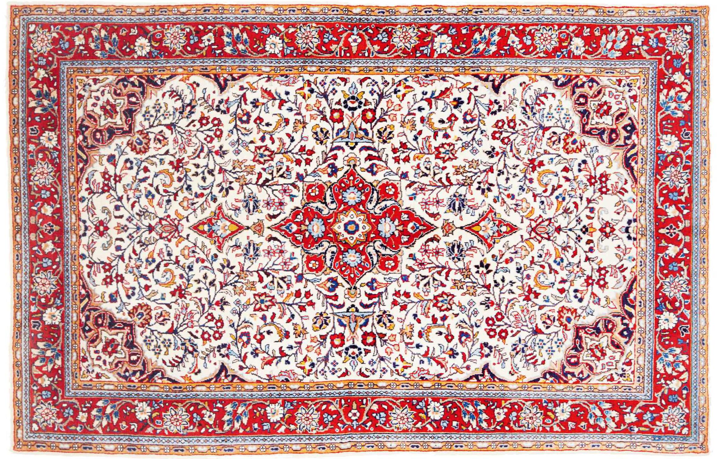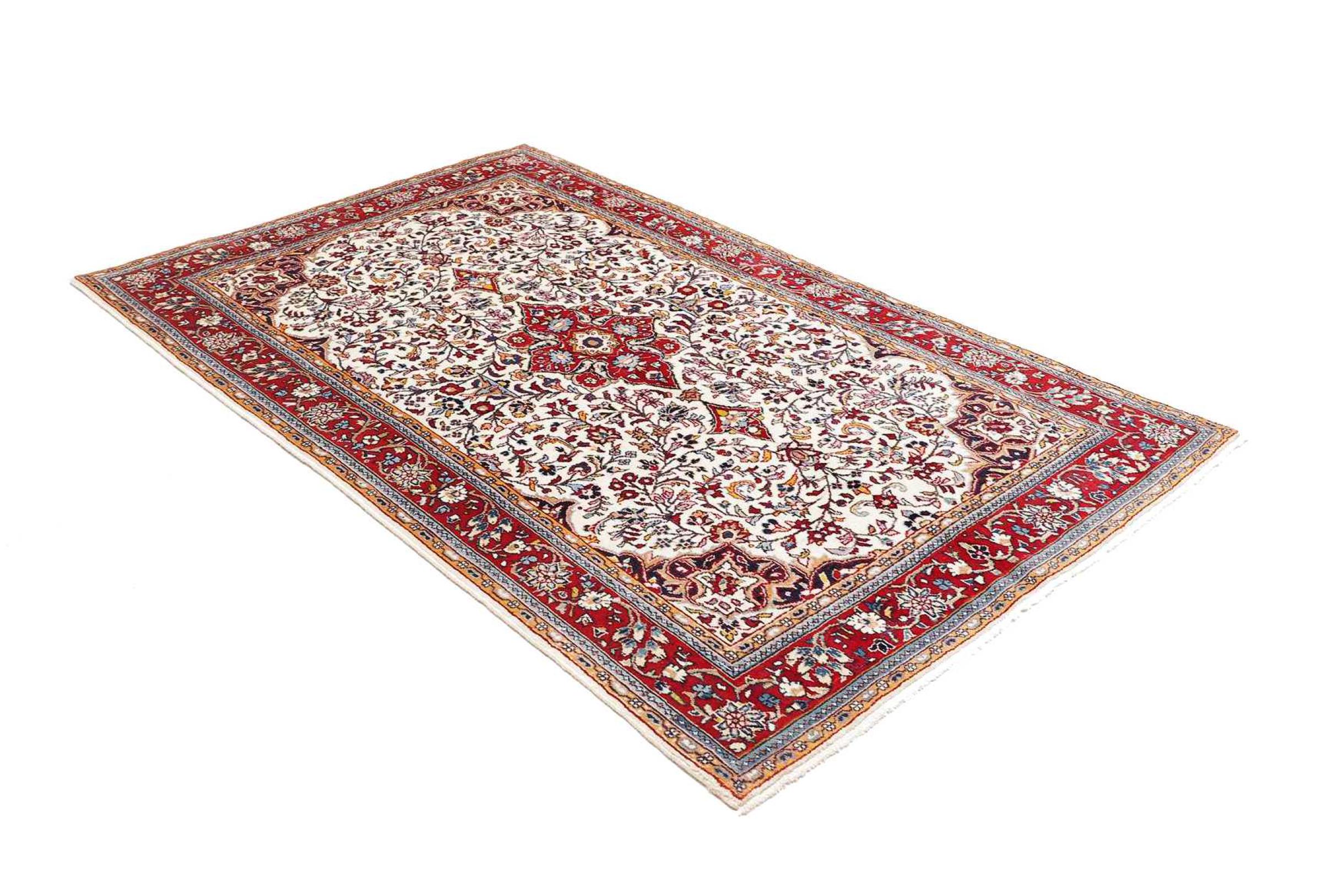 Réf. Article: 319202002758654 Taille: 203x129 cm Épaisseur: ap. 12 mm Densité de nouage: 128 000 - 160 000 / m² Fabrication: Noué à la main Velours: Laine filée à la main Chaîne: Coton Origine: Persie / Iran Âge: Nouveau Poids: ap. 10 kg Également connu sous Arak , Sarough, Sarouk, Saruk, Saroq, Sultanabad Nombre en stock: Unique - Seulement 1 en stock