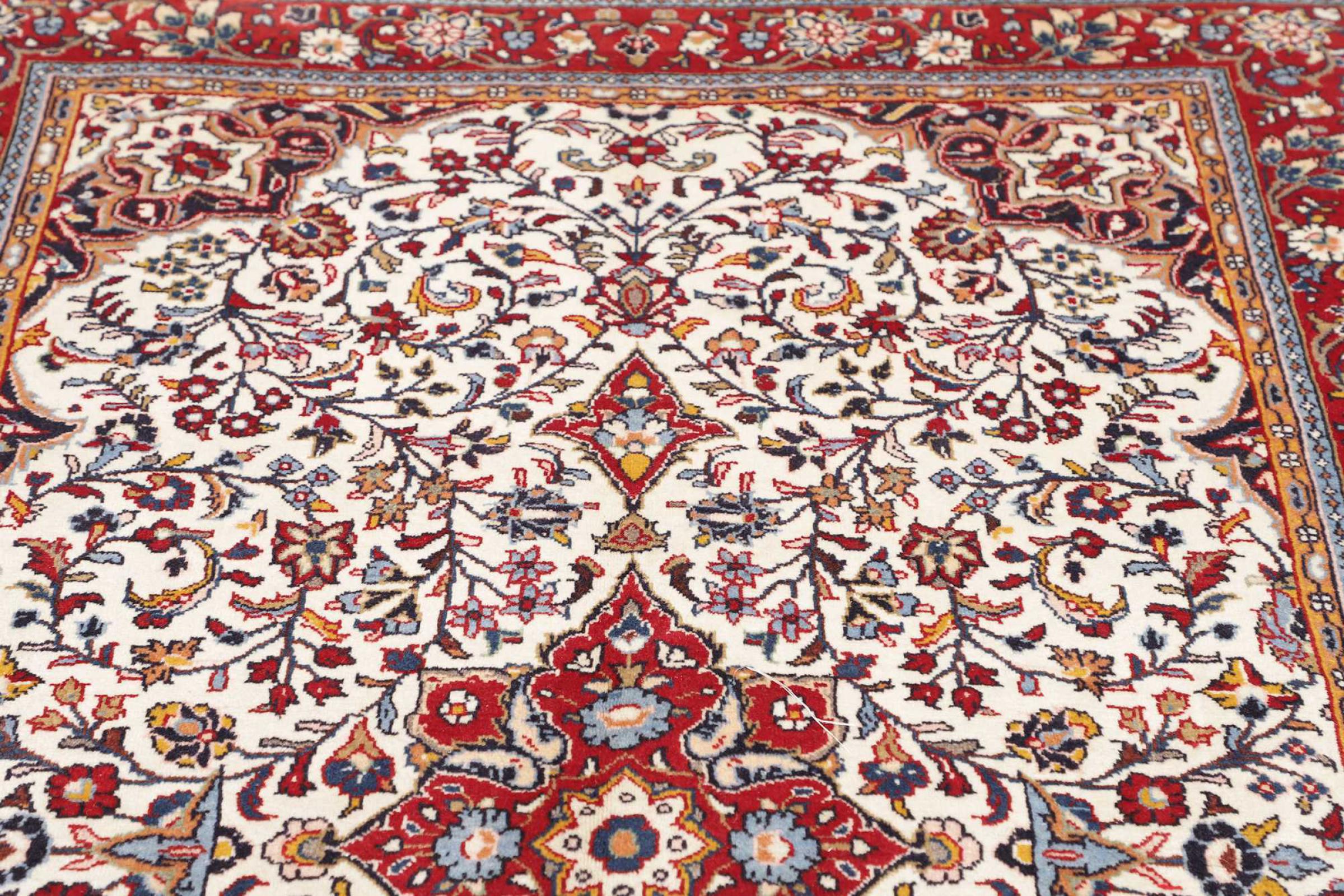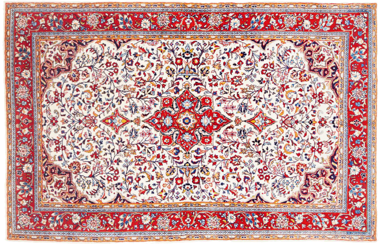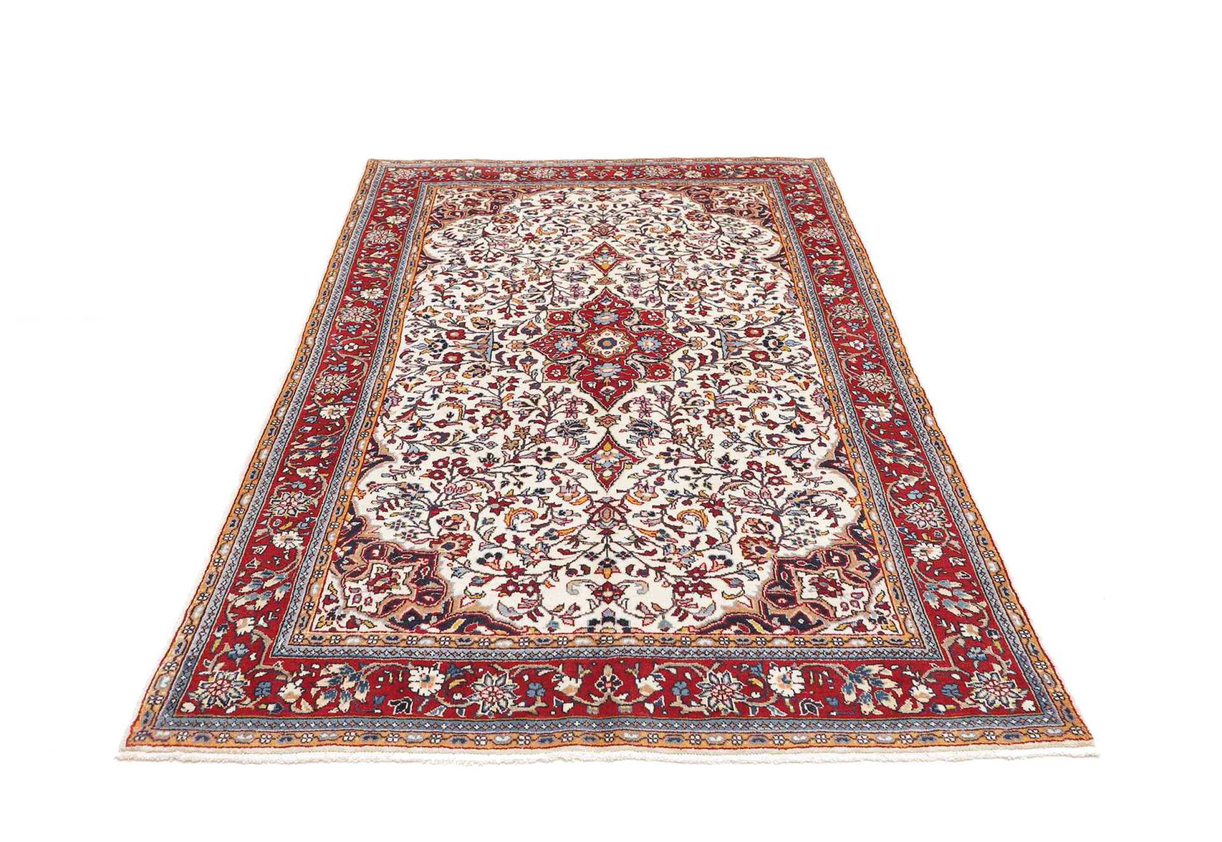 Réf. Article: 319202002758654 Taille: 203x129 cm Épaisseur: ap. 12 mm Densité de nouage: 128 000 - 160 000 / m² Fabrication: Noué à la main Velours: Laine filée à la main Chaîne: Coton Origine: Persie / Iran Âge: Nouveau Poids: ap. 10 kg Également connu sous Arak , Sarough, Sarouk, Saruk, Saroq, Sultanabad Nombre en stock: Unique - Seulement 1 en stock