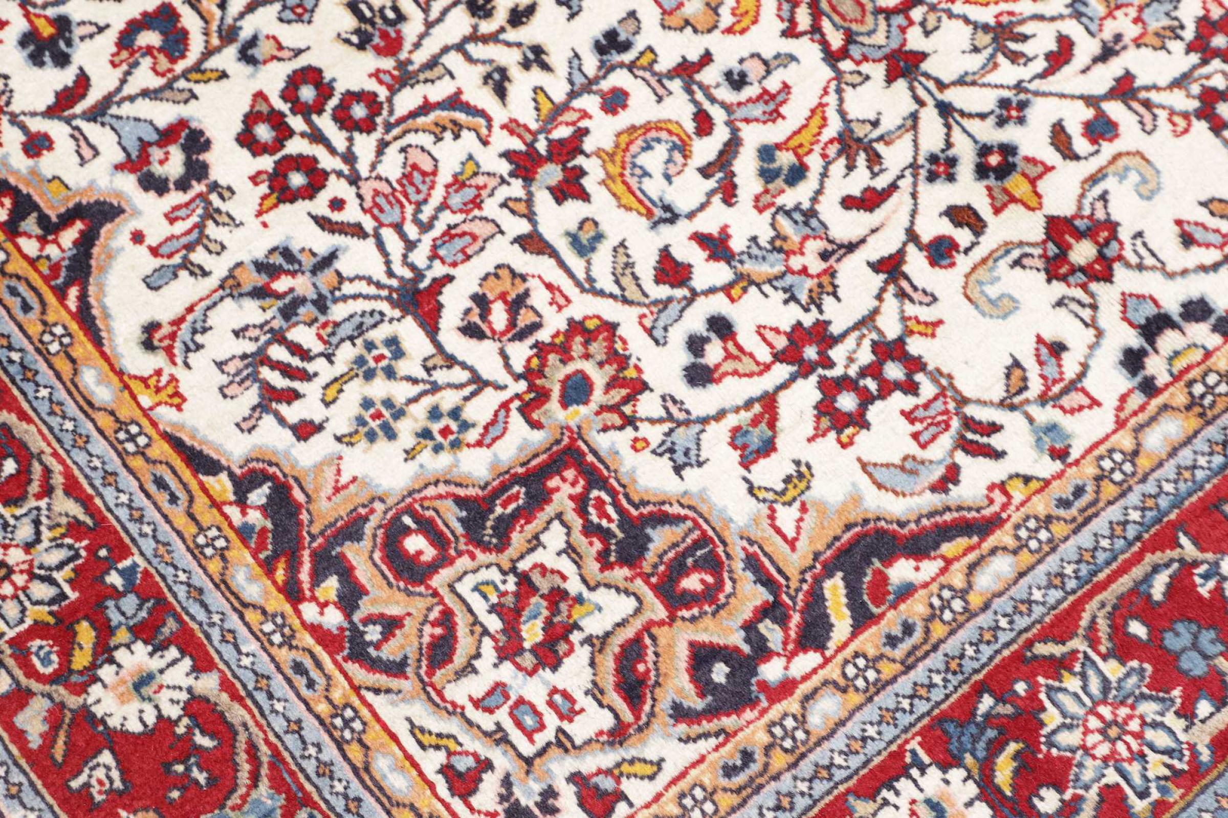 Ce tapis est fait de laine de mouton filée à la main de la plus haute qualité. En Iran (ancienne Perse), en Afghanistan et au Pakistan notamment, la laine est encore filée à la main avant que ne commence le nouage proprement dit du tapis. La laine a fait ses preuves en tant que matière naturelle et extrêmement résistante au fil des siècles. Il a notamment des propriétés antisalissures et d'isolation thermique. En même temps, la laine est incomparablement douce et a un éclat naturel.
