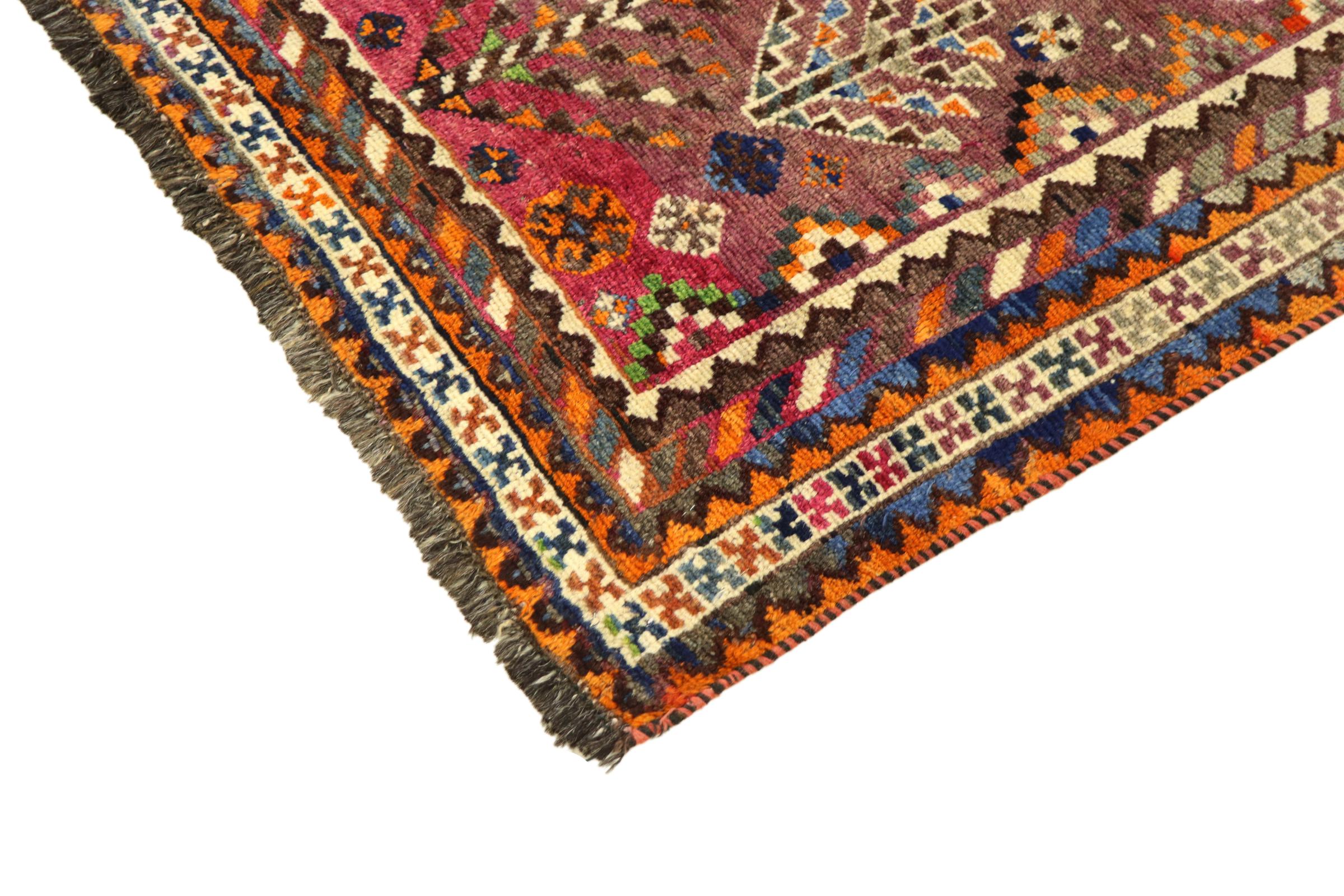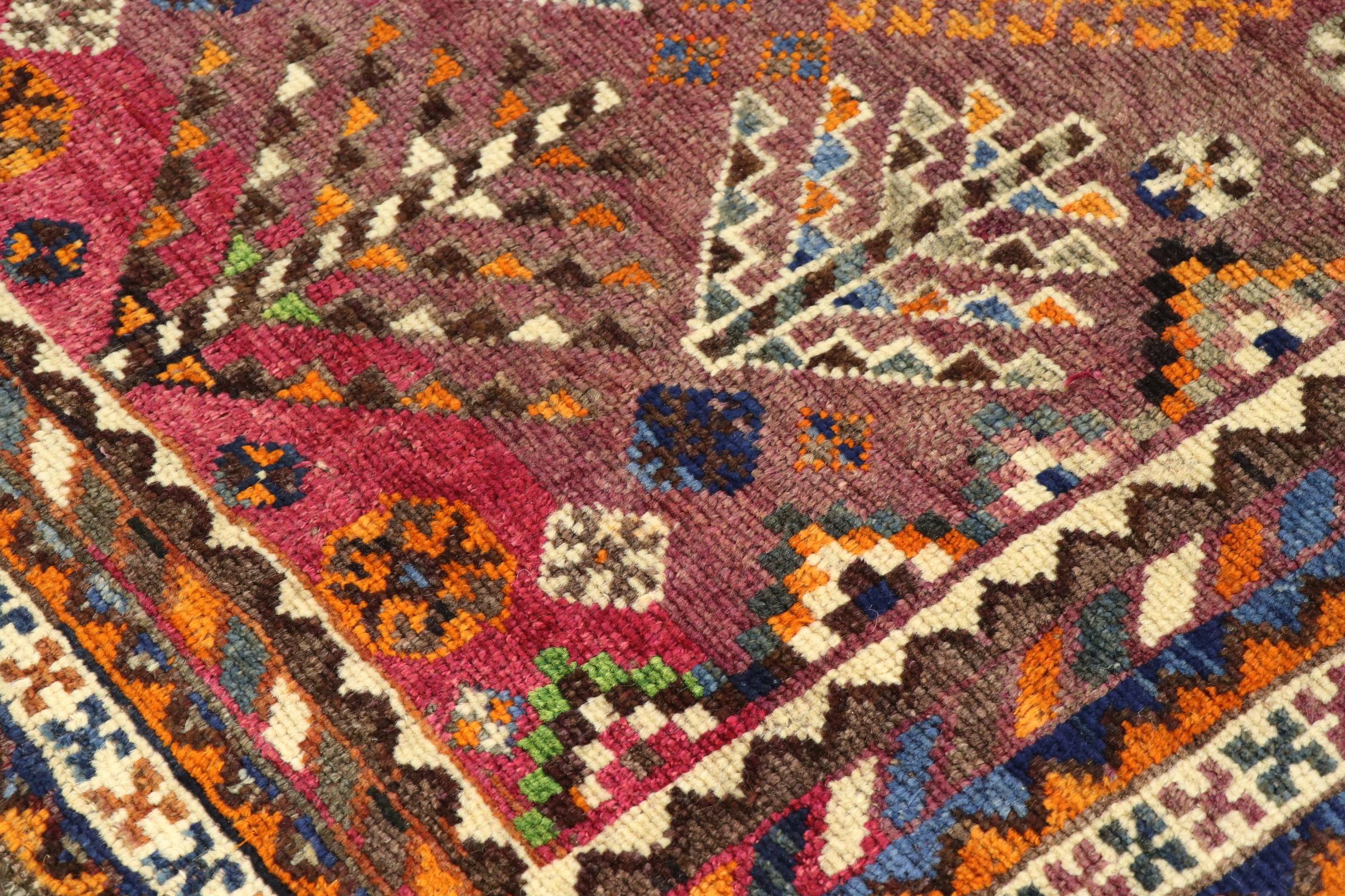 Ce tapis appartient aux tapis de village et de nomade d'Iran, anciennement la Perse. Ce type de tapis est noué à la main dans les petites villes et les villages selon l'ancienne tradition. Même les nomades nouent encore des tapis persans en plein air. Les tapis sont noués sans schéma et entièrement à partir de la tête. Ils se caractérisent par des ornements classiques, qui sont disposés en motifs droits et géométriques. Grâce à leur origine culturelle et traditionnelle, ces tapis ont un caractère unique qui incarne la Perse ancienne.