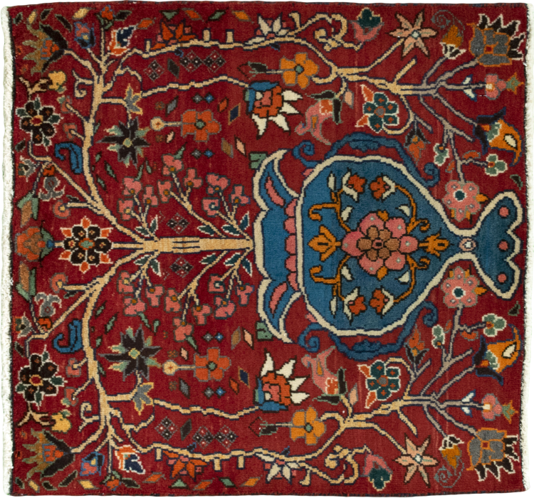 Réf. Article: 286015003587987 Taille: 69x69 cm Épaisseur: ap. 10 mm Densité de nouage: 96 000 - 120 000 / m² Fabrication: Noué à la main Velours: Laine filée à la main Chaîne: Coton Origine: Persie / Iran Âge: Nouveau Poids: ap. 2 kg Nombre en stock: Unique - Seulement 1 en stock