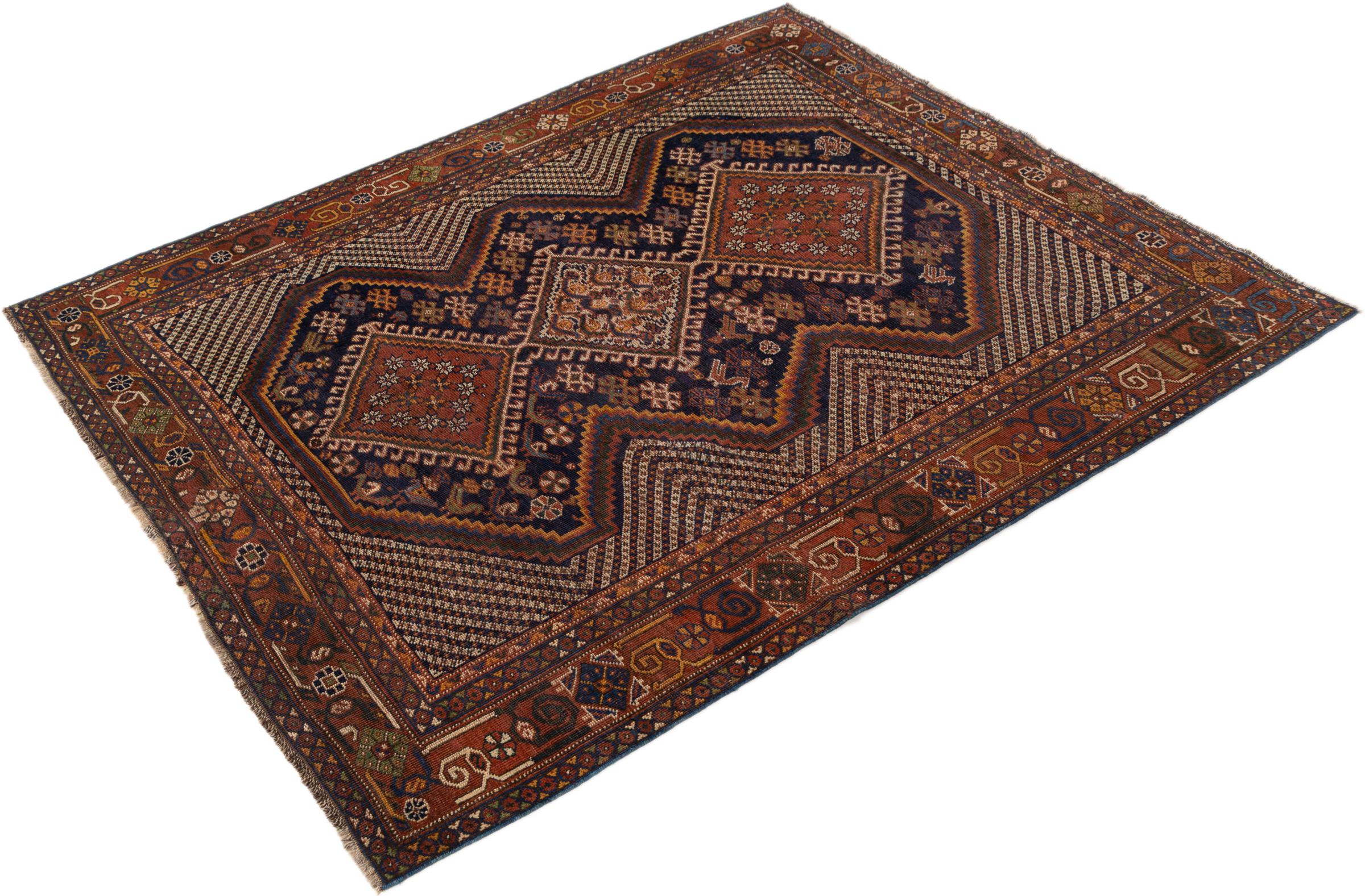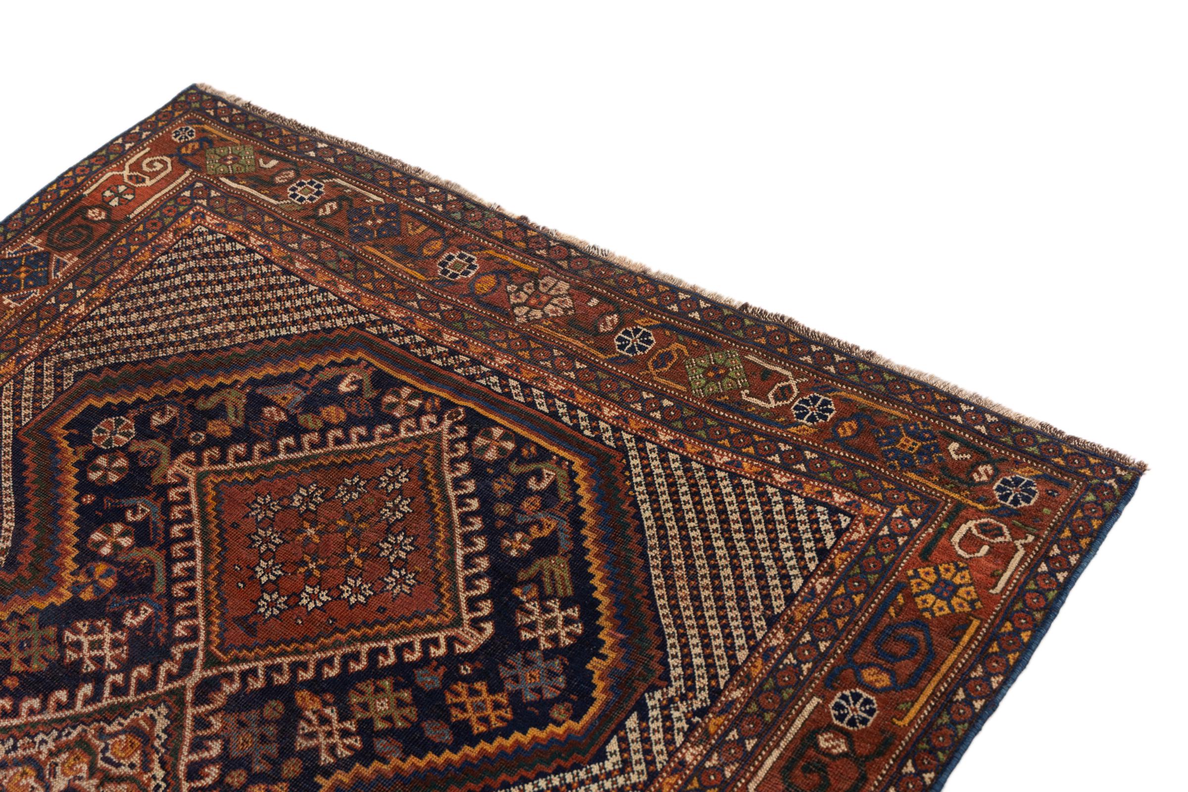 Ce tapis appartient aux tapis de village et de nomade d'Iran, anciennement la Perse. Ce type de tapis est noué à la main dans les petites villes et les villages selon l'ancienne tradition. Même les nomades nouent encore des tapis persans en plein air. Les tapis sont noués sans schéma et entièrement à partir de la tête. Ils se caractérisent par des ornements classiques, qui sont disposés en motifs droits et géométriques. Grâce à leur origine culturelle et traditionnelle, ces tapis ont un caractère unique qui incarne la Perse ancienne.