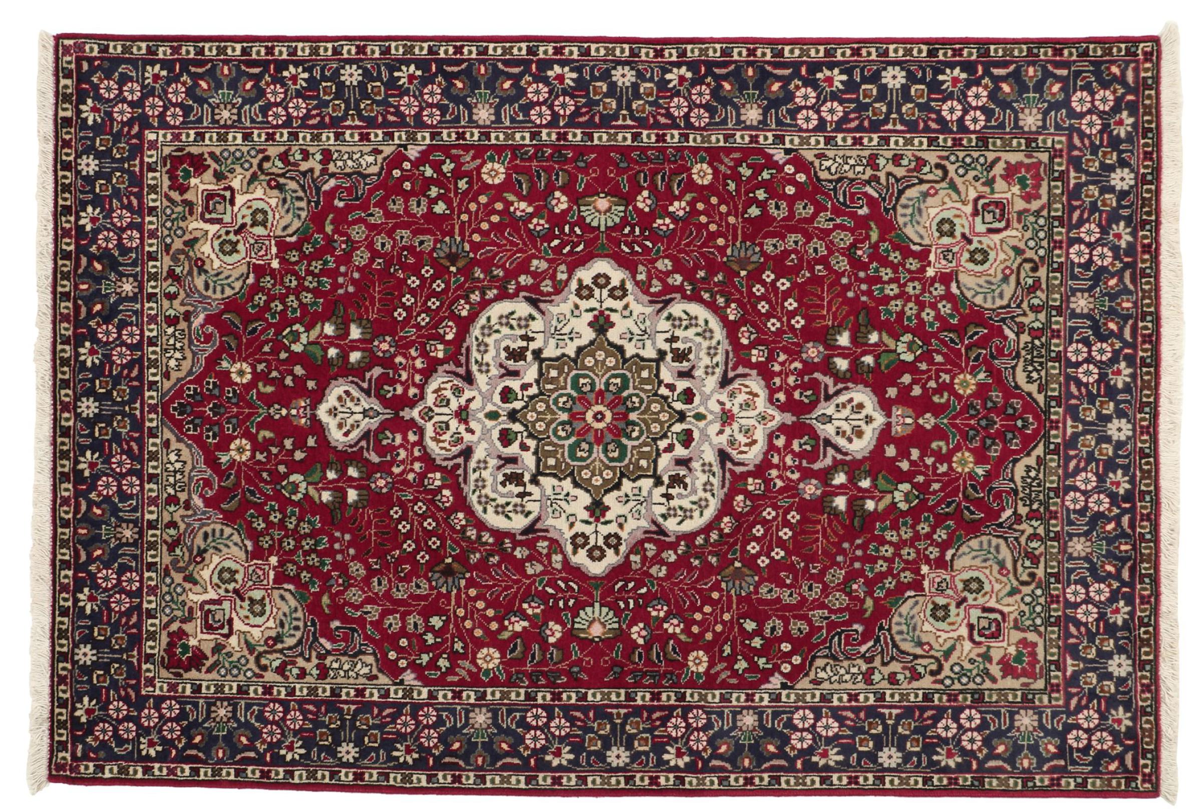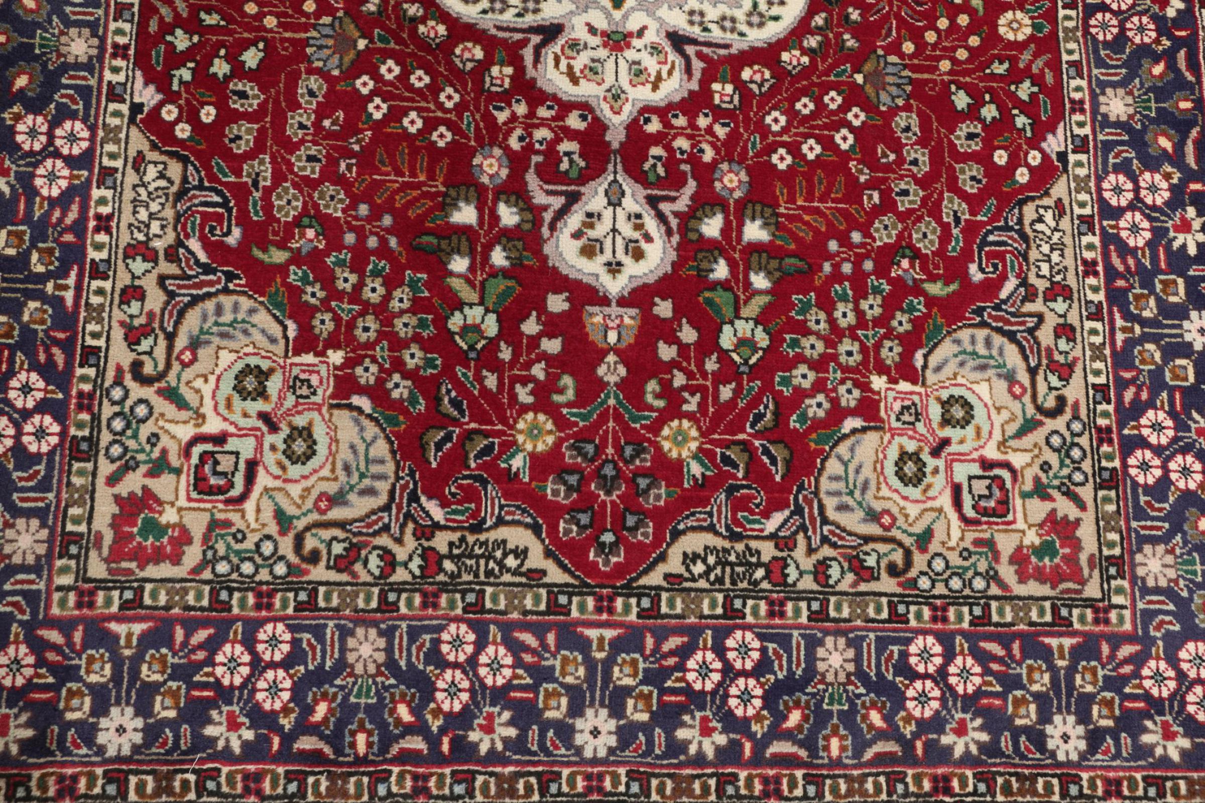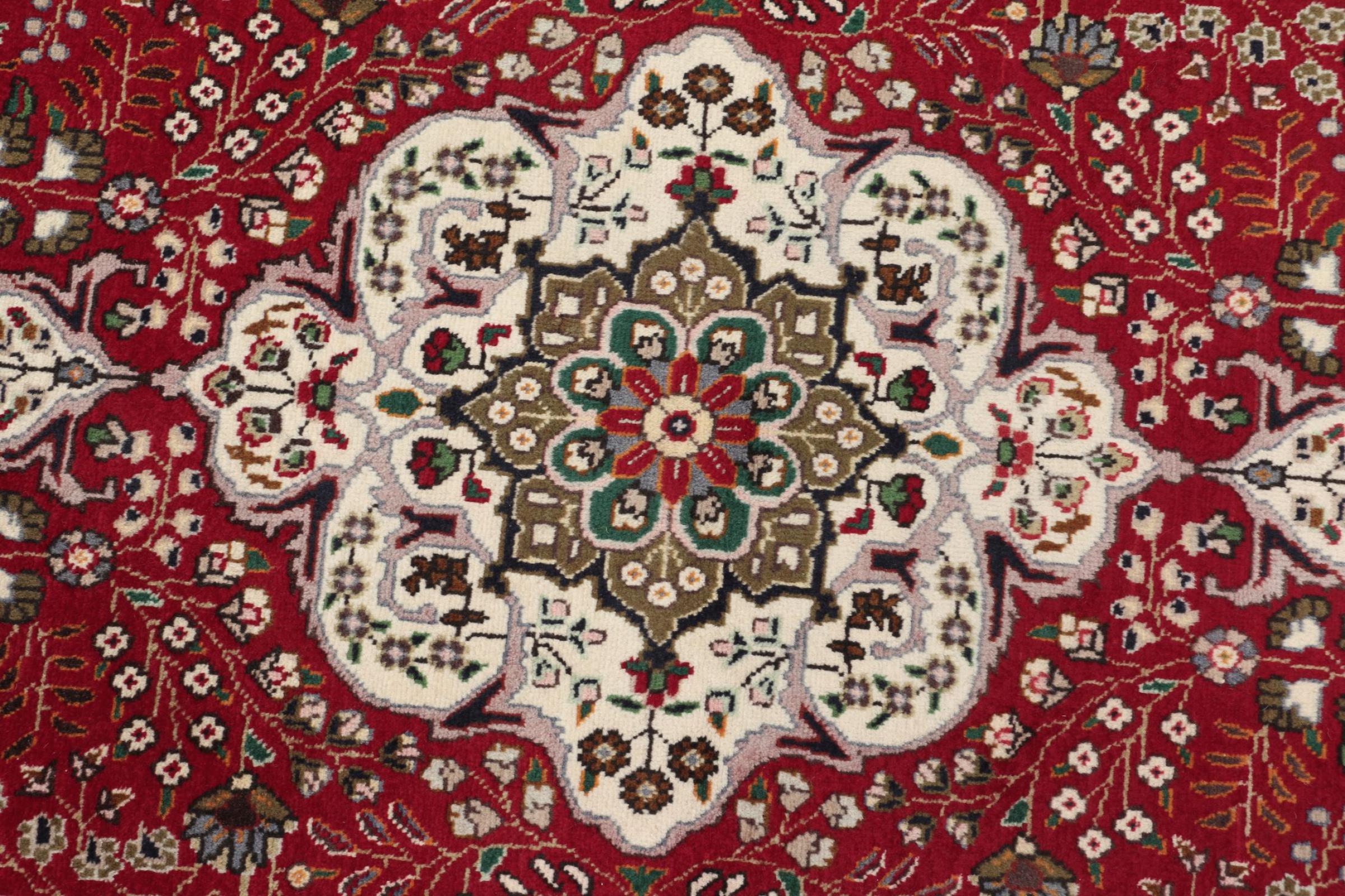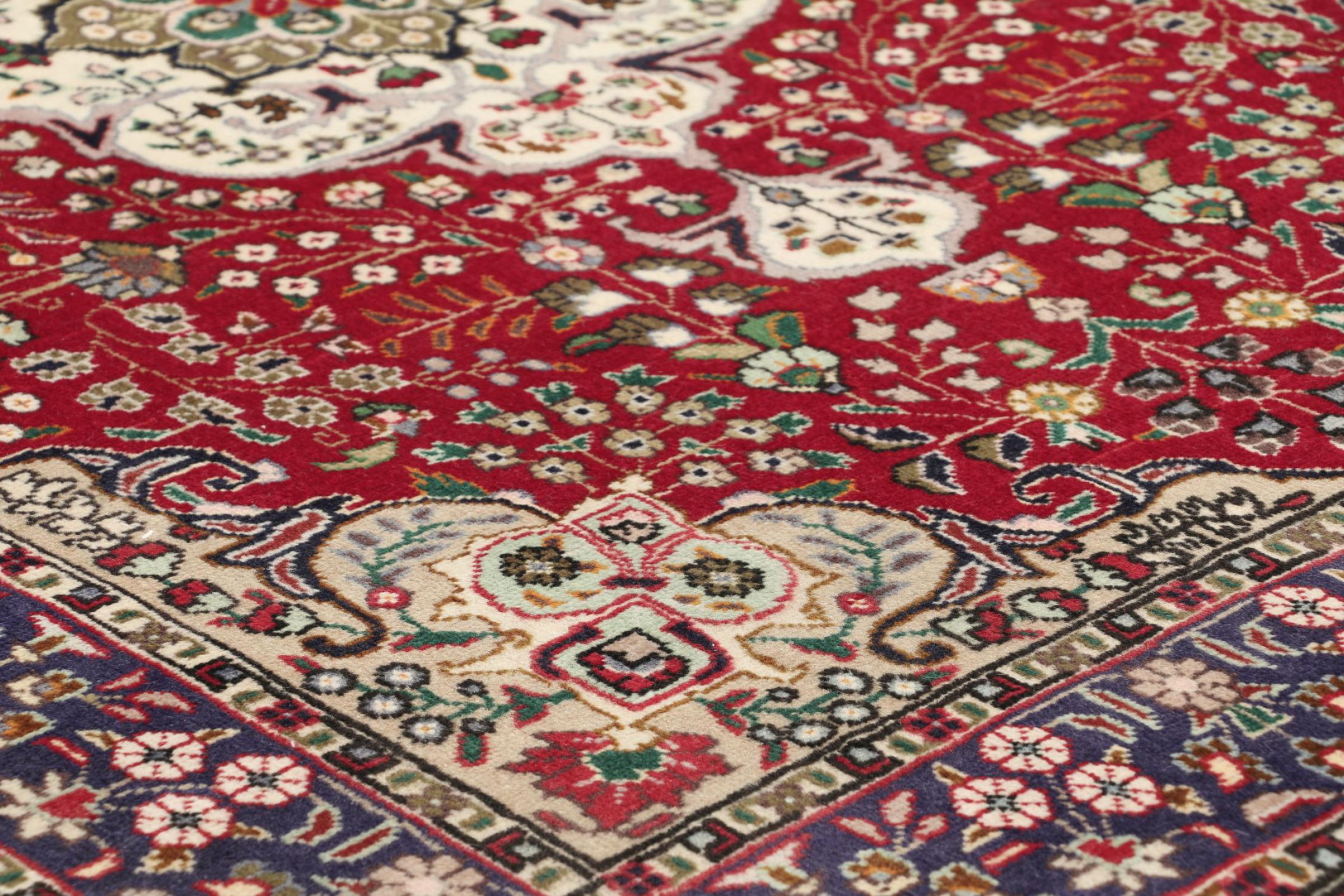 Tabriz est l'une des plus grandes villes d'Iran et l'une des plus célèbres provinces de tapis persans. Les tapis de Tabriz sont souvent indiqués par un numéro "Raj". Plus ce chiffre est élevé, plus le tapis est fin, car il indique la densité des nœuds. Il existe des tapis persans de Tabriz de classe moyenne (40 Raj) et de classe exceptionnellement fine (80 Raj).