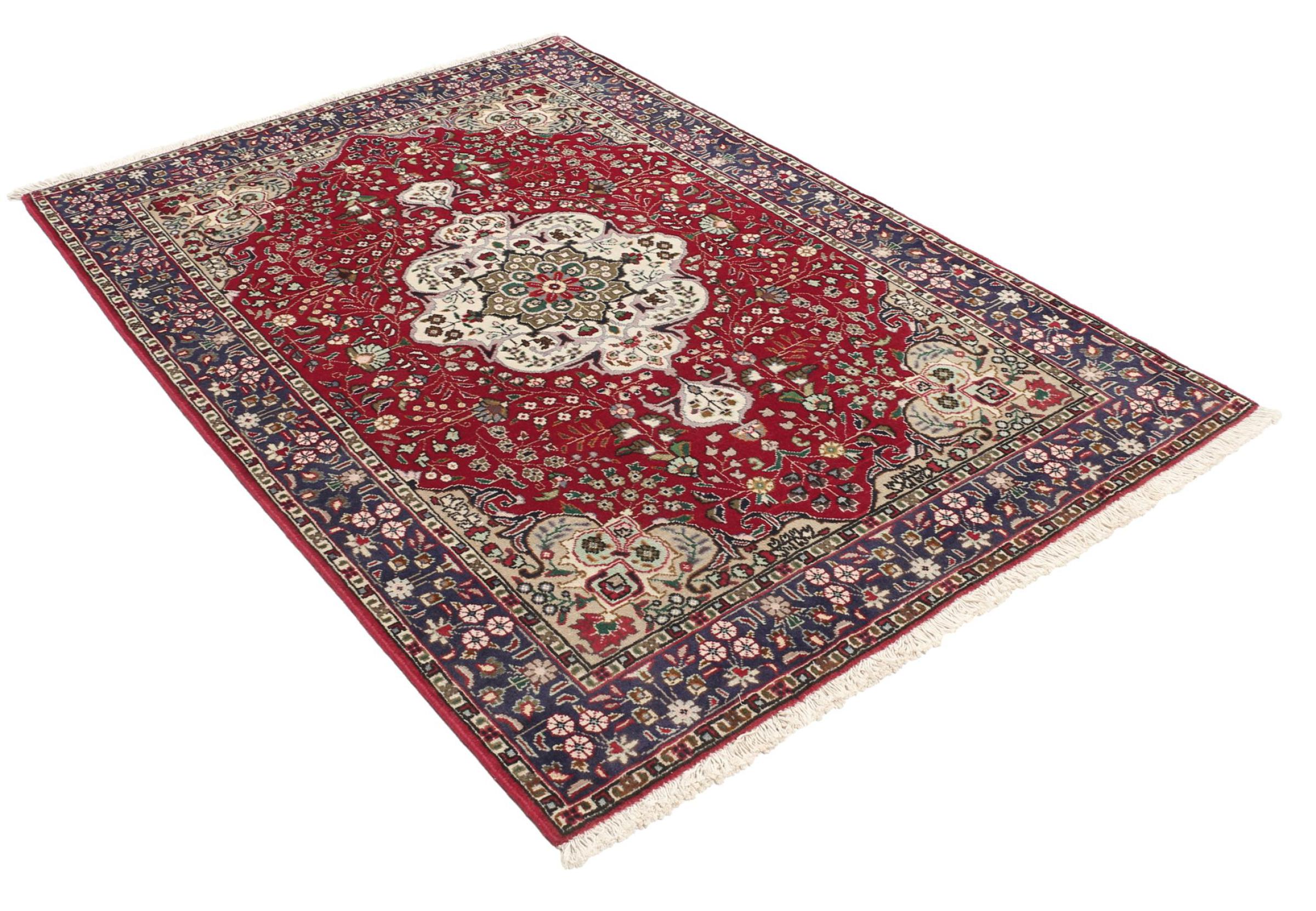Réf. Article: 309502002226410 Taille: 151x104 cm Épaisseur: ap. 10 mm Densité de nouage: 128 000 - 160 000 / m² Fabrication: Noué à la main Velours: Laine filée à la main Chaîne: Coton Origine: Persie / Iran Âge: Nouveau Poids: ap. 5 kg Également connu sous Tabris, Tabriz, Tebris, Tebriz, Täbris, Village Nombre en stock: Unique - Seulement 1 en stock