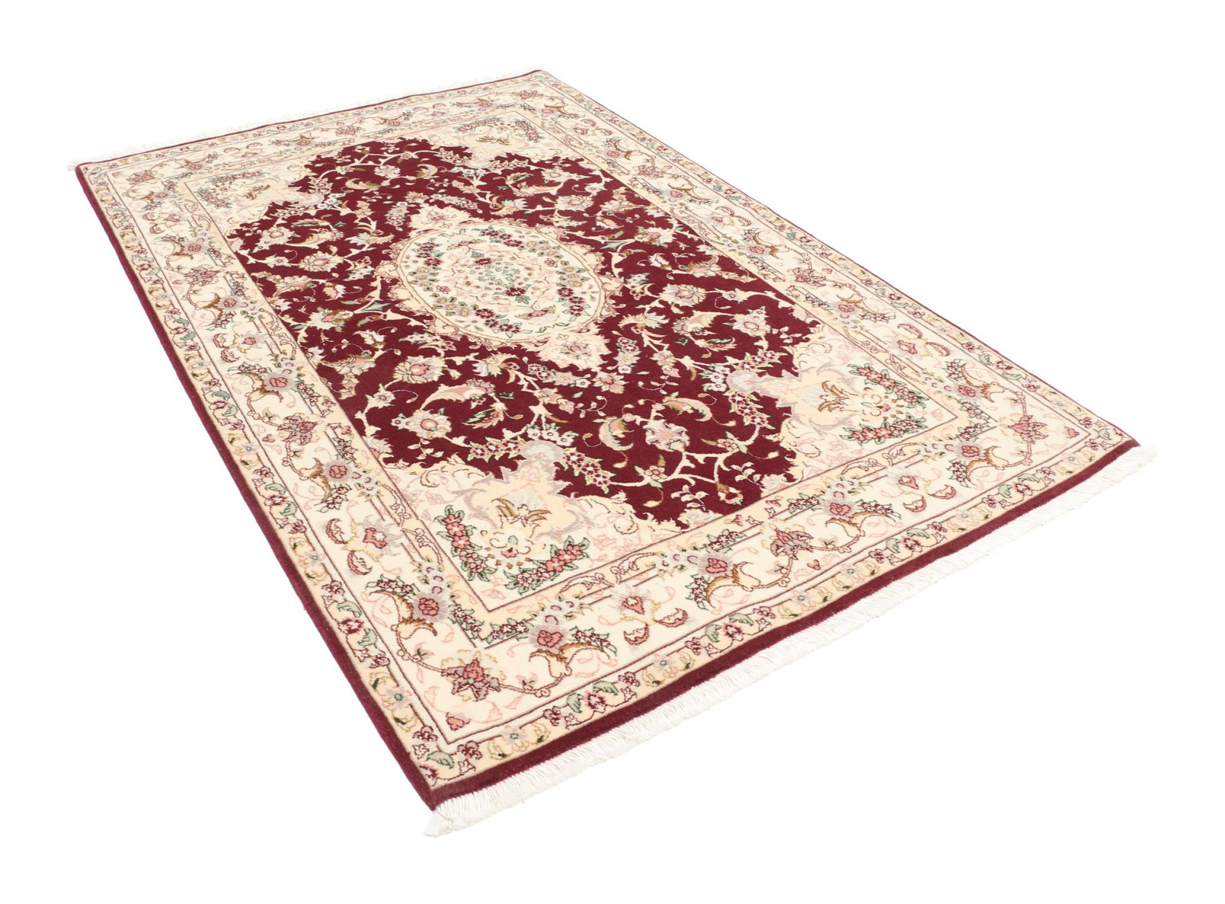 Réf. Article: 309098007852066 Taille: 159x101 cm Épaisseur: ap. 7 mm Densité de nouage: 440 000 - 490 000 / m² Fabrication: Noué à la main Velours: Laine avec de la soie Chaîne: Coton Origine: Persie / Iran Âge: Nouveau Poids: ap. 5 kg Également connu sous Tabriz, Tabris, Täbris, Tebriz, Tebris, 40Raj, 50Raj Nombre en stock: Unique - Seulement 1 en stock