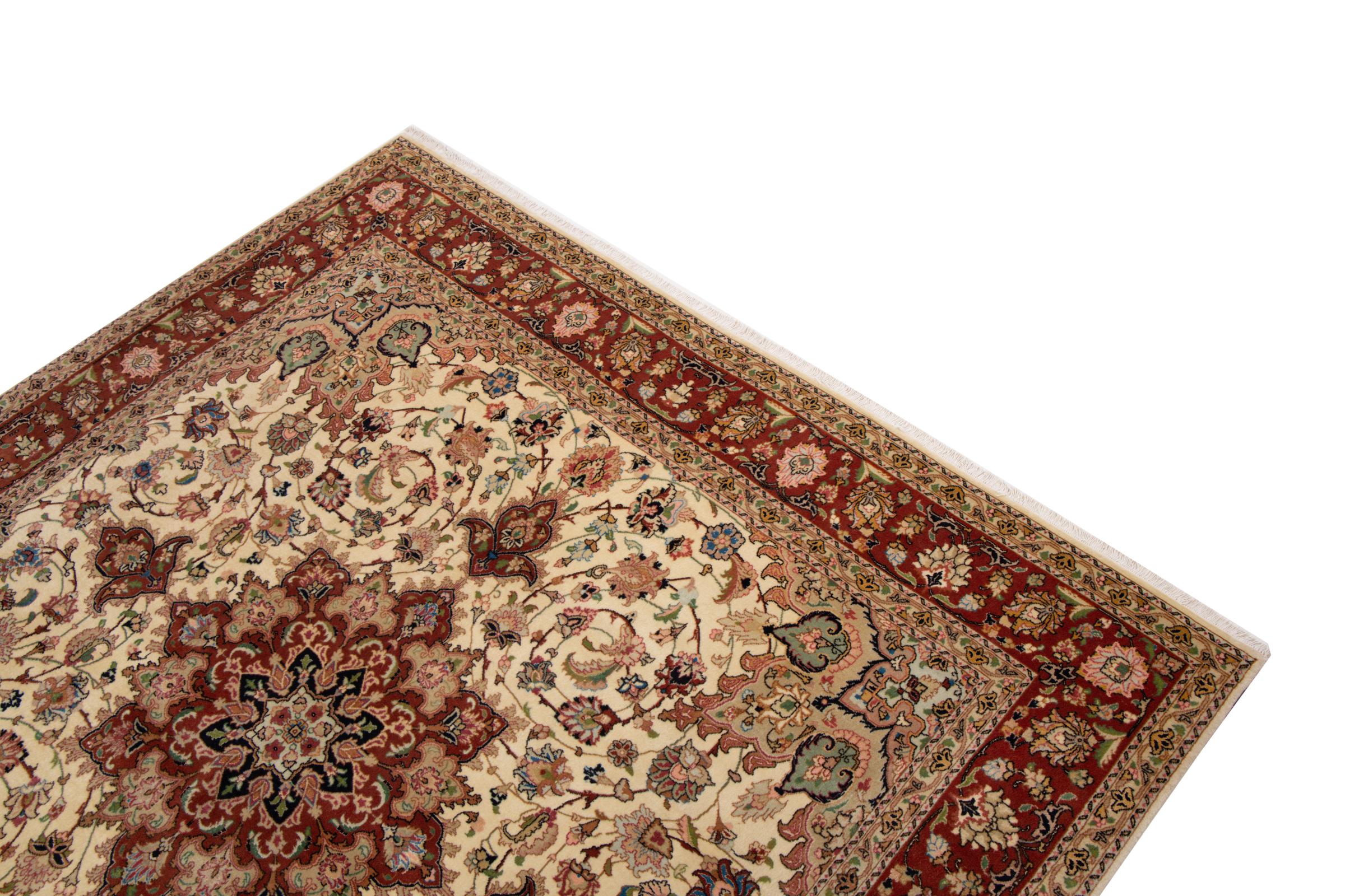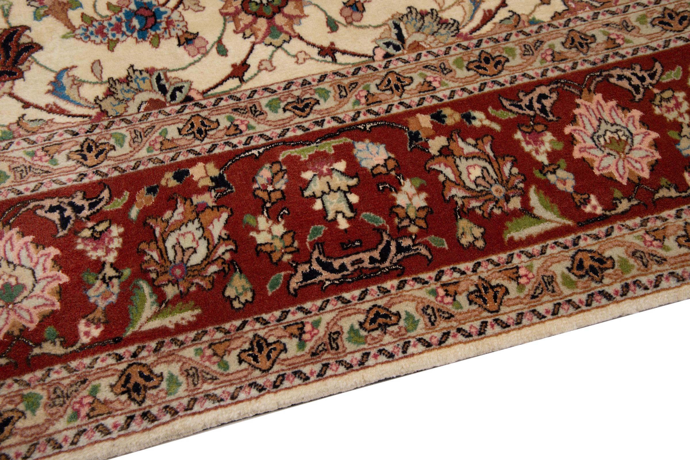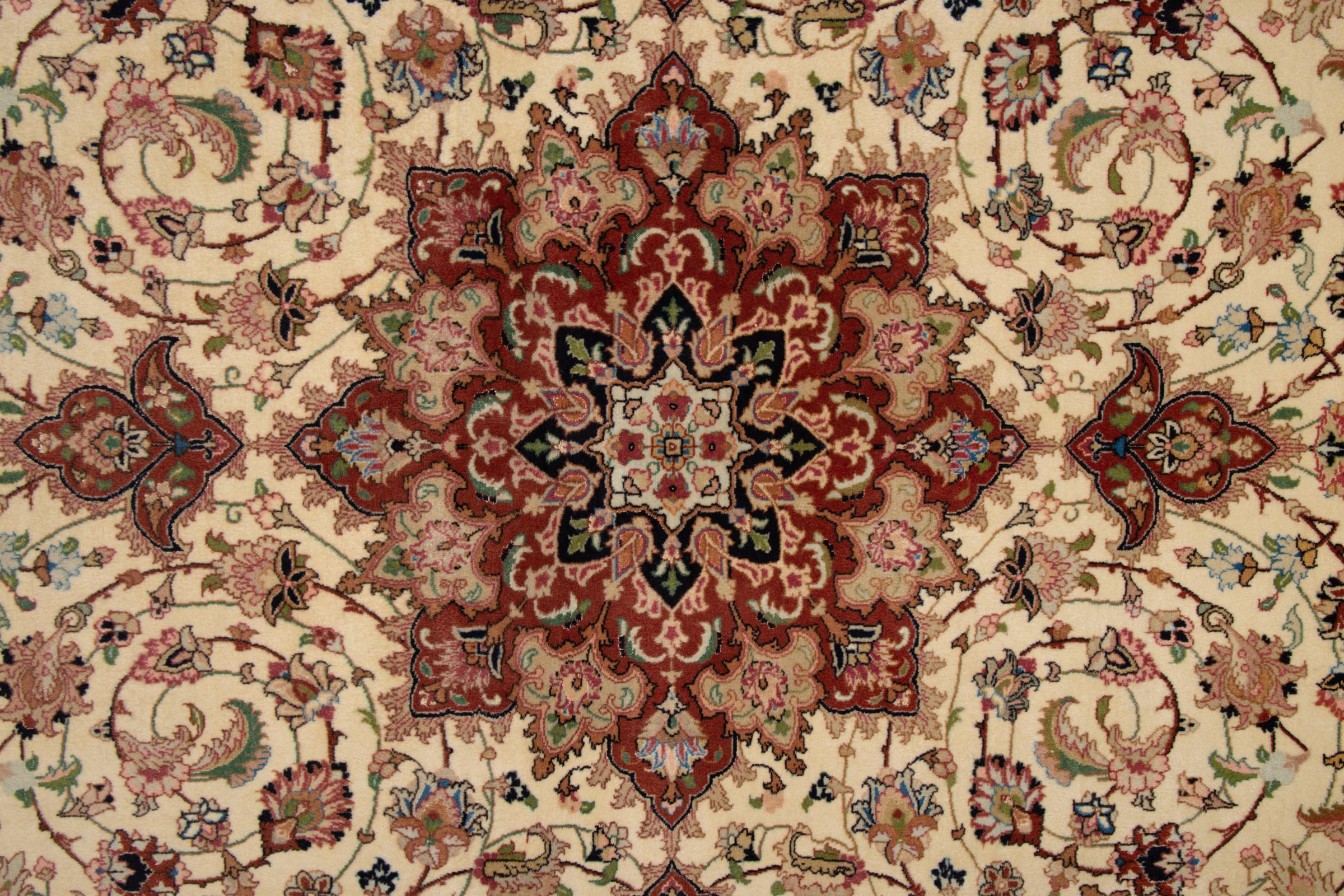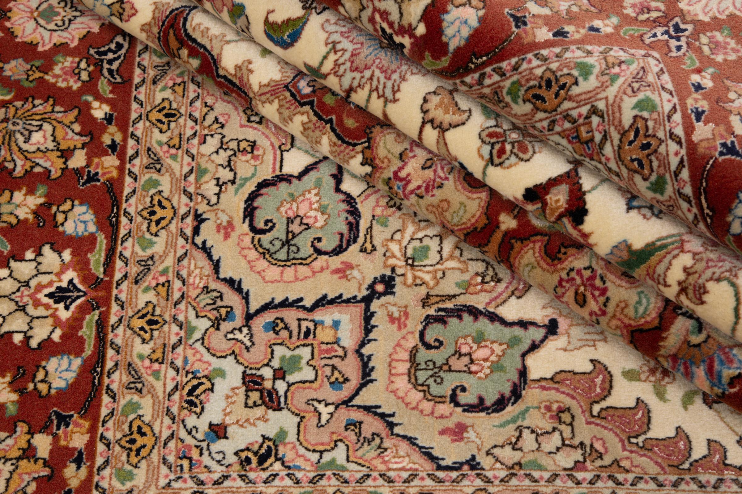 Tabriz est l'une des plus grandes villes d'Iran et l'une des plus célèbres provinces de tapis persans. Les tapis de Tabriz sont souvent indiqués par un numéro "Raj". Plus ce chiffre est élevé, plus le tapis est fin, car il indique la densité des nœuds. Il existe des tapis persans de Tabriz de classe moyenne (40 Raj) et de classe exceptionnellement fine (80 Raj).