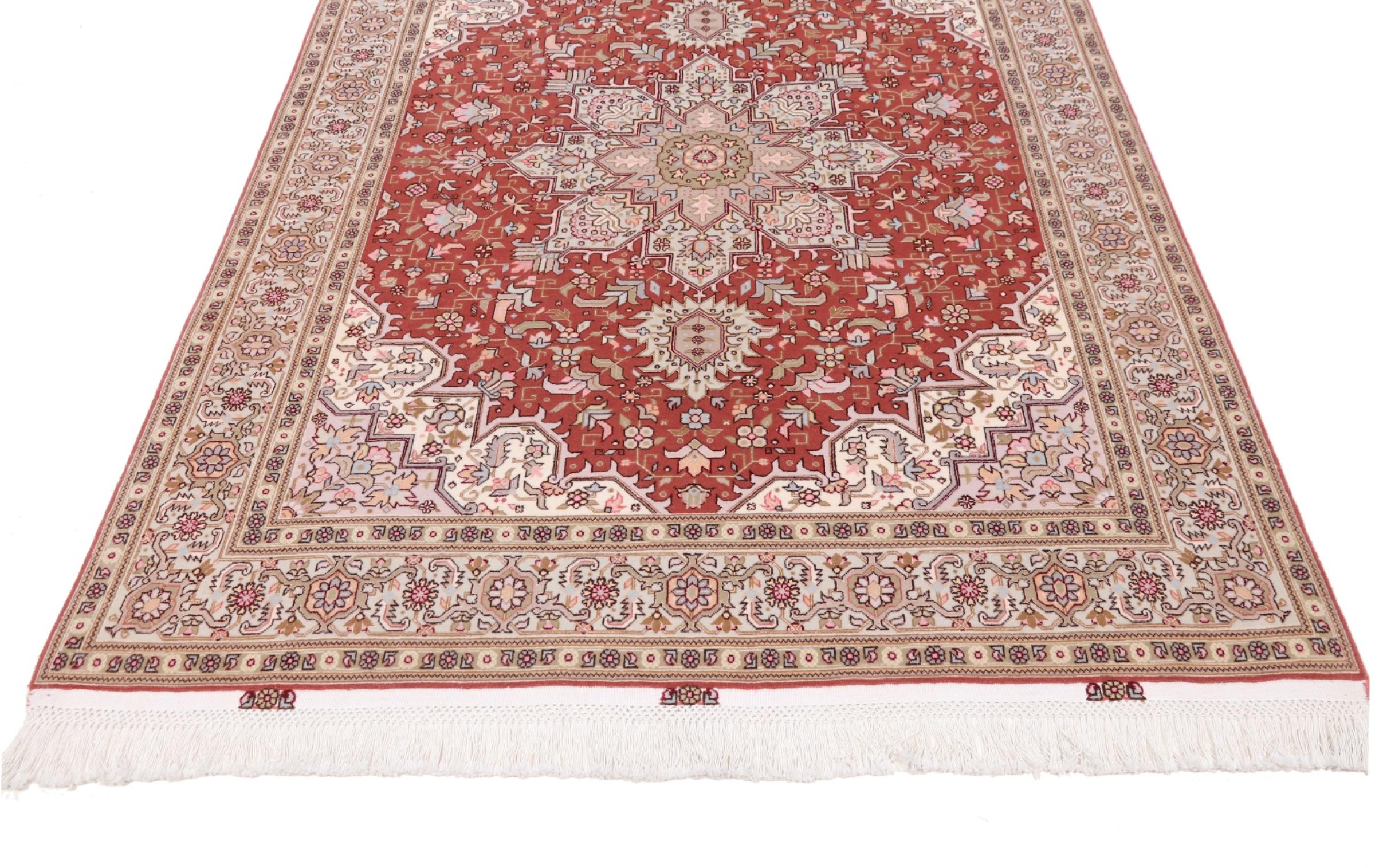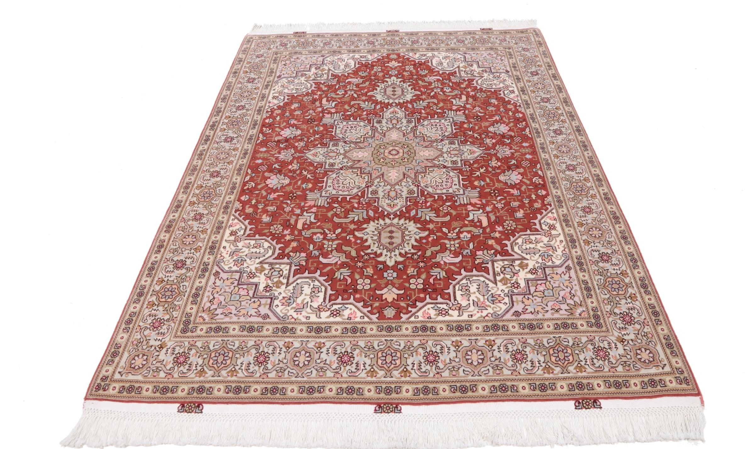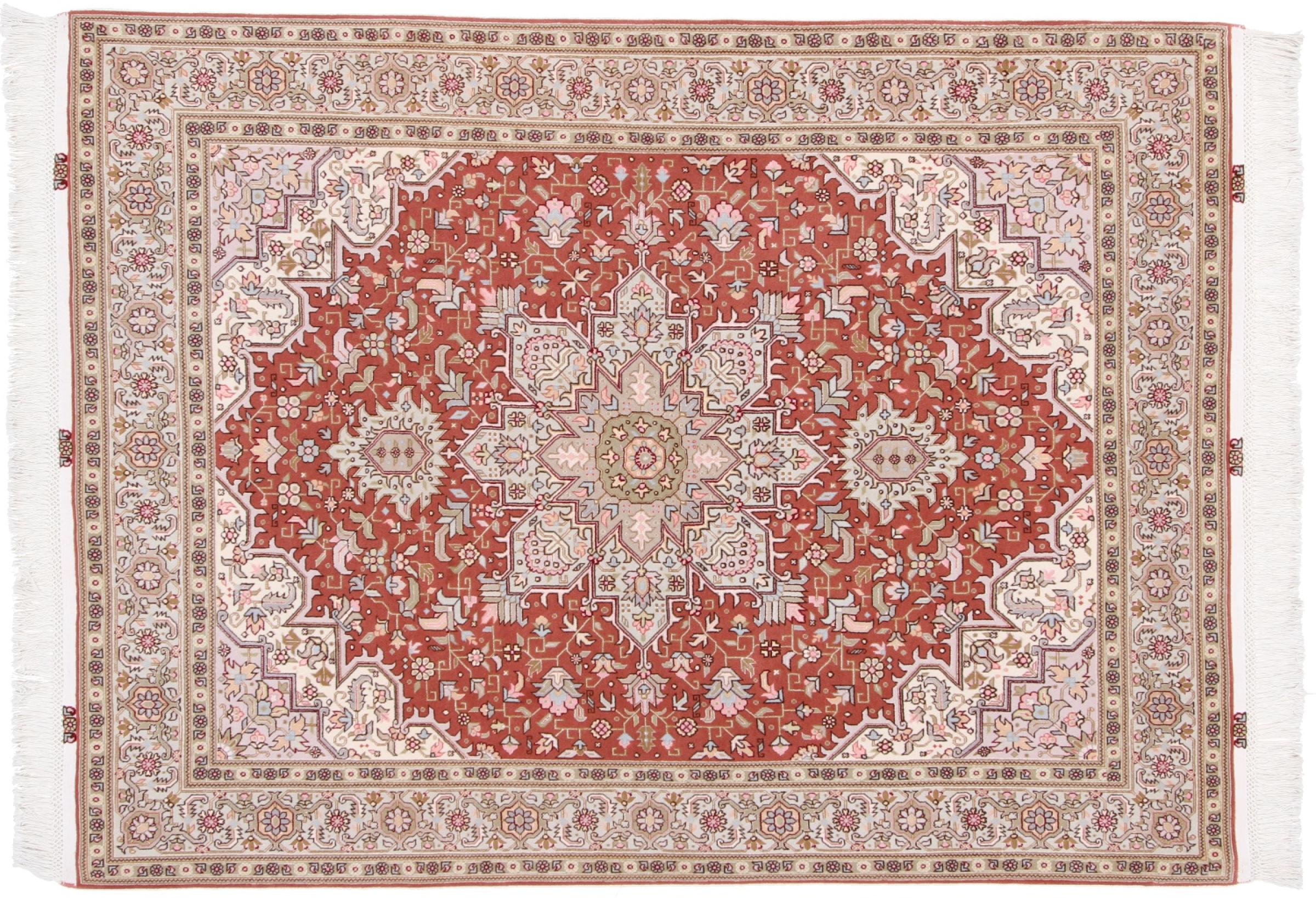 Réf. Article: 3495900289588 Taille: 206x156 cm Épaisseur: ap. 7 mm Densité de nouage: 500 000 - 550 000 / m² Fabrication: Noué à la main Velours: Laine avec de la soie Chaîne: Coton Origine: Persie / Iran Âge: Nouveau Poids: ap. 10 kg Également connu sous Tabriz, Tabris, Täbris, Tebriz, Tebris, 40Raj, 50Raj Nombre en stock: Unique - Seulement 1 en stock