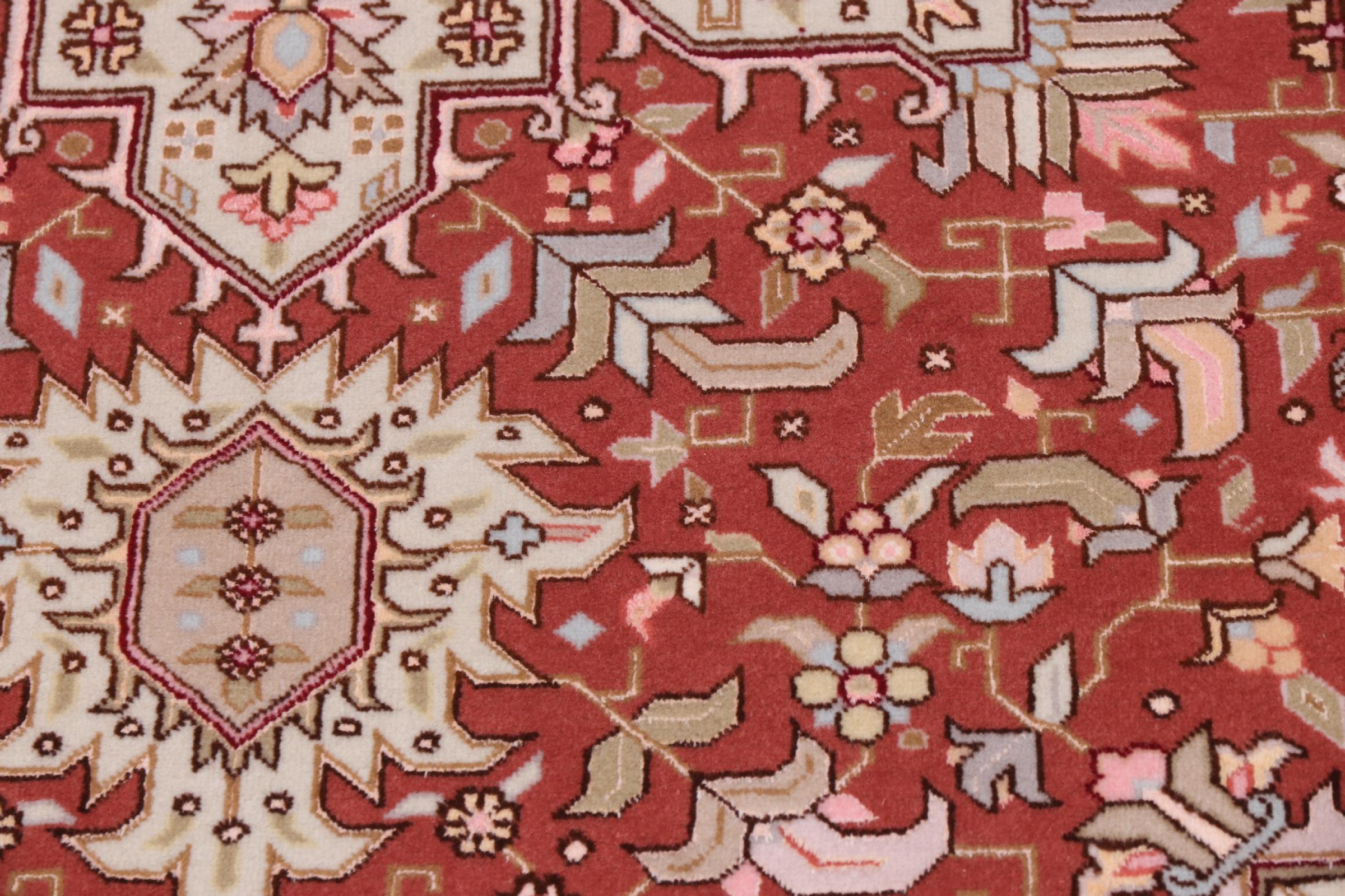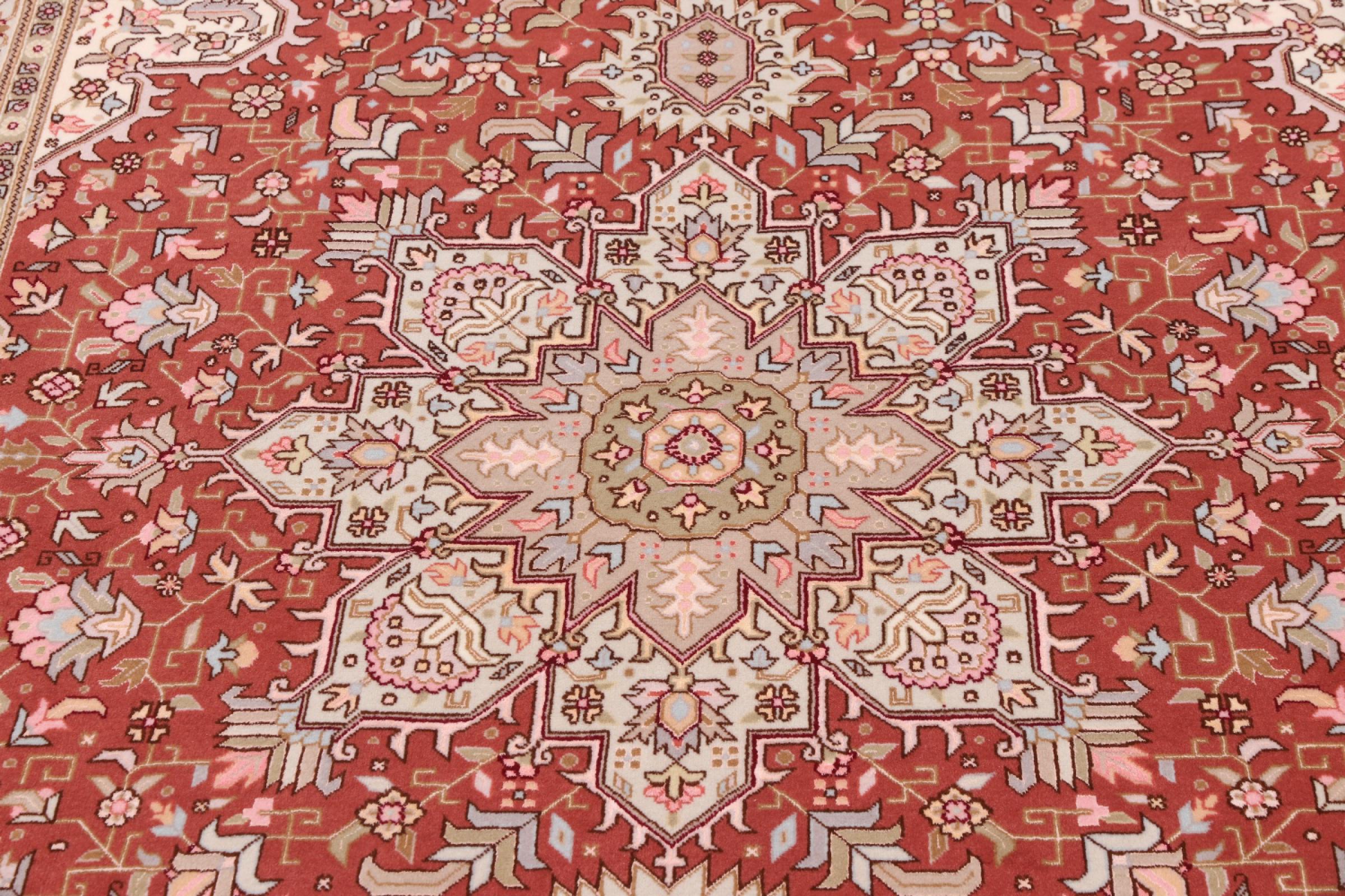 Tabriz est l'une des plus grandes villes d'Iran et l'une des plus célèbres provinces de tapis persans. Les tapis de Tabriz sont souvent indiqués par un numéro "Raj". Plus ce chiffre est élevé, plus le tapis est fin, car il indique la densité des nœuds. Il existe des tapis persans de Tabriz de classe moyenne (40 Raj) et de classe exceptionnellement fine (80 Raj).