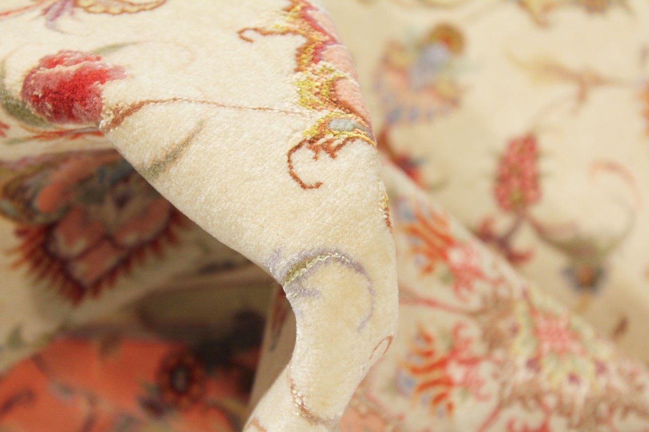 Tabriz est l'une des plus grandes villes d'Iran et l'une des plus célèbres provinces de tapis persans. Les tapis de Tabriz sont souvent indiqués par un numéro "Raj". Plus ce chiffre est élevé, plus le tapis est fin, car il indique la densité des nœuds. Il existe des tapis persans de Tabriz de classe moyenne (40 Raj) et de classe exceptionnellement fine (80 Raj).