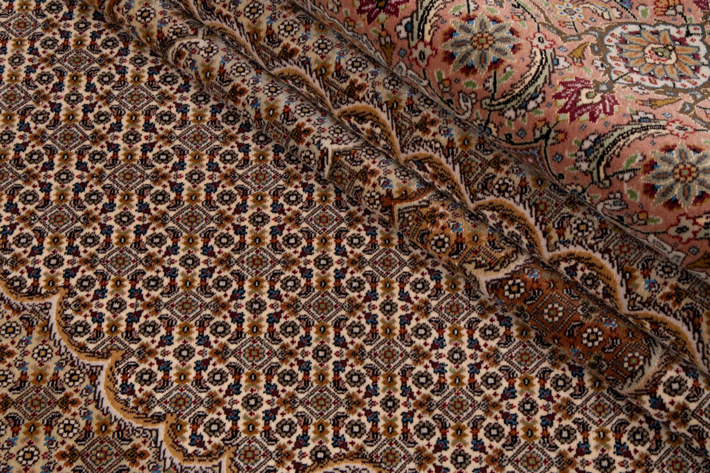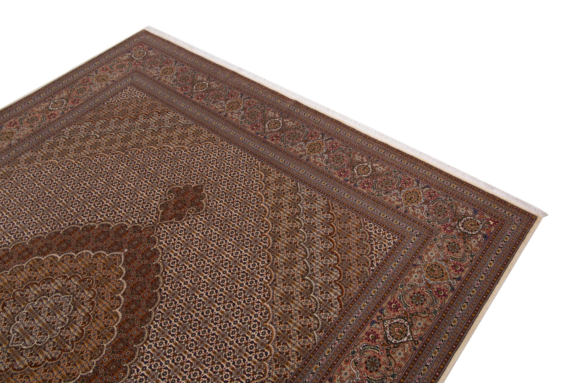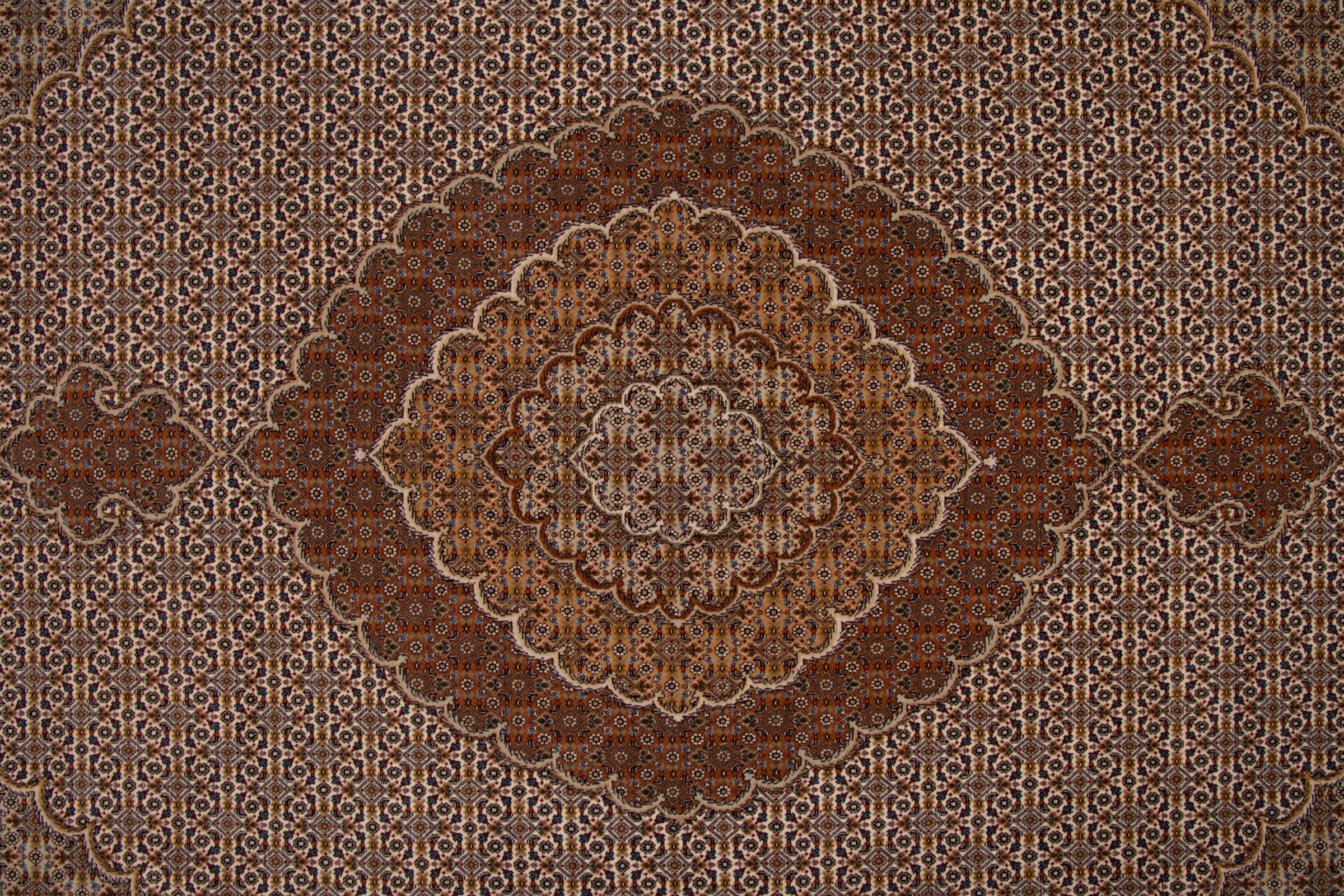 Tabriz est l'une des plus grandes villes d'Iran et l'une des plus célèbres provinces de tapis persans. Les tapis de Tabriz sont souvent indiqués par un numéro "Raj". Plus ce chiffre est élevé, plus le tapis est fin, car il indique la densité des nœuds. Il existe des tapis persans de Tabriz de classe moyenne (40 Raj) et de classe exceptionnellement fine (80 Raj).