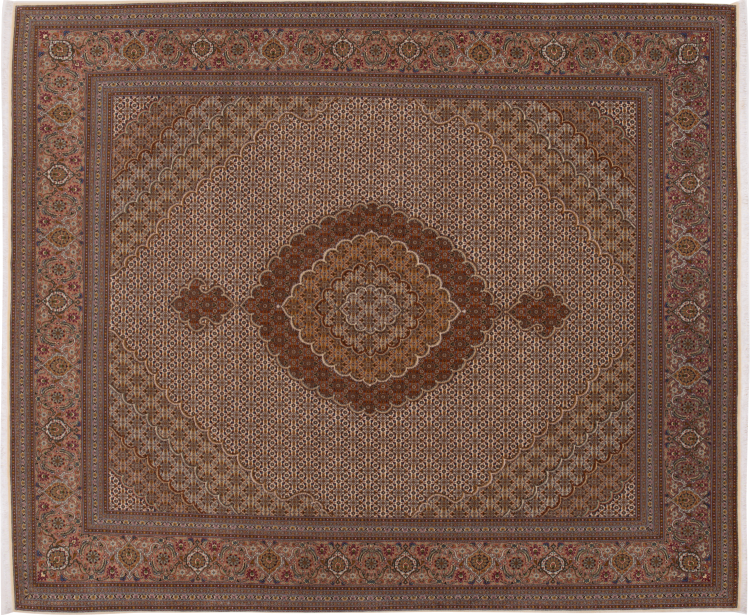 Réf. Article: 292756006057307 Taille: 301x248 cm Épaisseur: ap. 7 mm Densité de nouage: 440 000 - 490 000 / m² Fabrication: Noué à la main Velours: Laine avec de la soie Chaîne: Coton Origine: Persie / Iran Âge: Nouveau Poids: ap. 22 kg Également connu sous Tabriz, Tabris, Täbris, Tebriz, Tebris, 40Raj, 50Raj Nombre en stock: Unique - Seulement 1 en stock