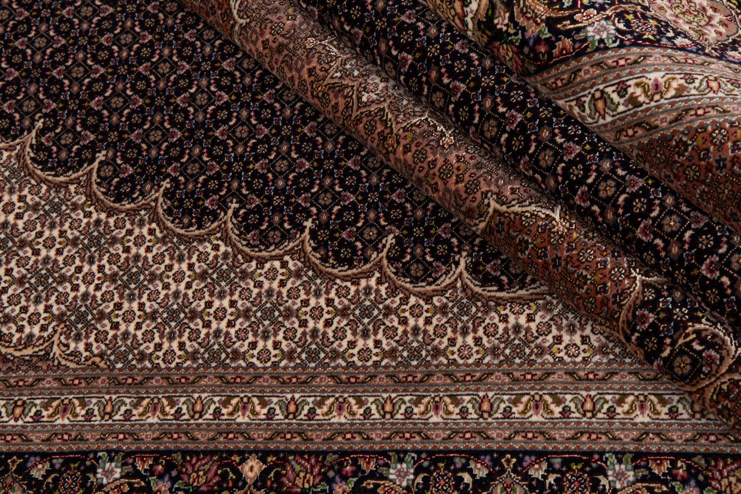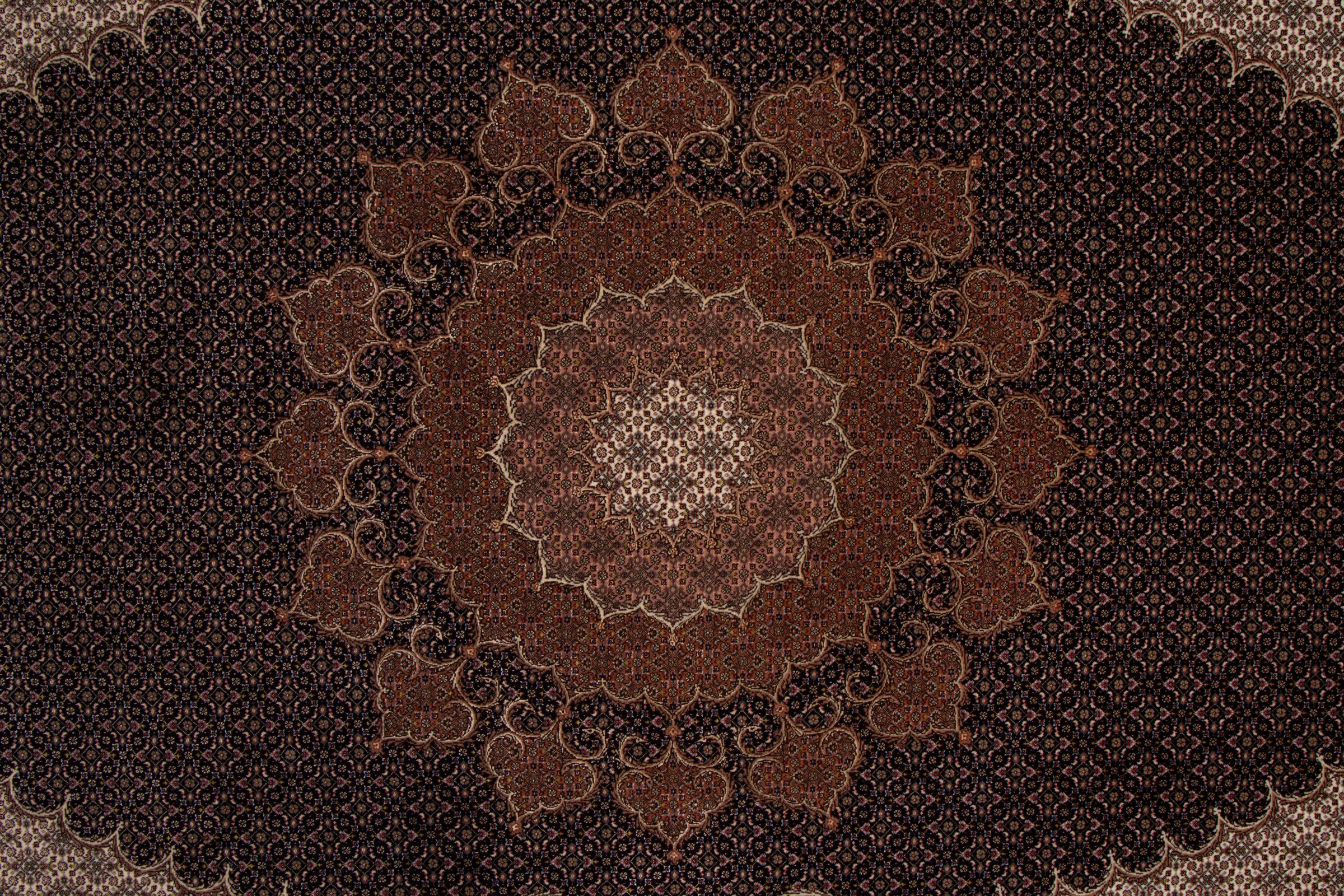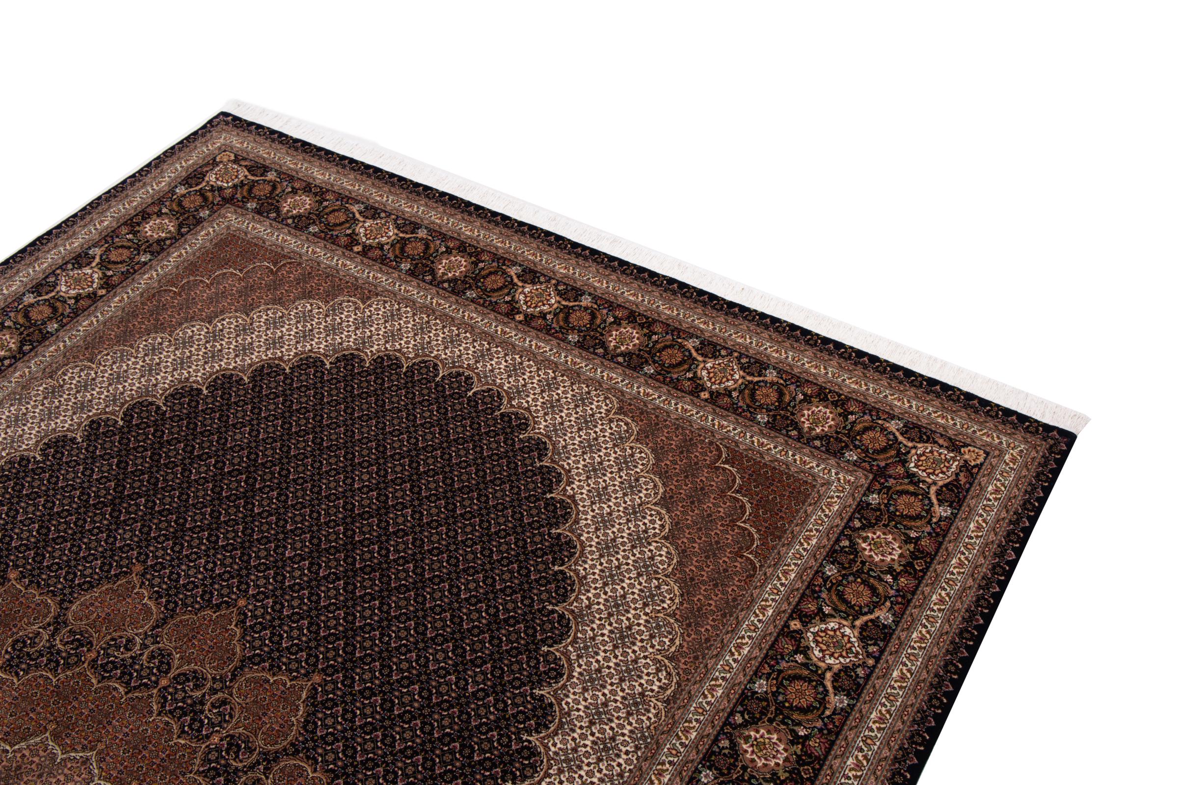 Tabriz est l'une des plus grandes villes d'Iran et l'une des plus célèbres provinces de tapis persans. Les tapis de Tabriz sont souvent indiqués par un numéro "Raj". Plus ce chiffre est élevé, plus le tapis est fin, car il indique la densité des nœuds. Il existe des tapis persans de Tabriz de classe moyenne (40 Raj) et de classe exceptionnellement fine (80 Raj).