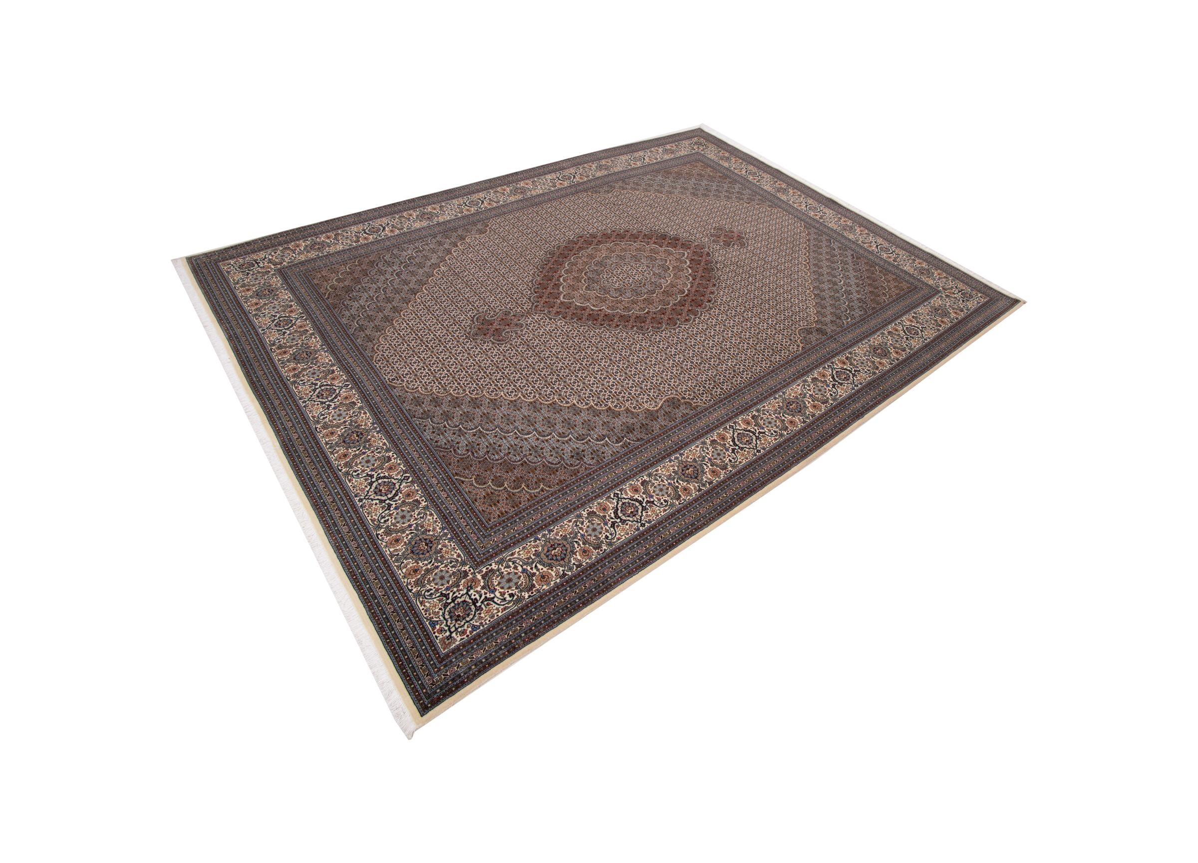 Réf. Article: 293837007985263 Taille: 339x250 cm Épaisseur: ap. 7 mm Densité de nouage: 440 000 - 490 000 / m² Fabrication: Noué à la main Velours: Laine avec de la soie Chaîne: Coton Origine: Persie / Iran Âge: Nouveau Poids: ap. 25 kg Également connu sous Tabriz, Tabris, Täbris, Tebriz, Tebris, 40Raj, 50Raj Nombre en stock: Unique - Seulement 1 en stock