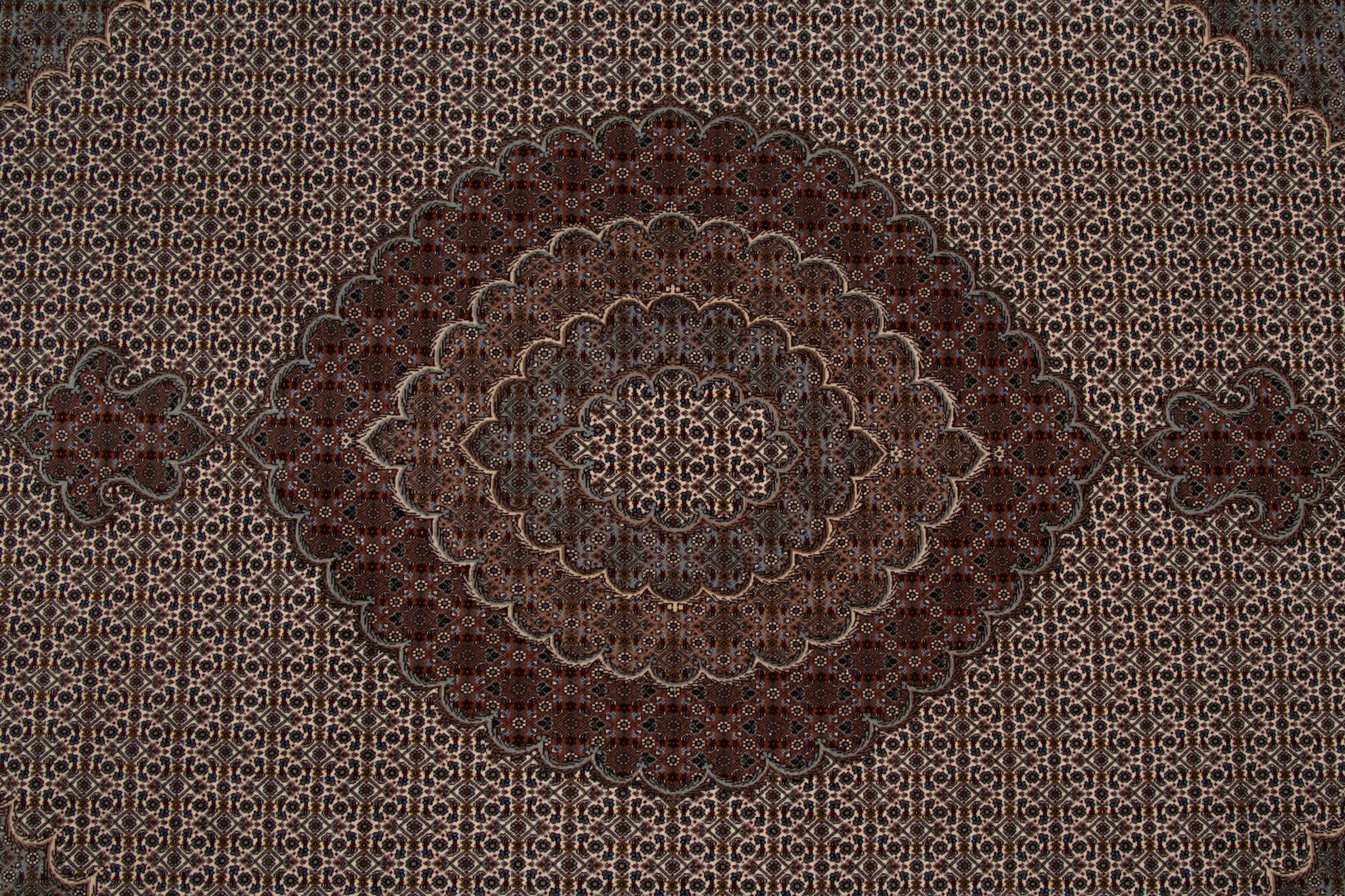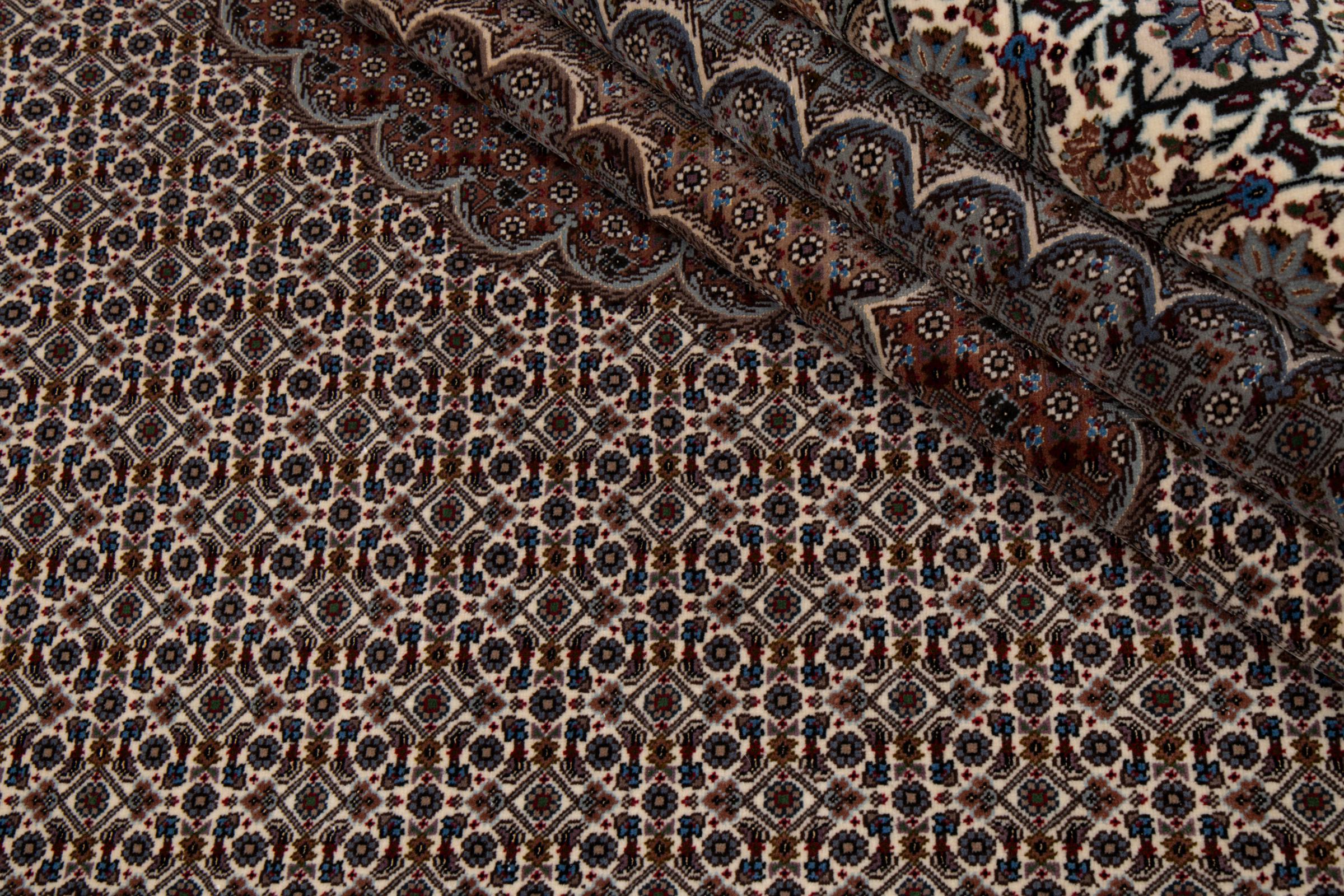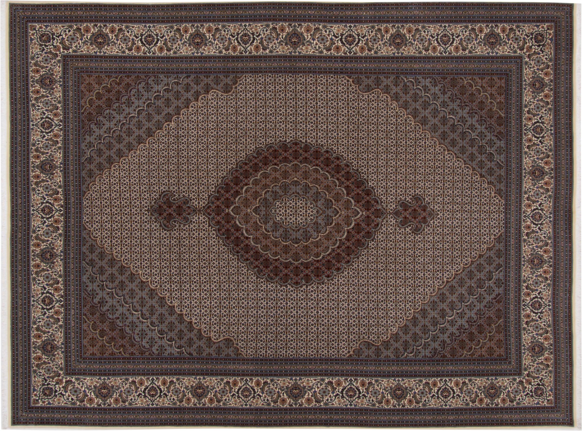 Tabriz est l'une des plus grandes villes d'Iran et l'une des plus célèbres provinces de tapis persans. Les tapis de Tabriz sont souvent indiqués par un numéro "Raj". Plus ce chiffre est élevé, plus le tapis est fin, car il indique la densité des nœuds. Il existe des tapis persans de Tabriz de classe moyenne (40 Raj) et de classe exceptionnellement fine (80 Raj).