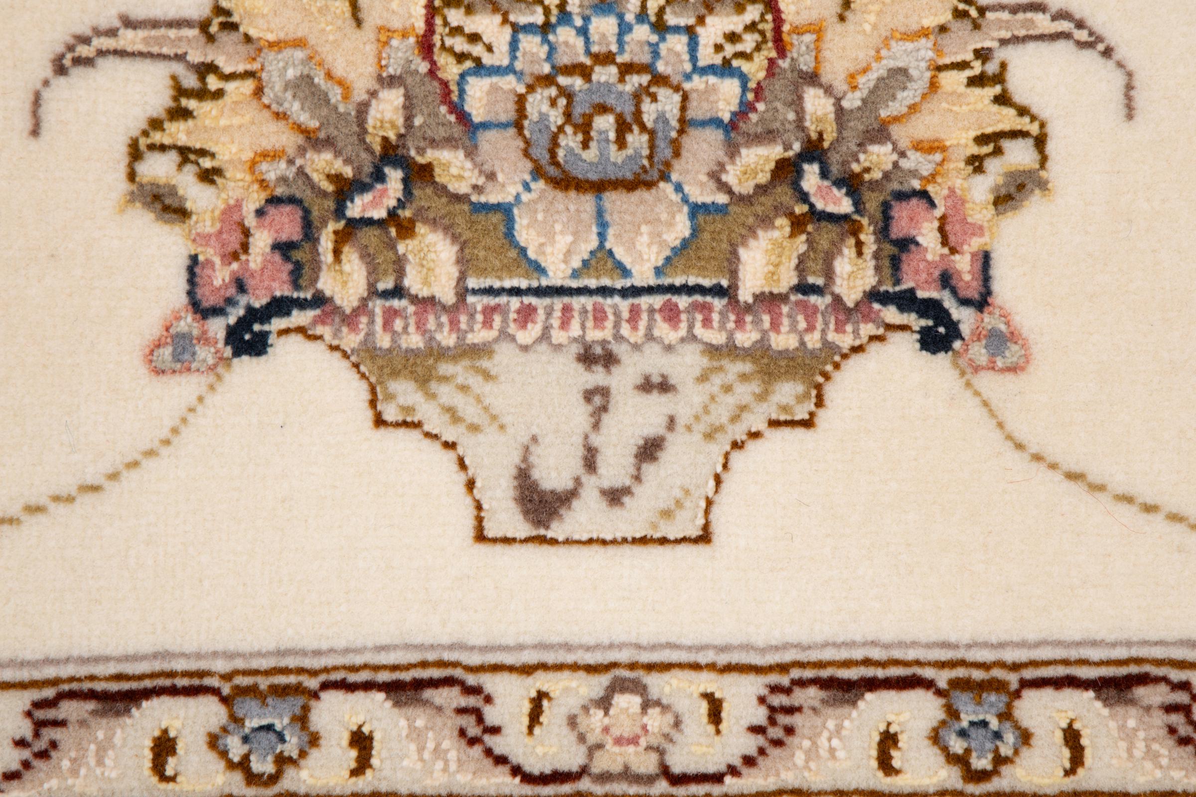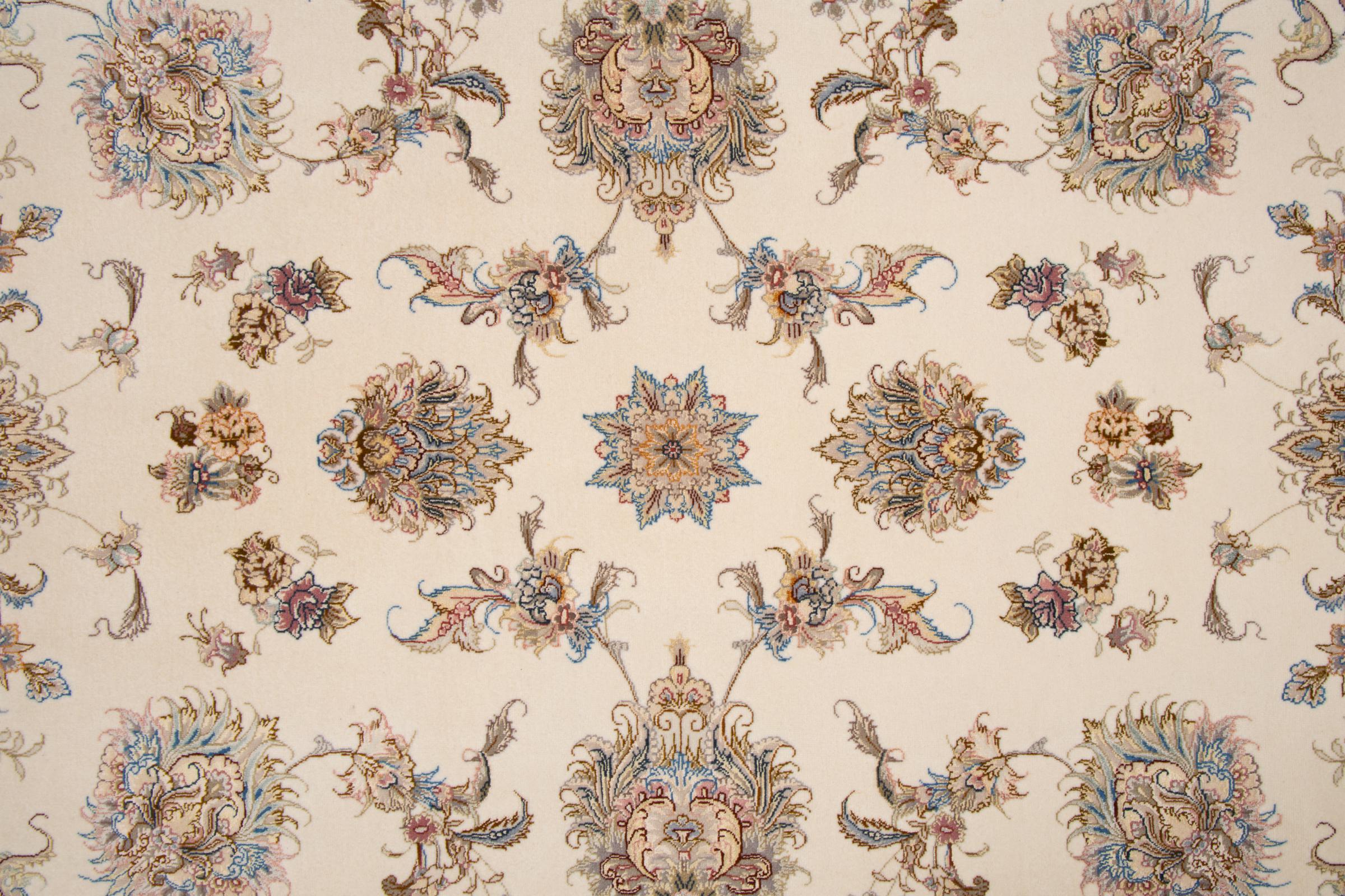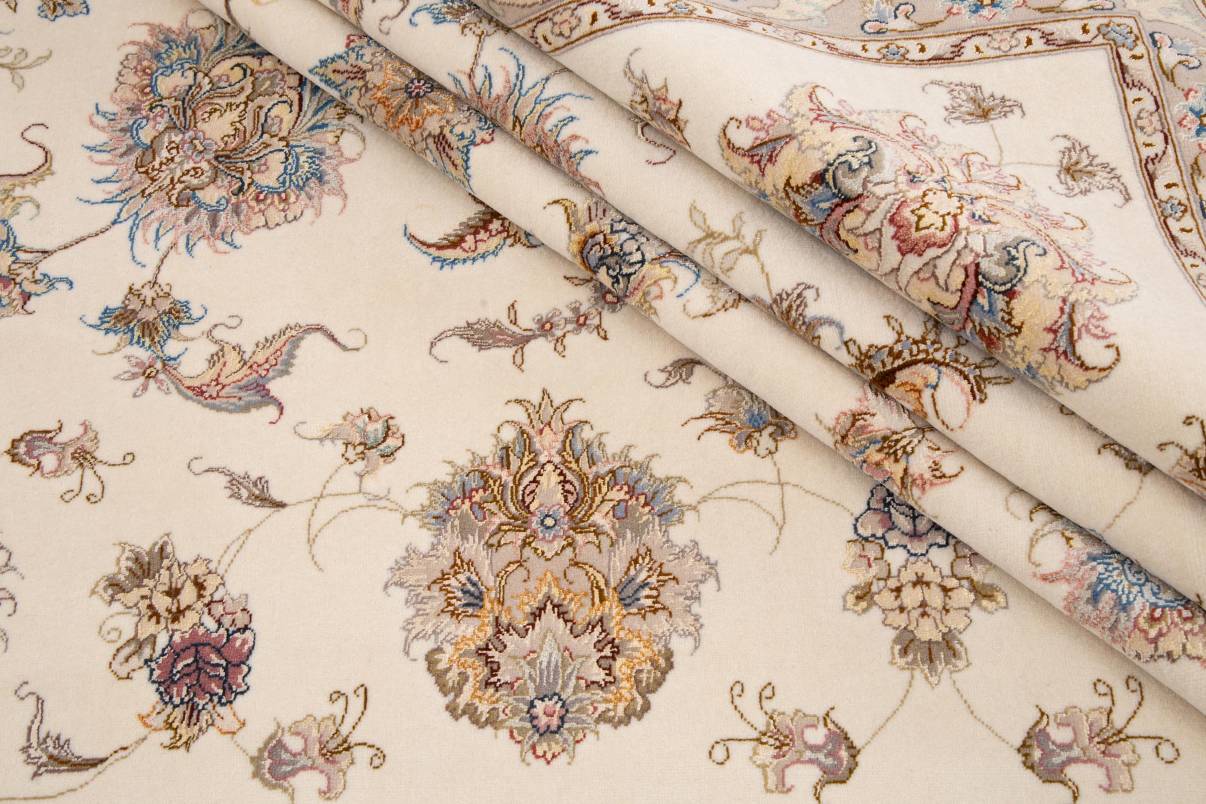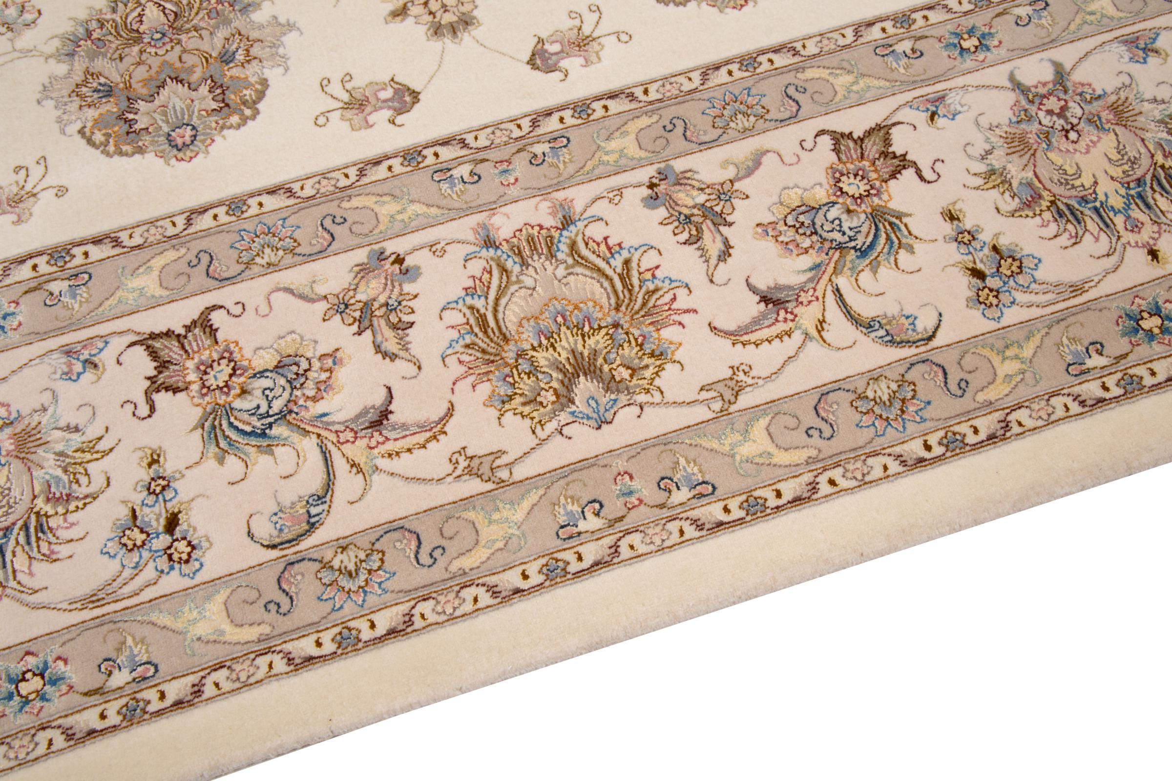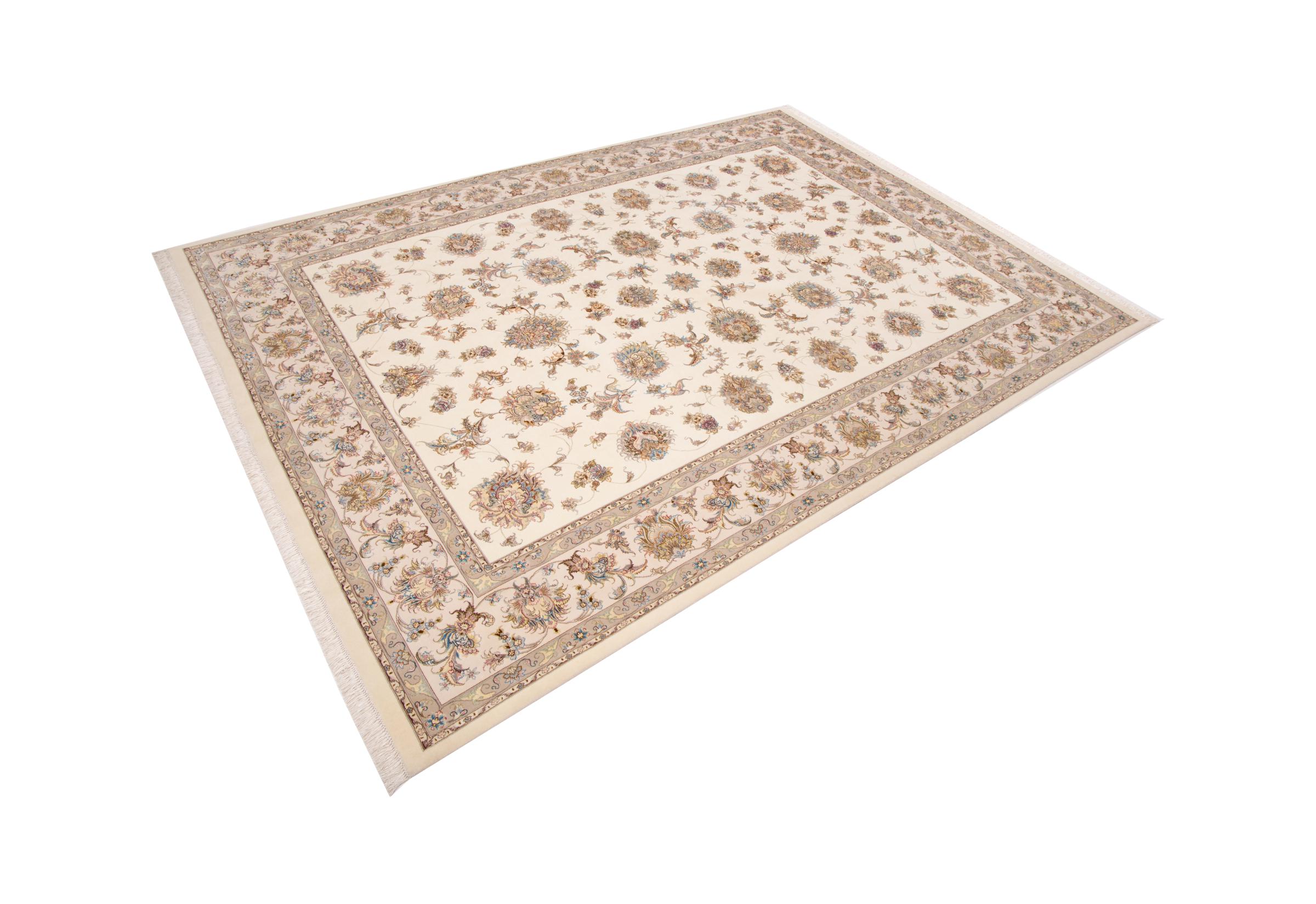 Tabriz est l'une des plus grandes villes d'Iran et l'une des plus célèbres provinces de tapis persans. Les tapis de Tabriz sont souvent indiqués par un numéro "Raj". Plus ce chiffre est élevé, plus le tapis est fin, car il indique la densité des nœuds. Il existe des tapis persans de Tabriz de classe moyenne (40 Raj) et de classe exceptionnellement fine (80 Raj).