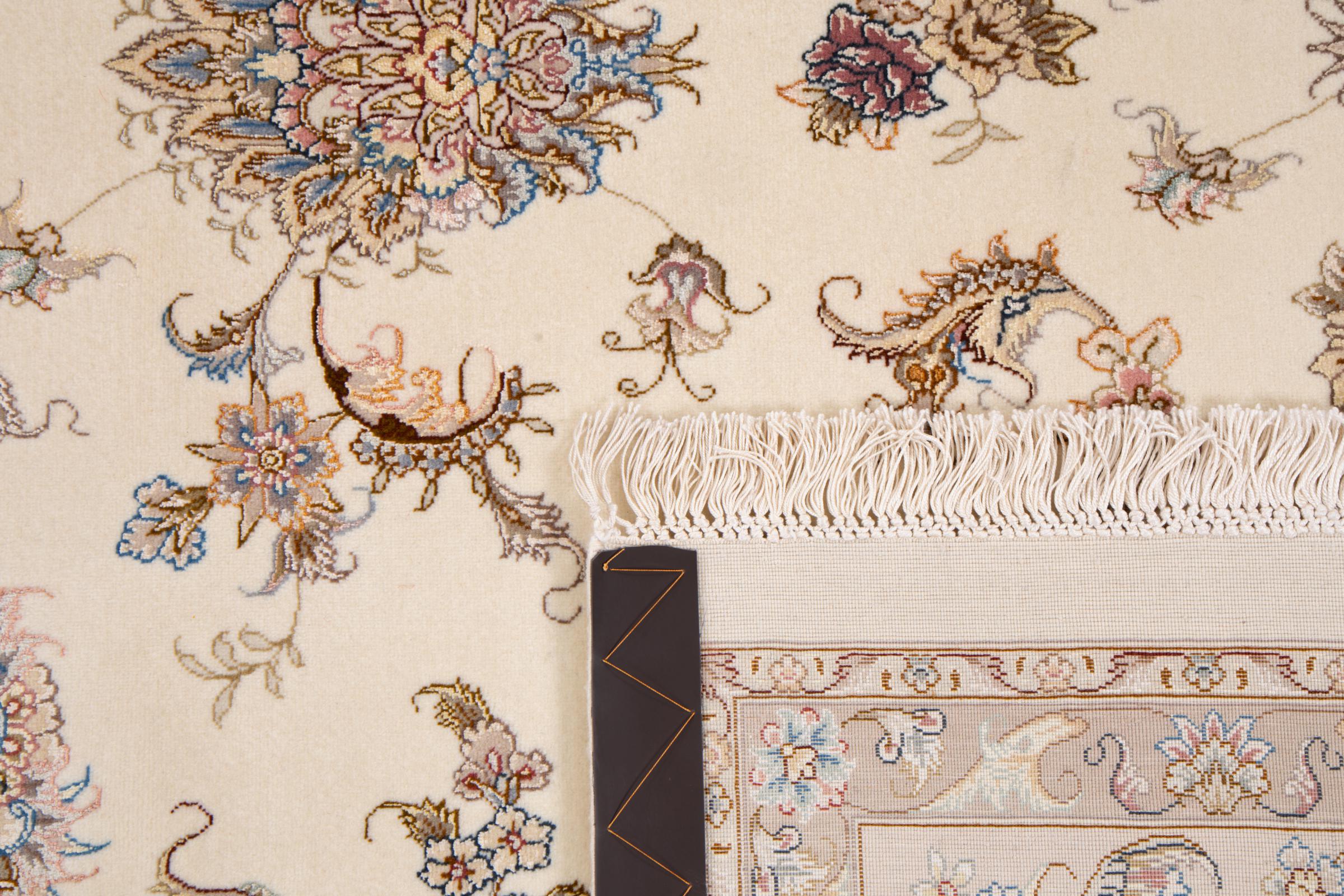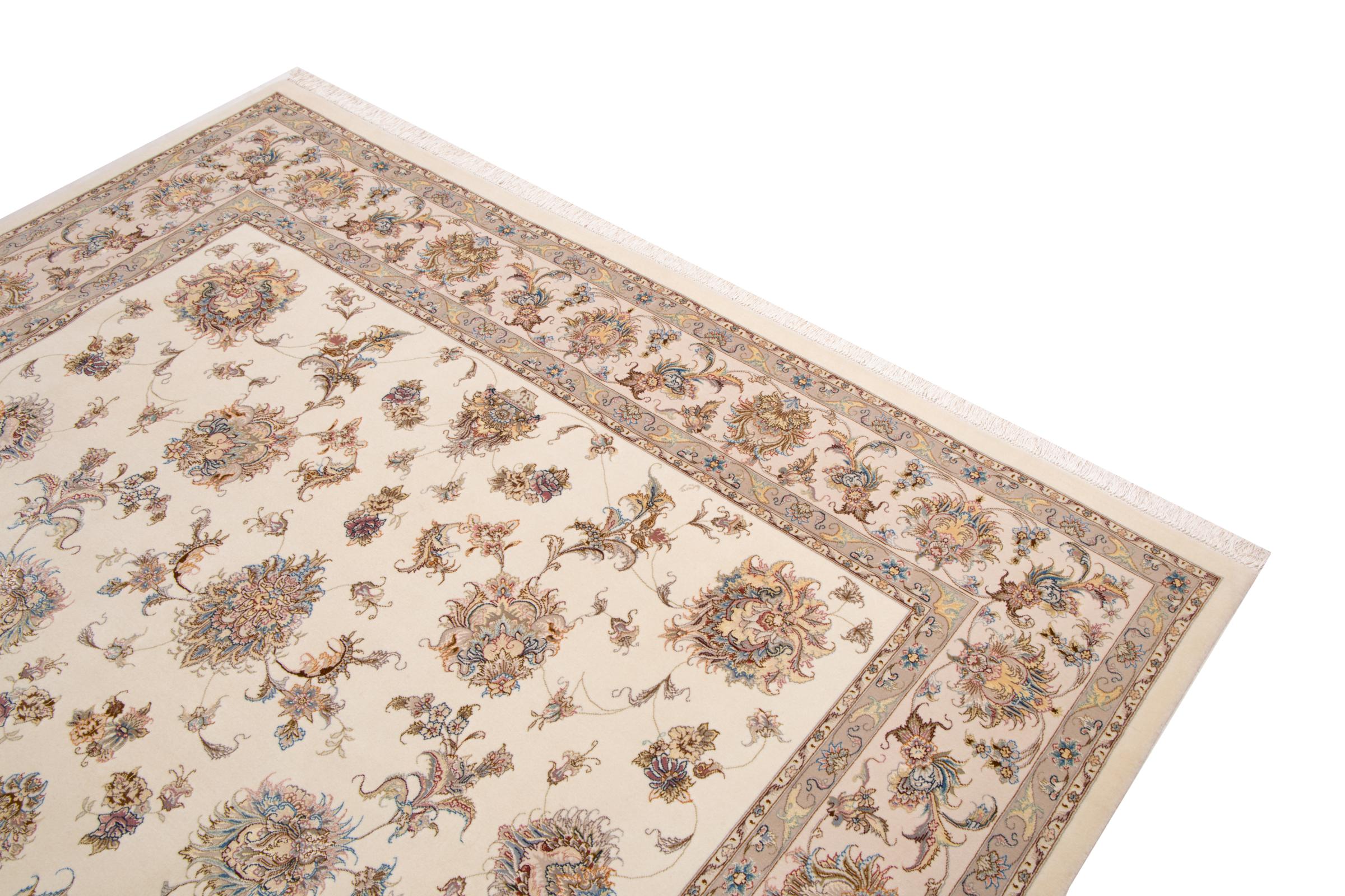 Réf. Article: 293812005058756 Taille: 347x244 cm Épaisseur: ap. 7 mm Densité de nouage: 440 000 - 490 000 / m² Fabrication: Noué à la main Velours: Laine avec de la soie Chaîne: Coton Origine: Persie / Iran Âge: Nouveau Poids: ap. 25 kg Également connu sous Tabriz, Tabris, Täbris, Tebriz, Tebris, 40Raj, 50Raj Nombre en stock: Unique - Seulement 1 en stock