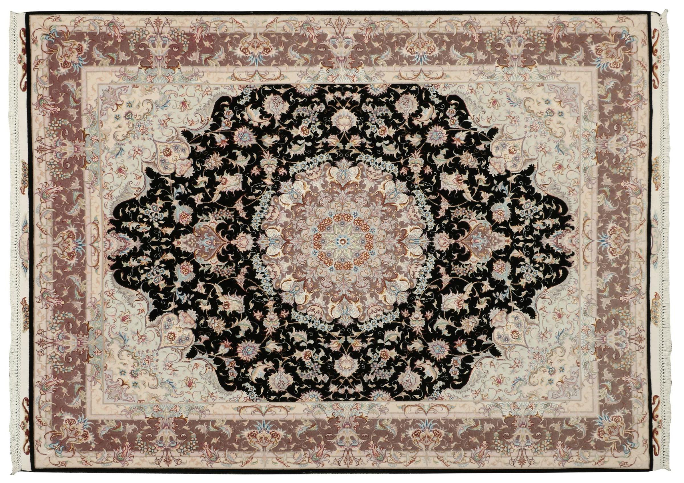 Réf. Article: 309116001893296 Taille: 204x155 cm Épaisseur: ap. 7 mm Densité de nouage: 440 000 - 490 000 / m² Fabrication: Noué à la main Velours: Laine avec de la soie Chaîne: Soie Origine: Persie / Iran Âge: Nouveau Poids: ap. 9 kg Également connu sous Tabriz, Tabris, Täbris, Tebriz, Tebris, 40Raj, 50Raj Nombre en stock: Unique - Seulement 1 en stock