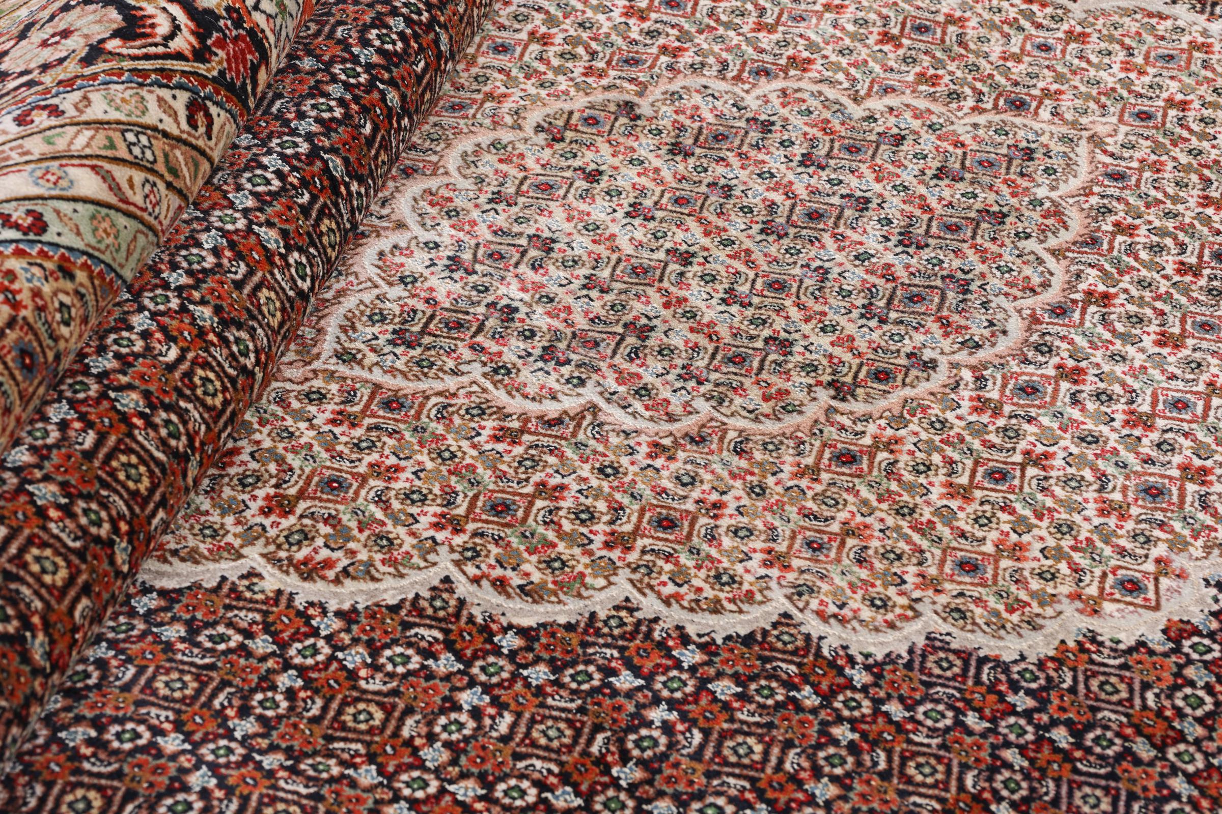 Ce tapis Indo Tabriz est un très bel exemple du travail spécifique indien. Noués à la main avec une très bonne laine, il vous sera fidèle pour un long moment. Vous n’obtiendrez pas de meilleurs tapis pour un plus petit prix que celui-ci.