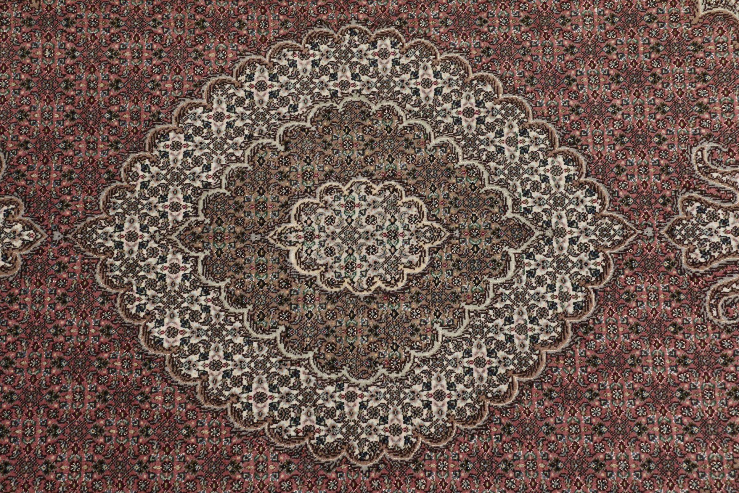 Tabriz est l'une des plus grandes villes d'Iran et l'une des plus célèbres provinces de tapis persans. Les tapis de Tabriz sont souvent indiqués par un numéro "Raj". Plus ce chiffre est élevé, plus le tapis est fin, car il indique la densité des nœuds. Il existe des tapis persans de Tabriz de classe moyenne (40 Raj) et de classe exceptionnellement fine (80 Raj).