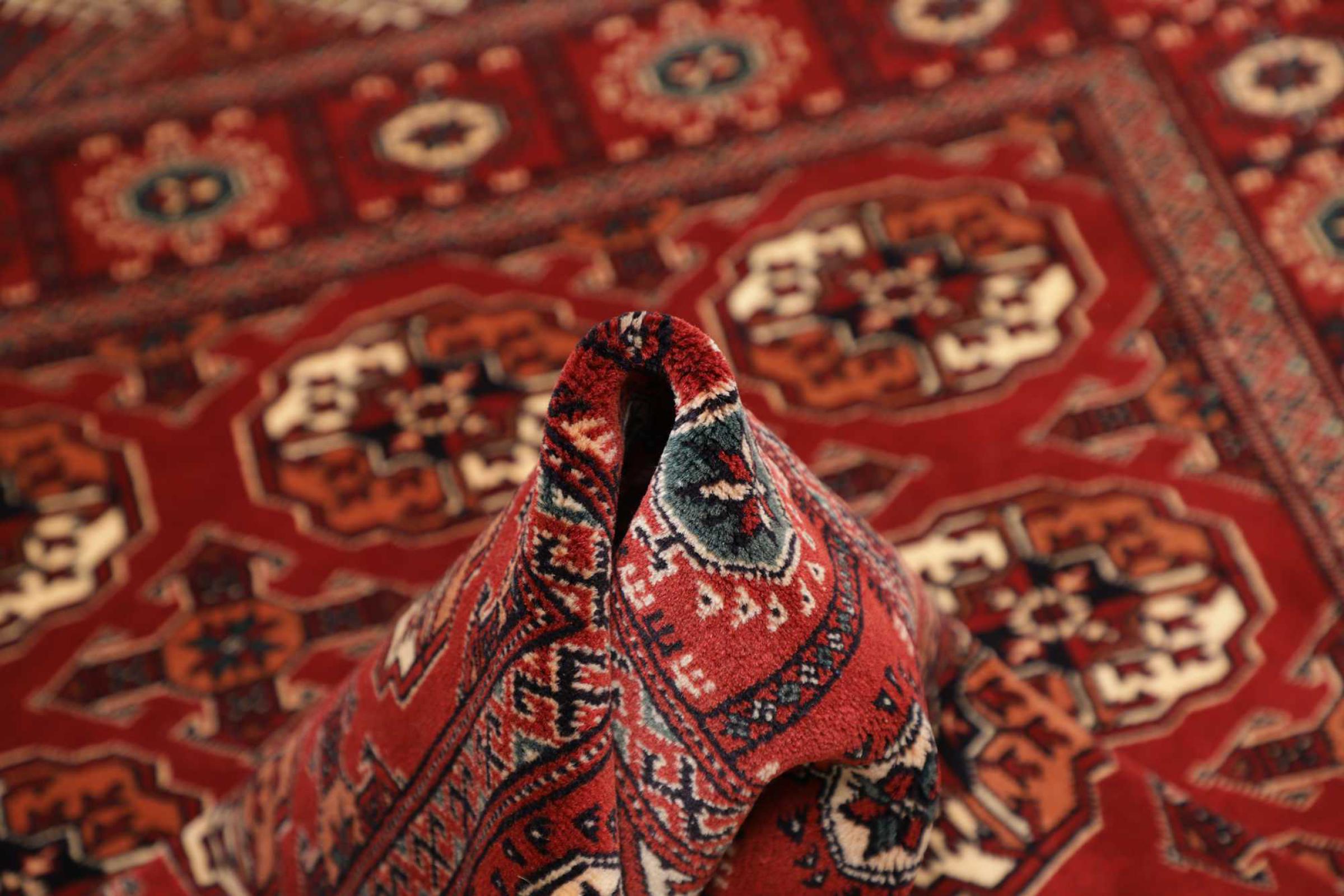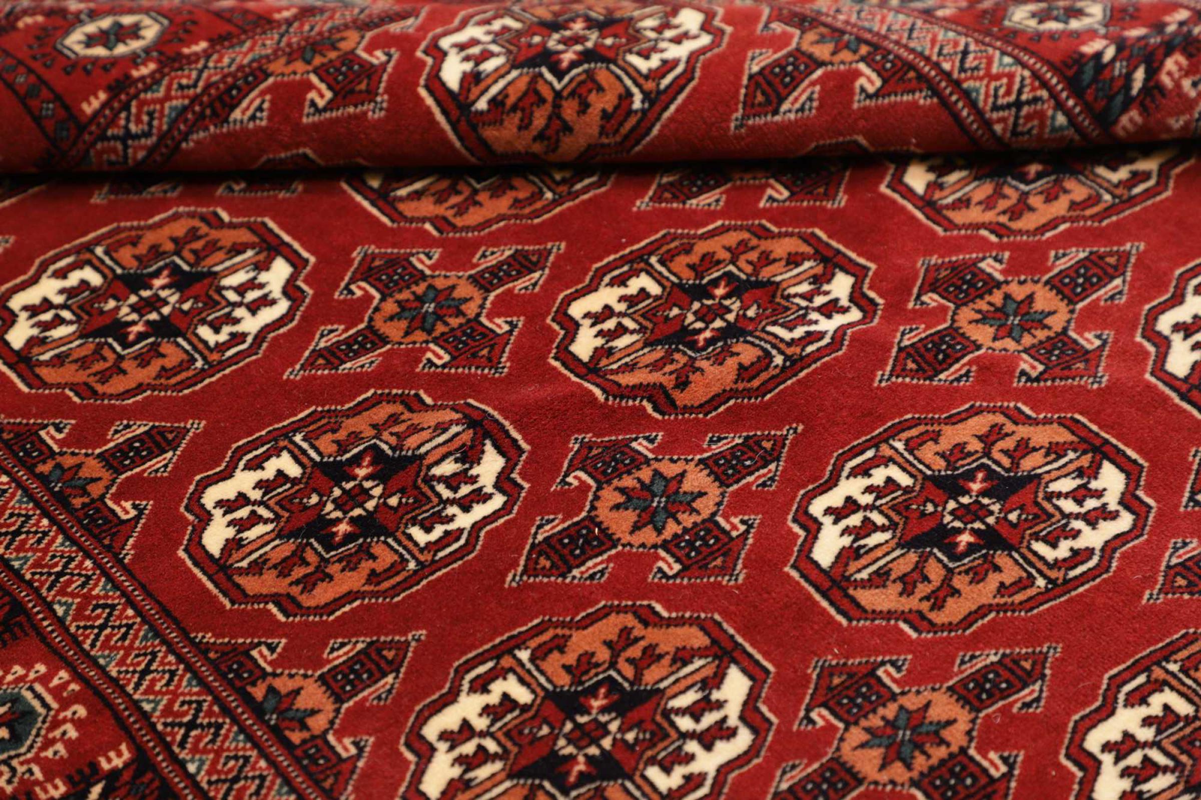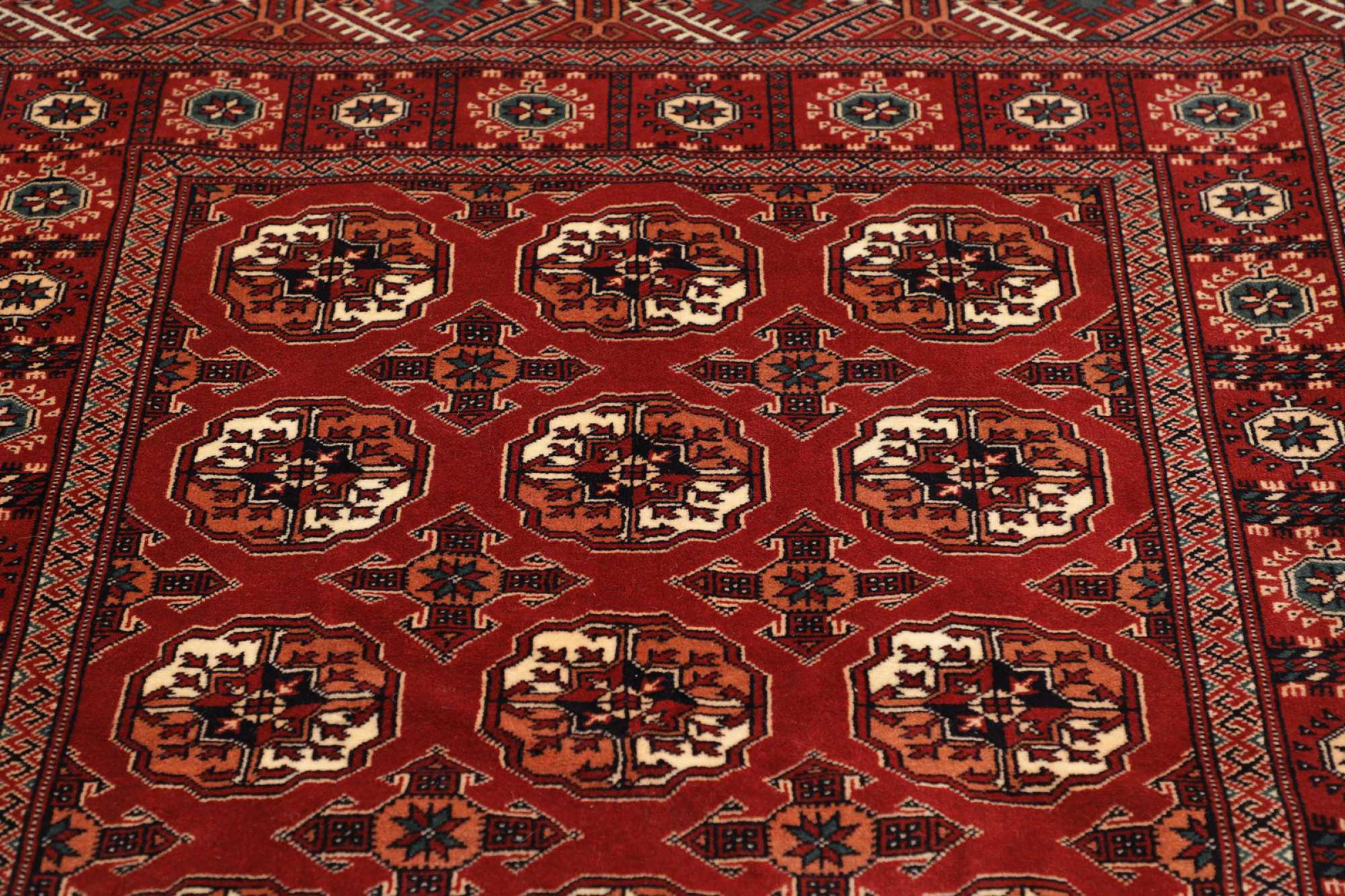Ce tapis Turkmen a été tissé avec le plus fin savoir-faire artisanal et convainc de part sa production de qualité supérieure et sa laine. Ses couleurs reflètent la culture turkmène et fournit une ambiance orientale à votre chez-vous.