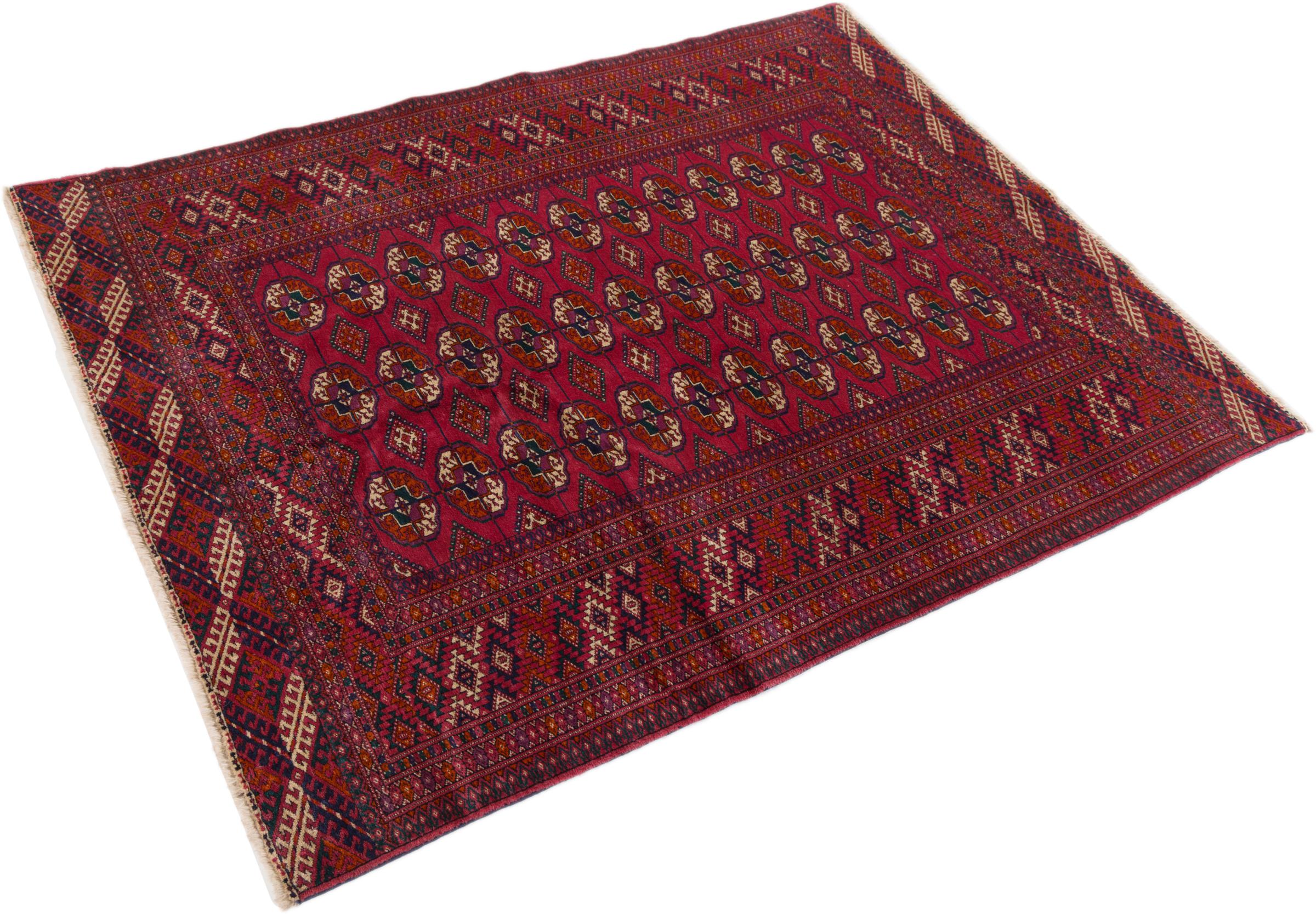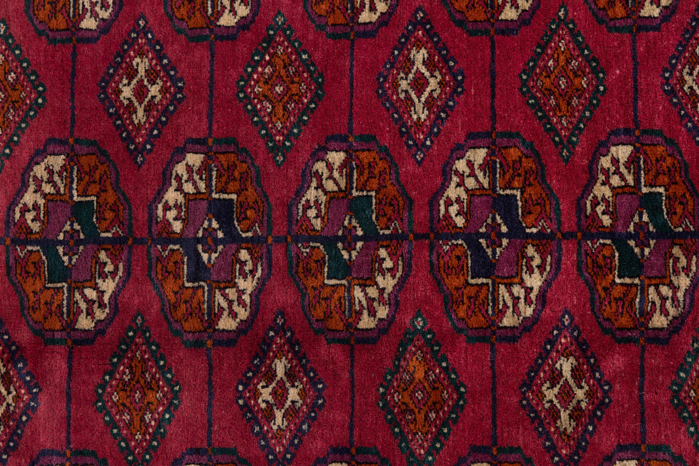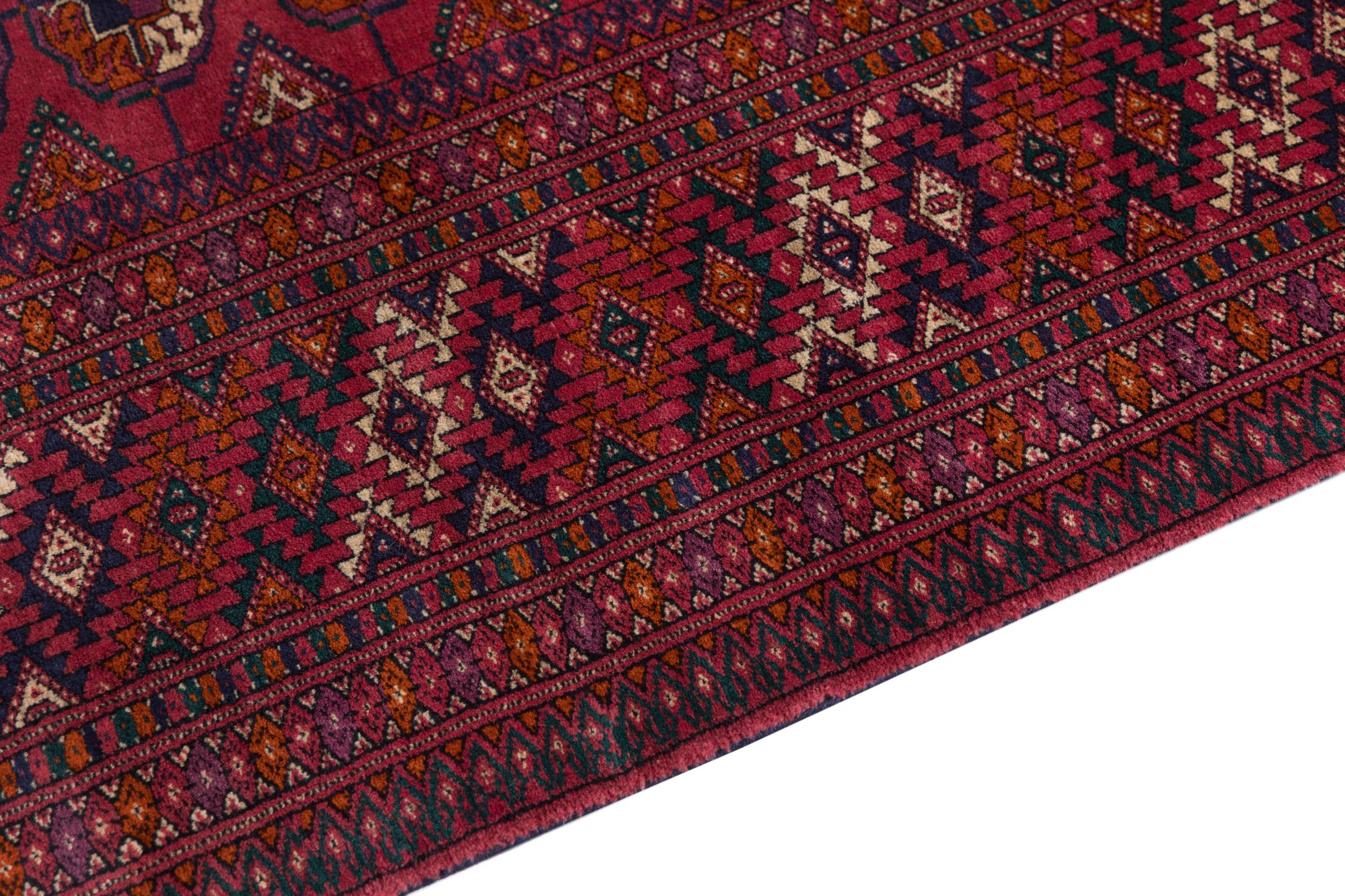 Ce tapis Turkmen a été tissé avec le plus fin savoir-faire artisanal et convainc de part sa production de qualité supérieure et sa laine. Ses couleurs reflètent la culture turkmène et fournit une ambiance orientale à votre chez-vous.