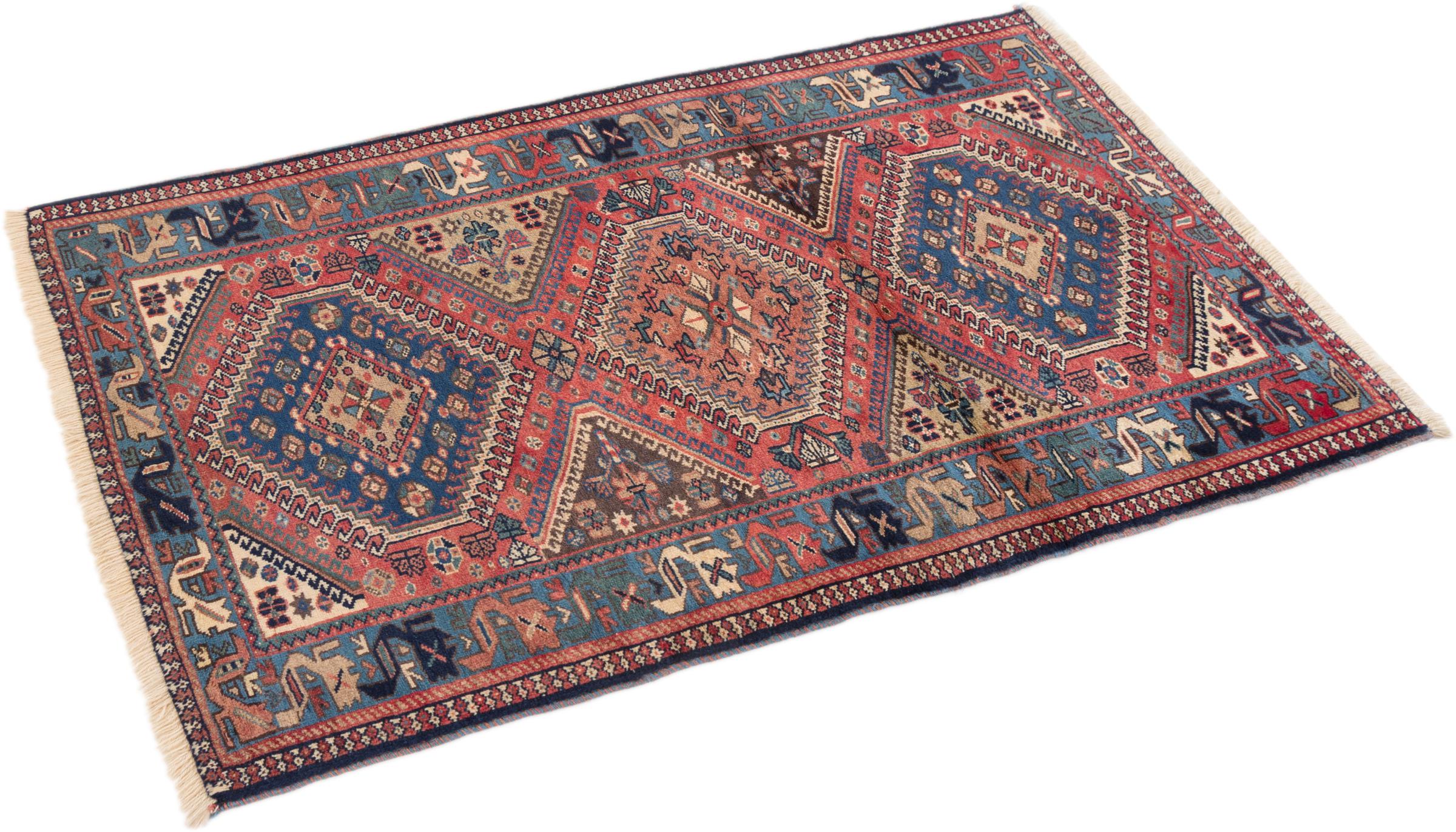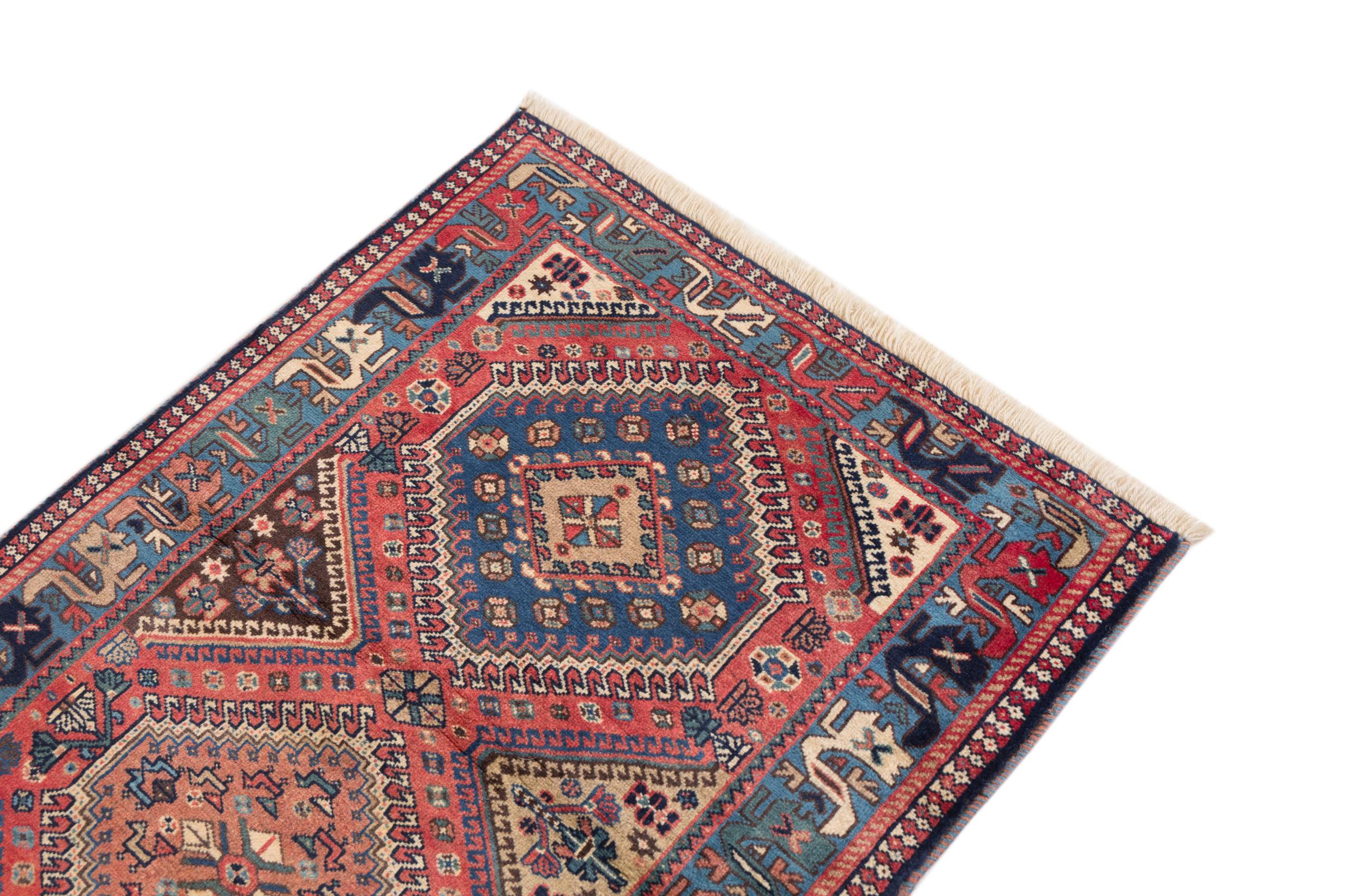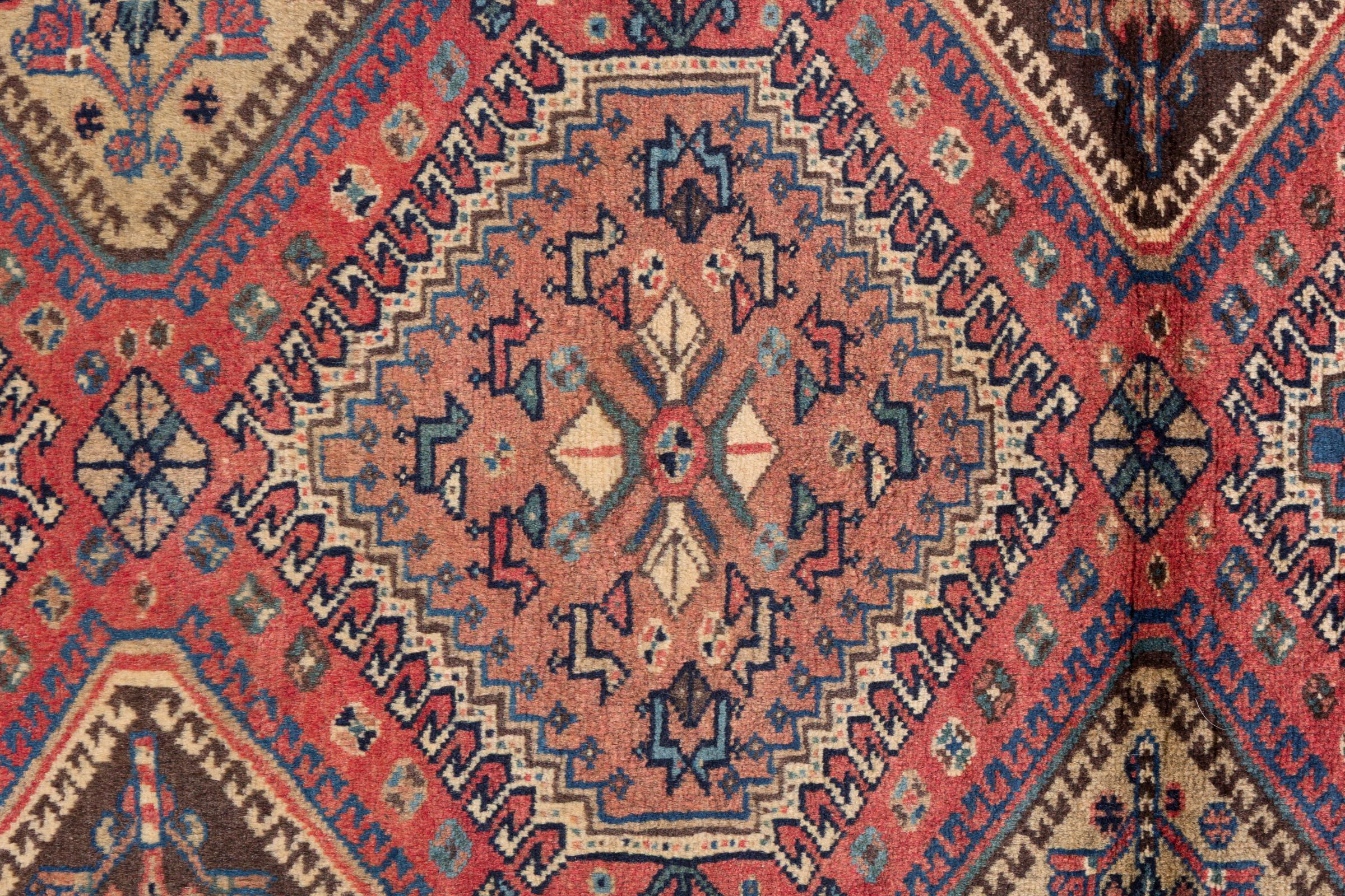 Ce tapis appartient aux tapis de village et de nomade d'Iran, anciennement la Perse. Ce type de tapis est noué à la main dans les petites villes et les villages selon l'ancienne tradition. Même les nomades nouent encore des tapis persans en plein air. Les tapis sont noués sans schéma et entièrement à partir de la tête. Ils se caractérisent par des ornements classiques, qui sont disposés en motifs droits et géométriques. Grâce à leur origine culturelle et traditionnelle, ces tapis ont un caractère unique qui incarne la Perse ancienne.